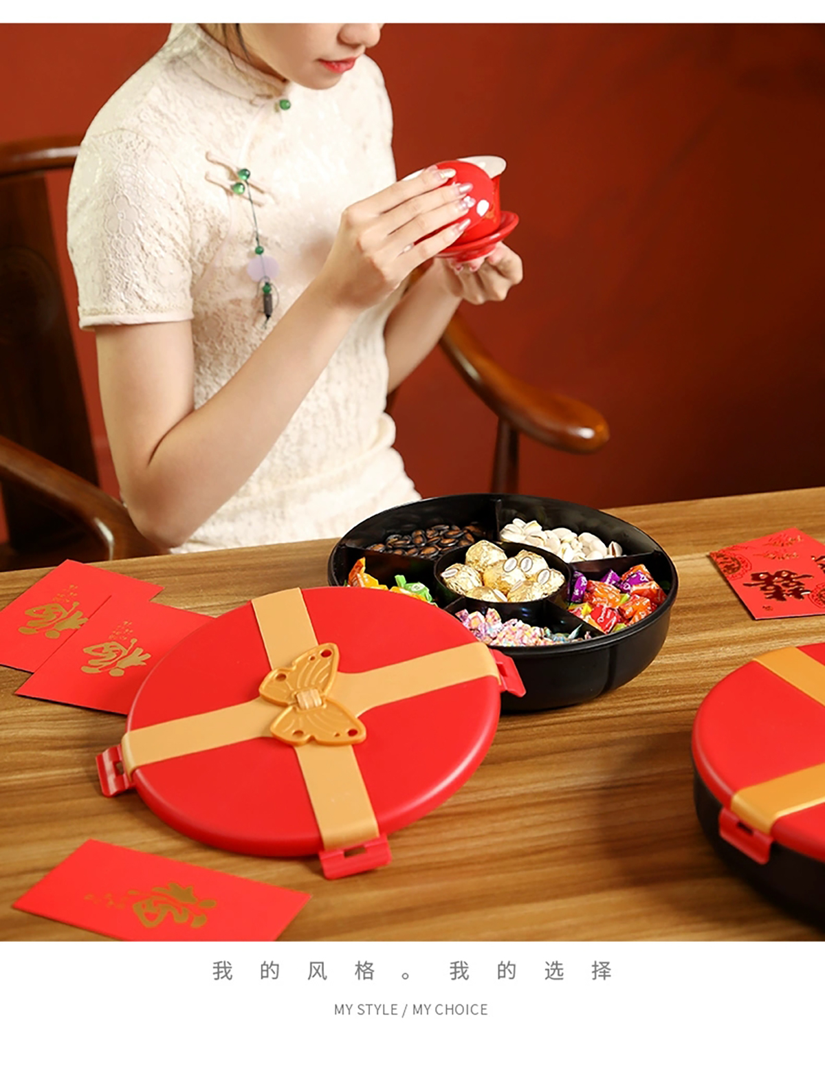 小號/大號蝴蝶結(jié)糖果盒(紅蓋紅底 紅蓋黑底)