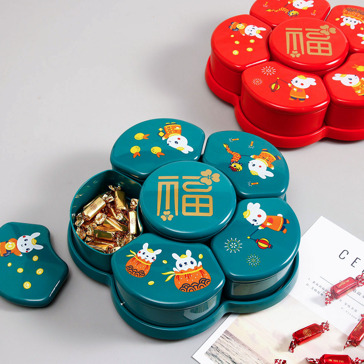 梅花旋轉糖果盒 (紅/綠)