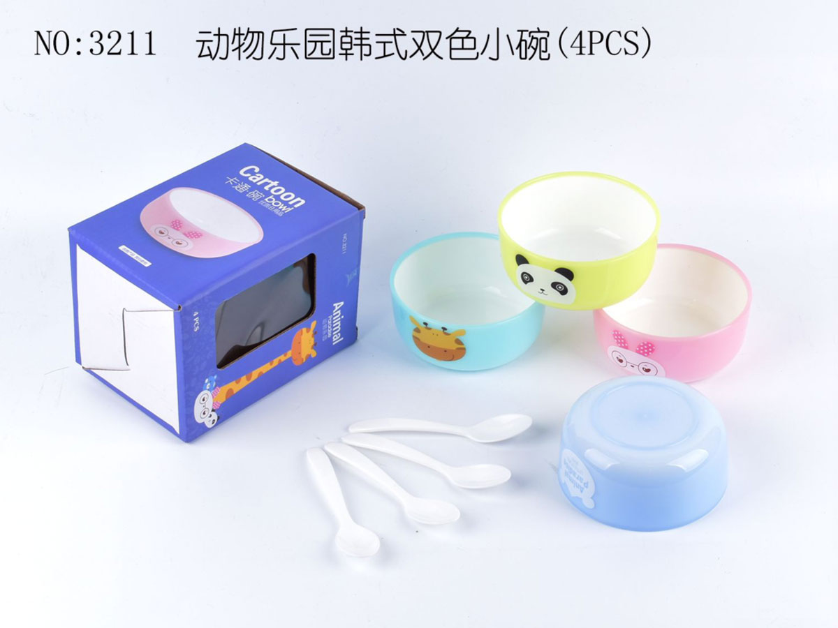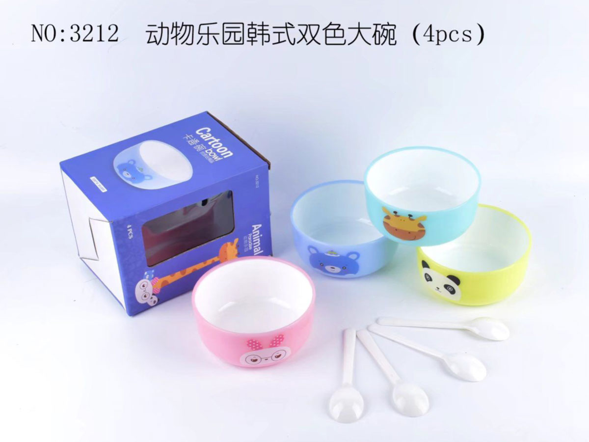 動物樂園韓式雙色大碗(4pcs)(贈4pcs湯匙)