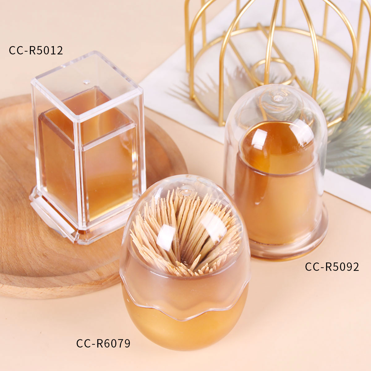 水晶圓形/方形/蛋形牙簽瓶(沙金)