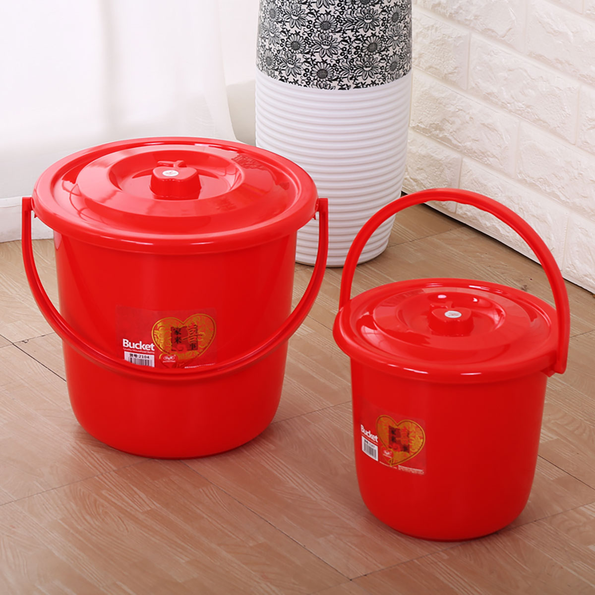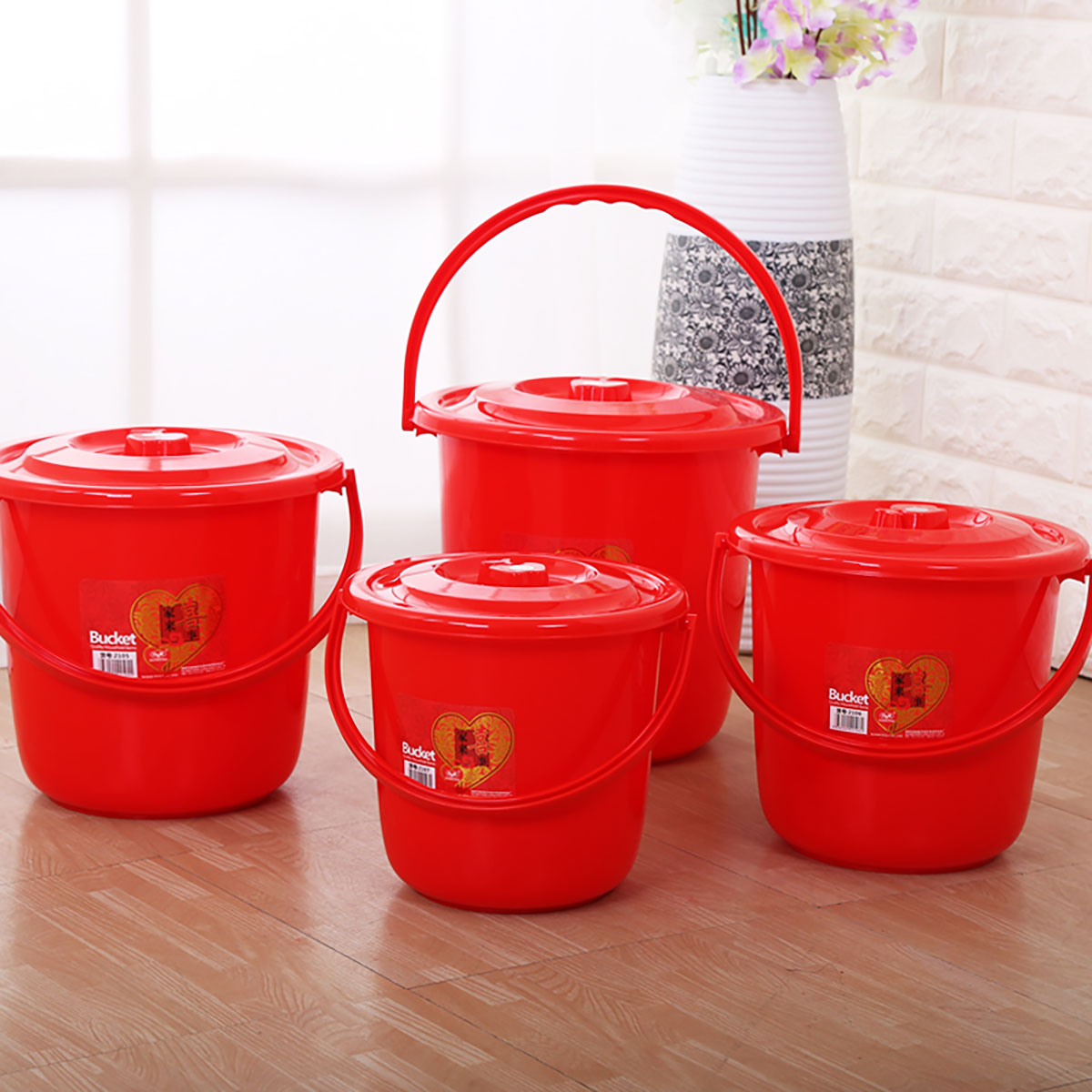 鼓型提桶(帶蓋)大紅色