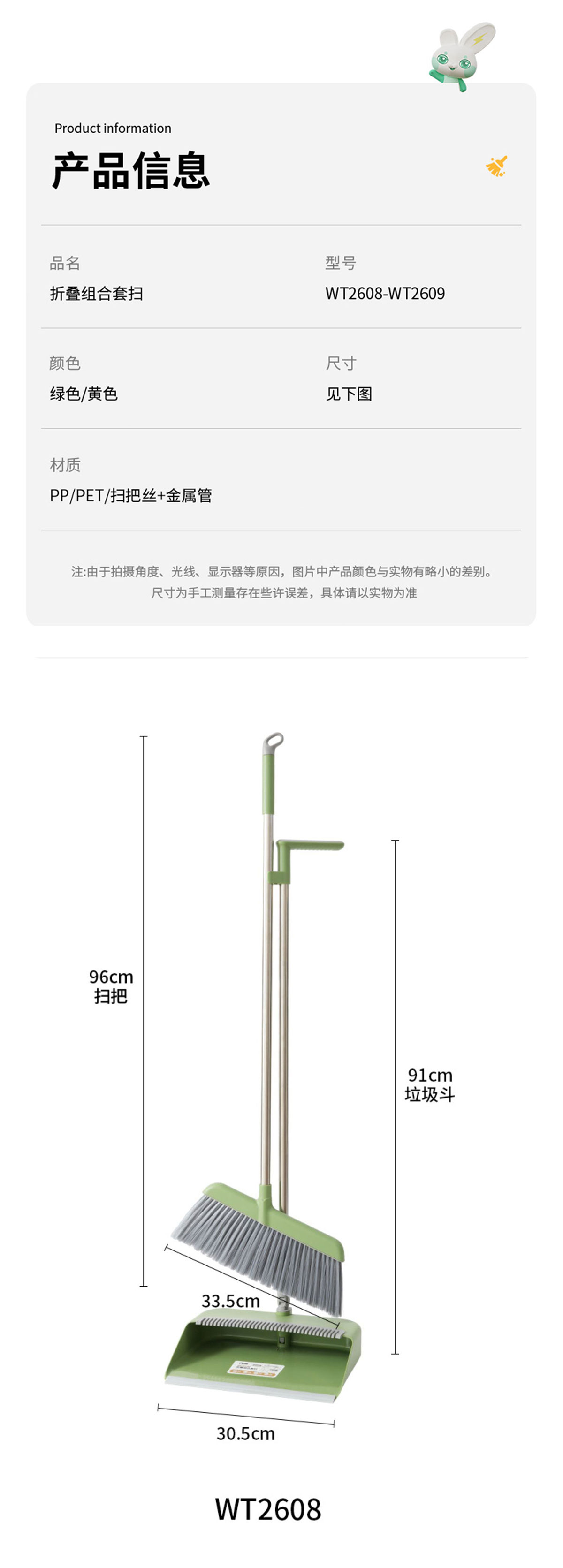 Size: ZX-WT2608:掃:335*960mm/斗:305*910mm