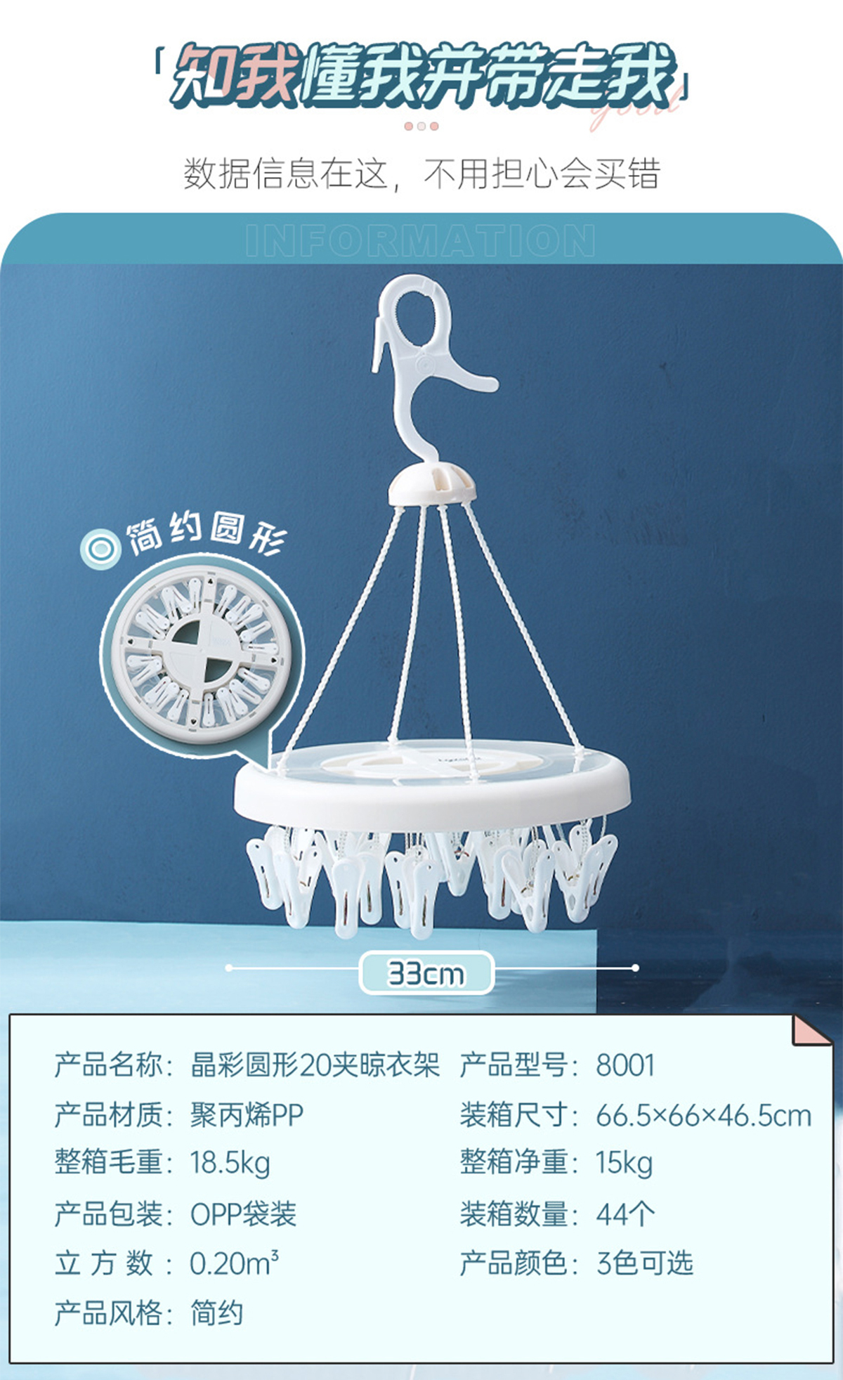 晶彩圓形20夾晾衣架 2023年新色