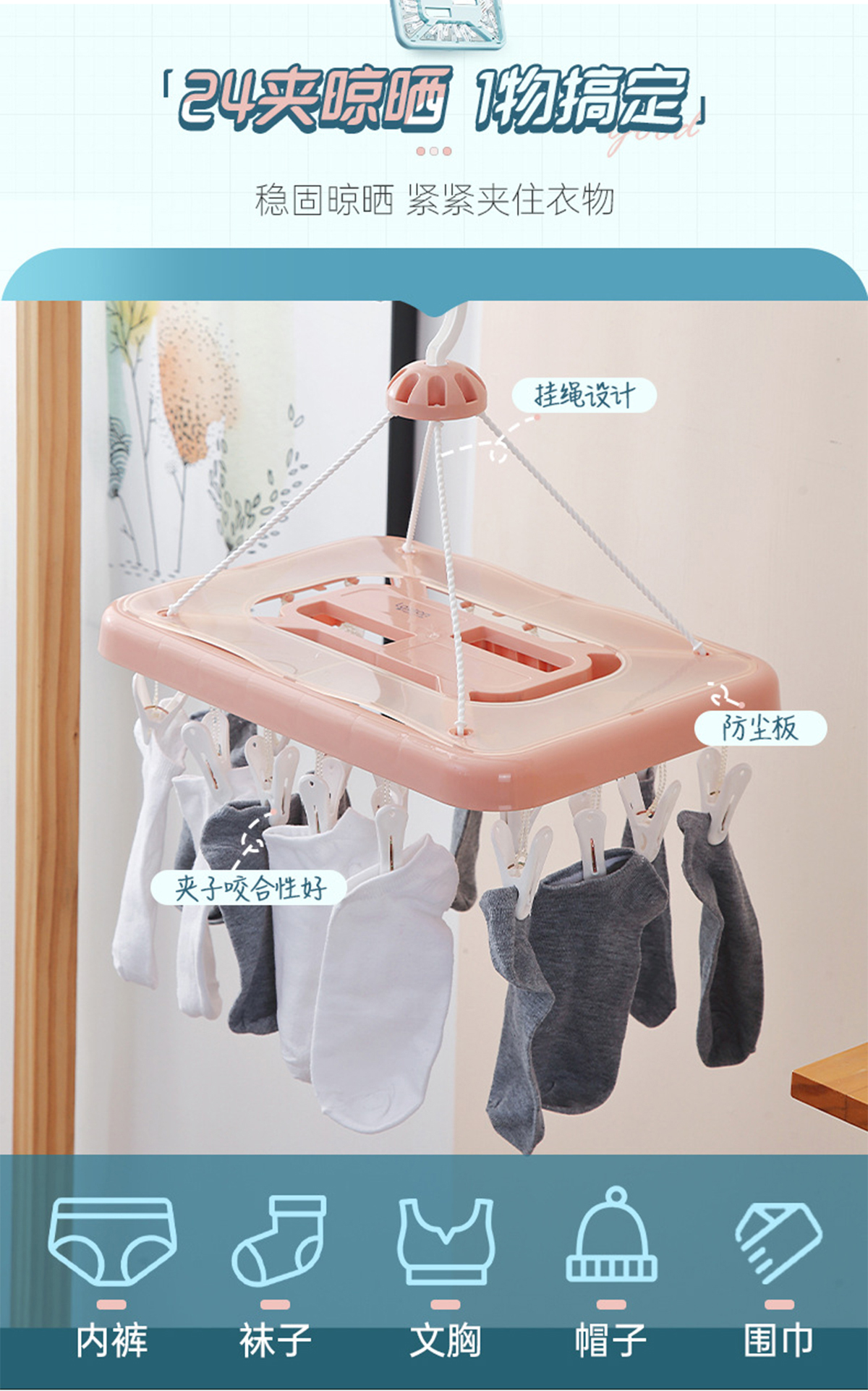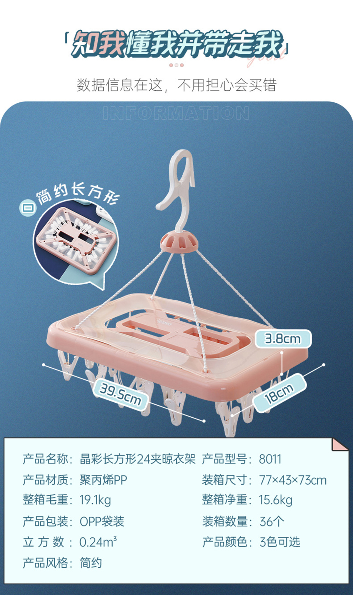 晶彩長(zhǎng)方形24夾晾衣架 2023年新色