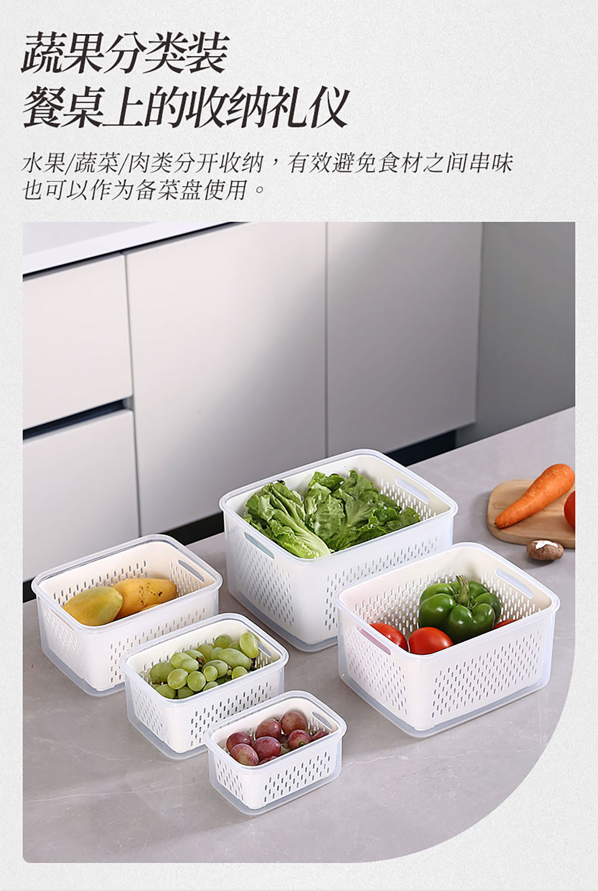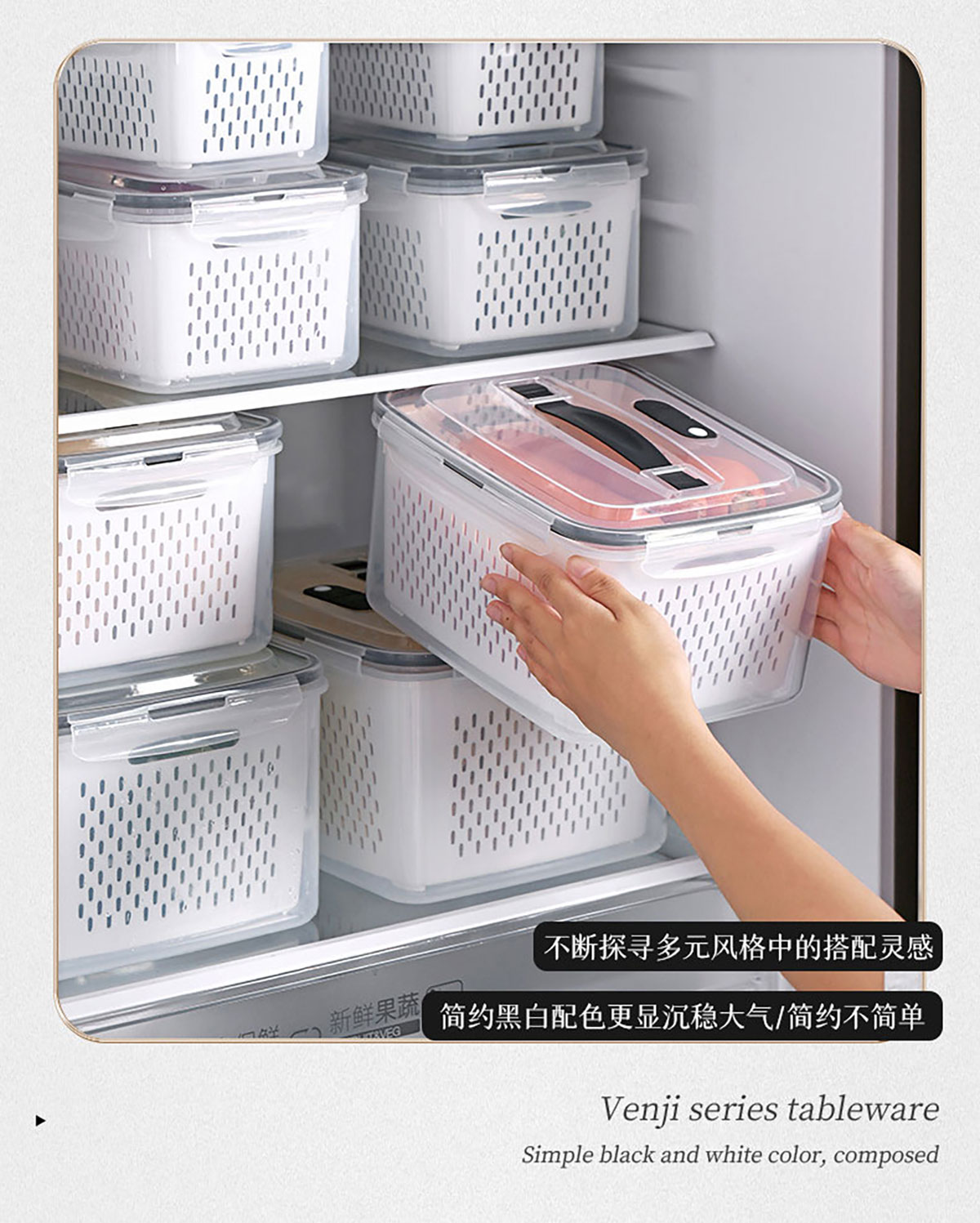 三件/四件/五件/六件套手提長方形密封瀝水保鮮盒