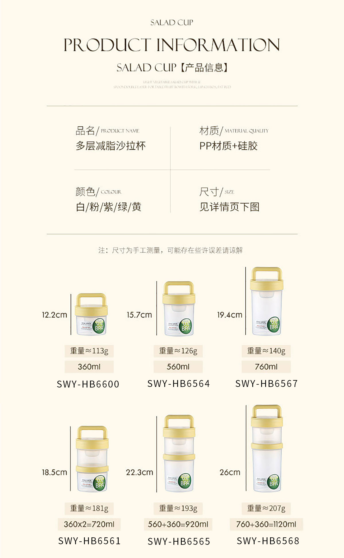 多層沙拉杯360ml/560ml/760ml/720ml/920ml/1120ml