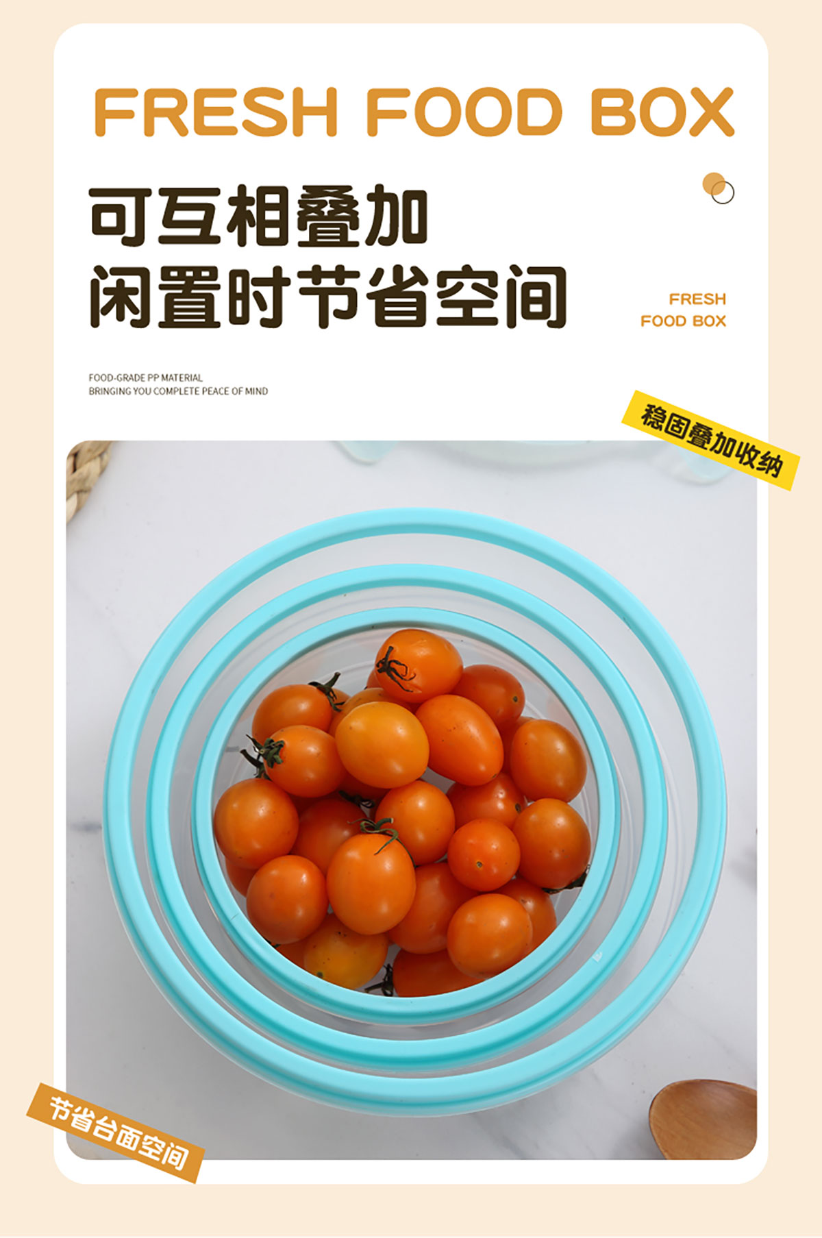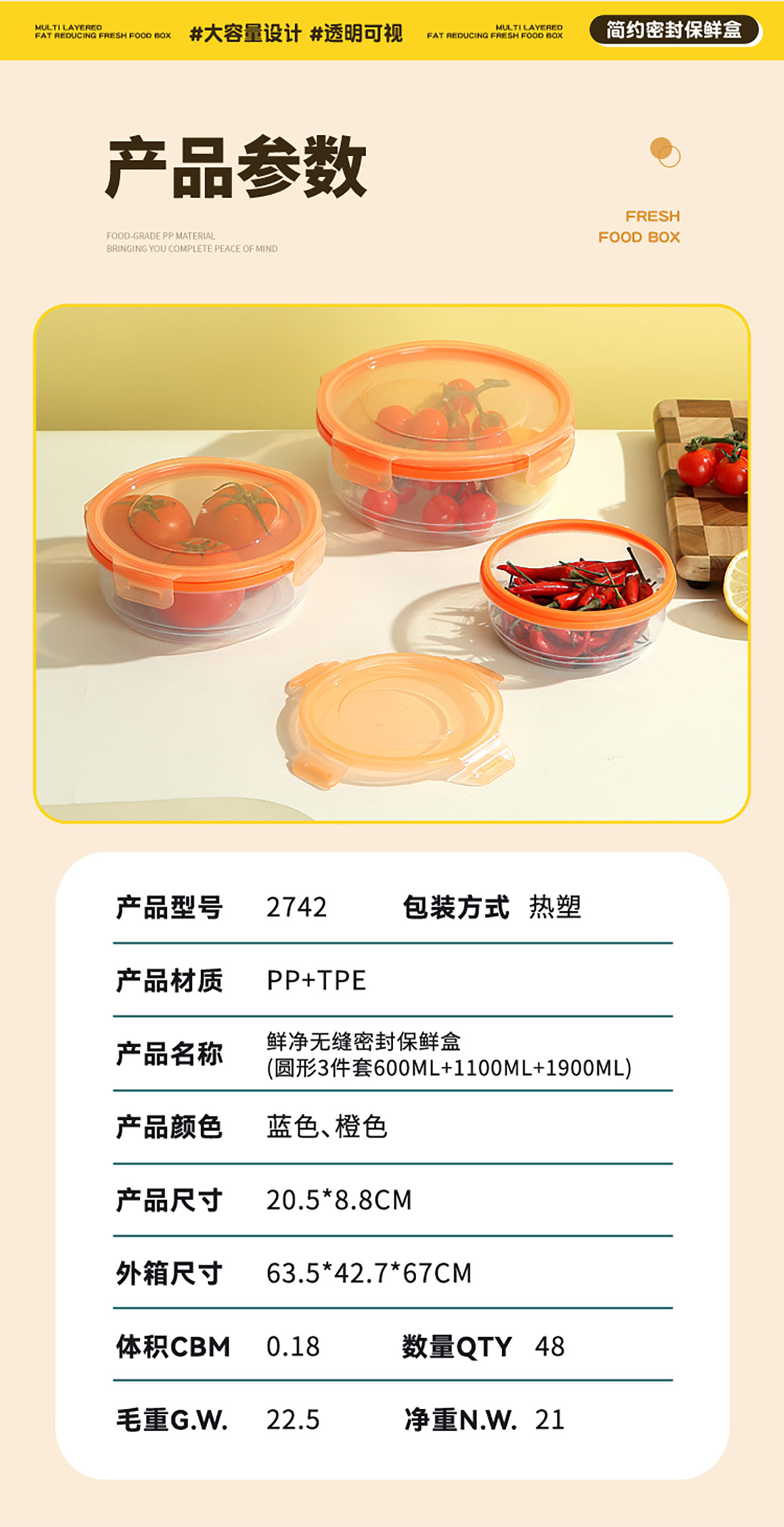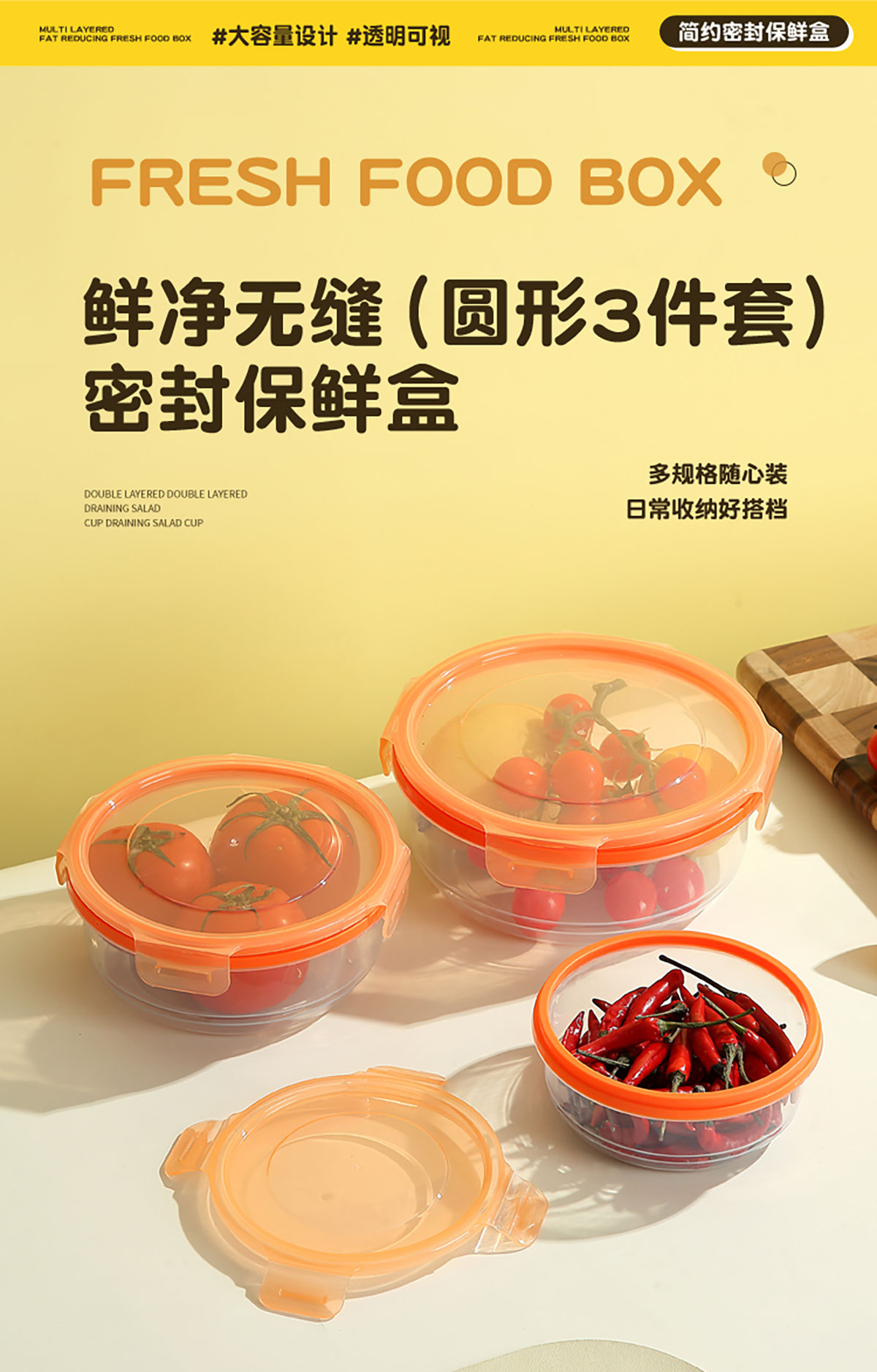 鮮凈無縫密封保鮮盒(圓形3件套600ml+1100ml+1900ml)