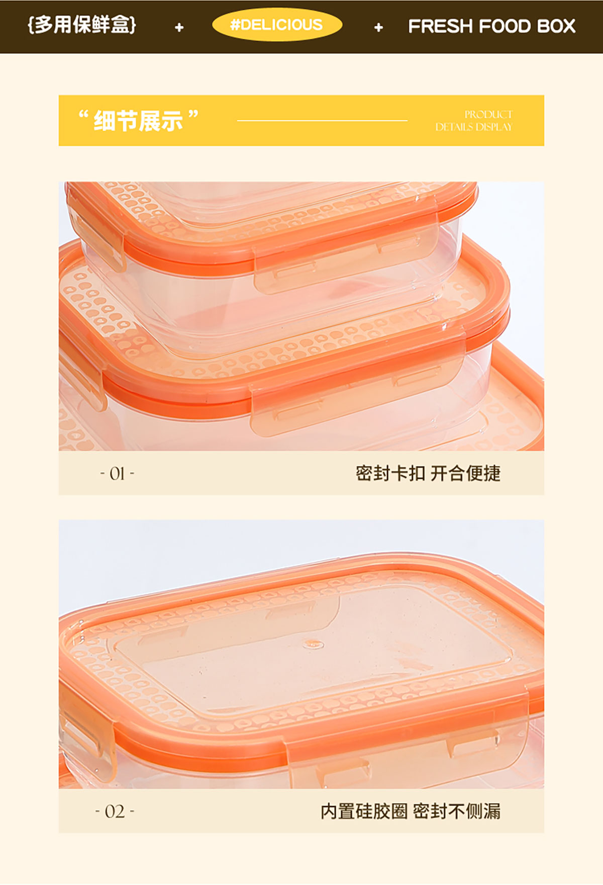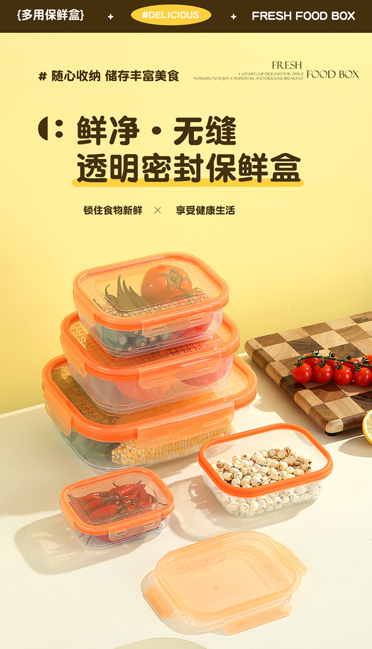 鮮凈無縫密封保鮮盒(長(zhǎng)方3件套/5件套)