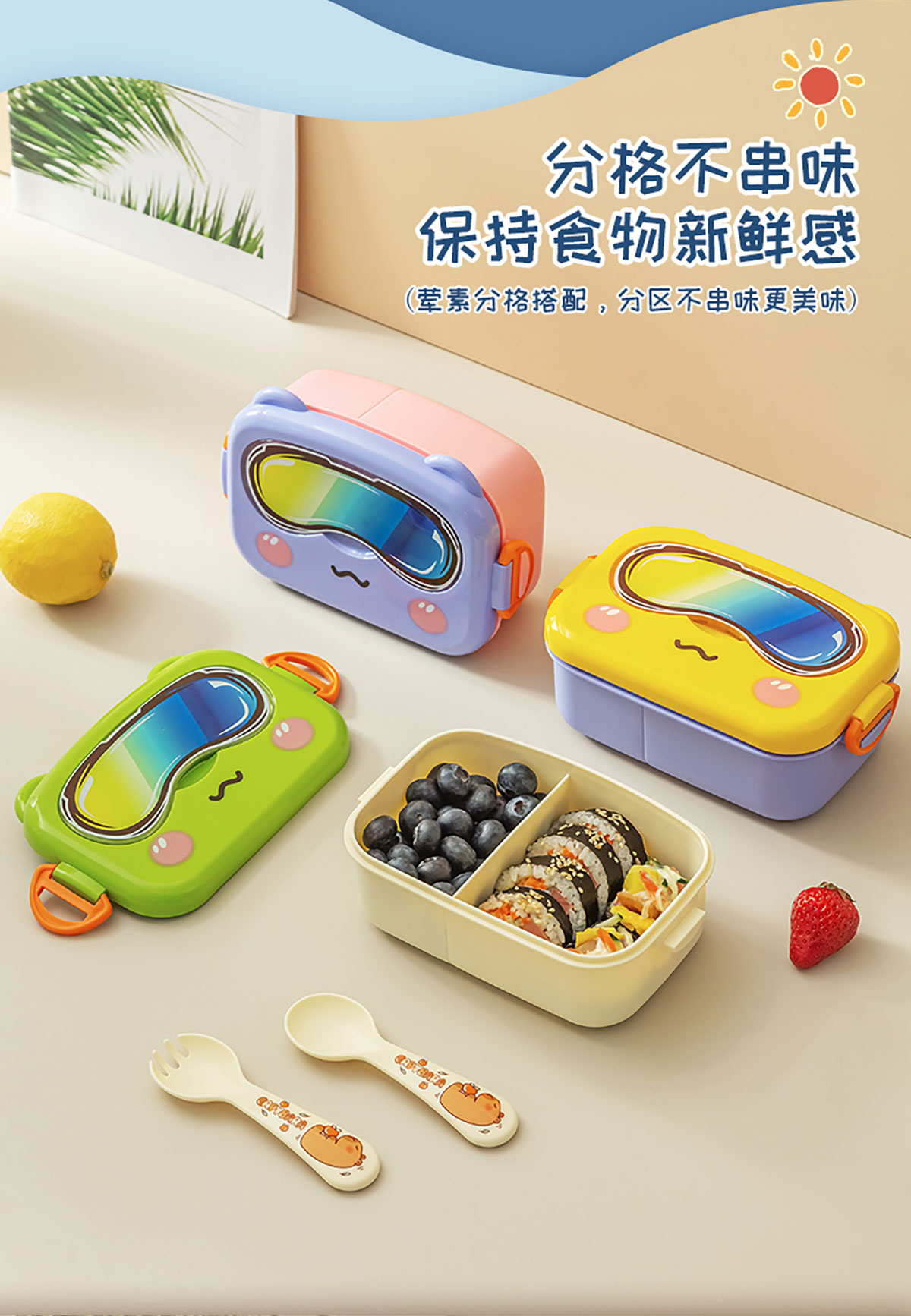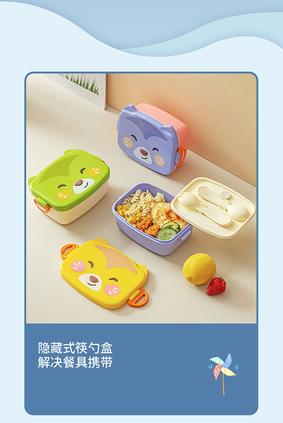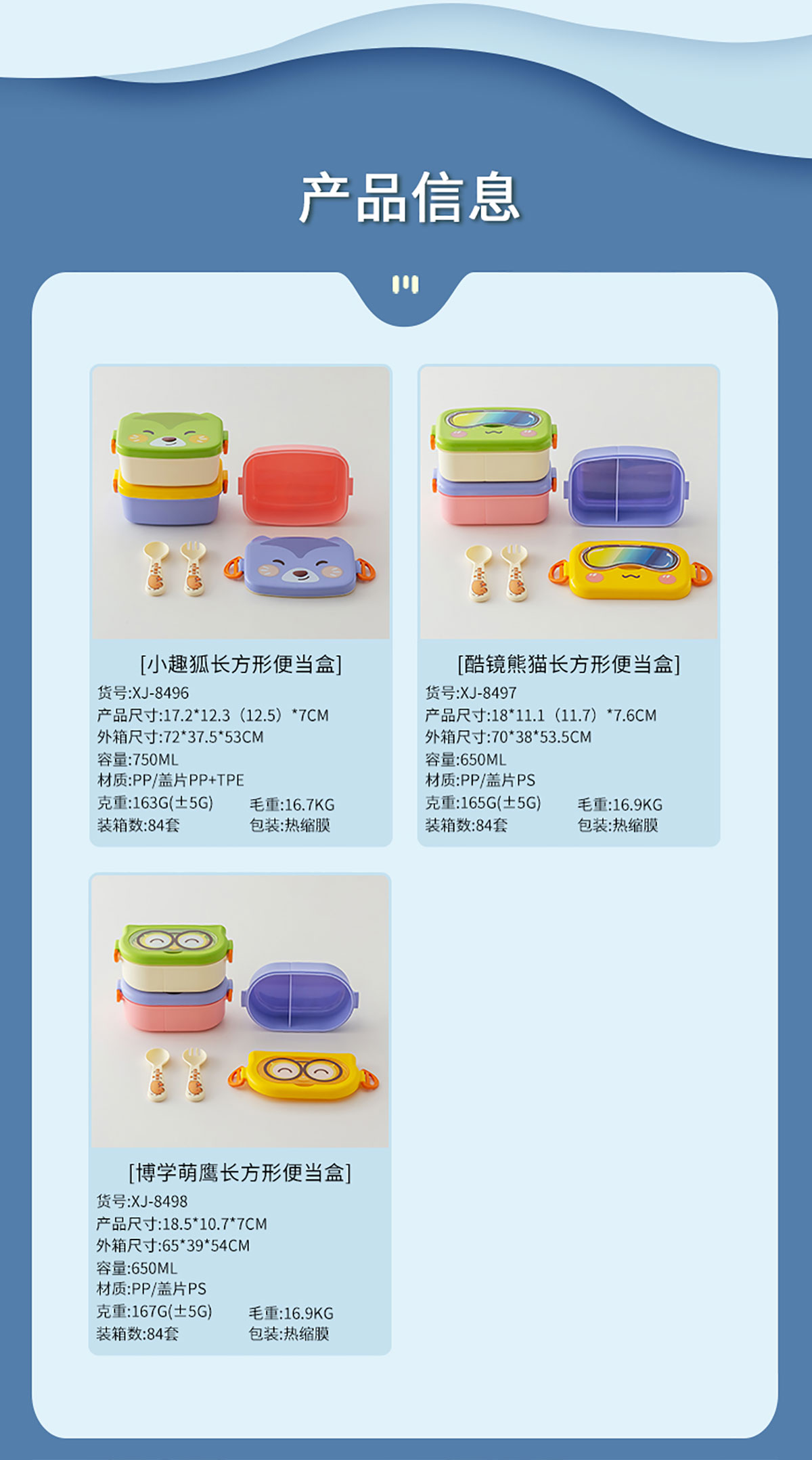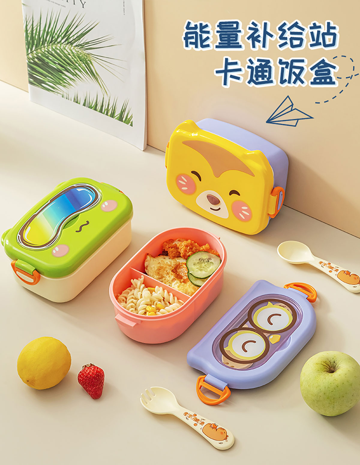 小趣狐/酷鏡熊貓/博學(xué)萌鷹長(zhǎng)方形便當(dāng)盒