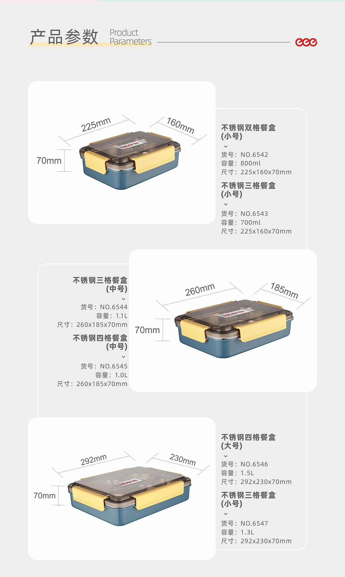 不銹鋼雙格/三格(小號(hào))三格/四格(中號(hào))四格/五格(大號(hào))餐盒(20年色款)