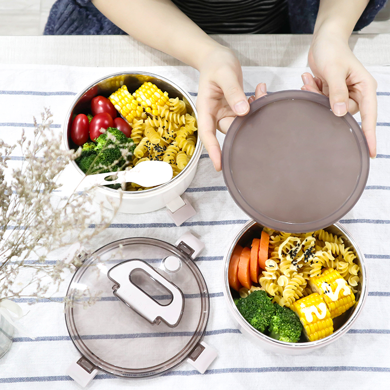 艾格不銹鋼提手單層飯盒(圓形)