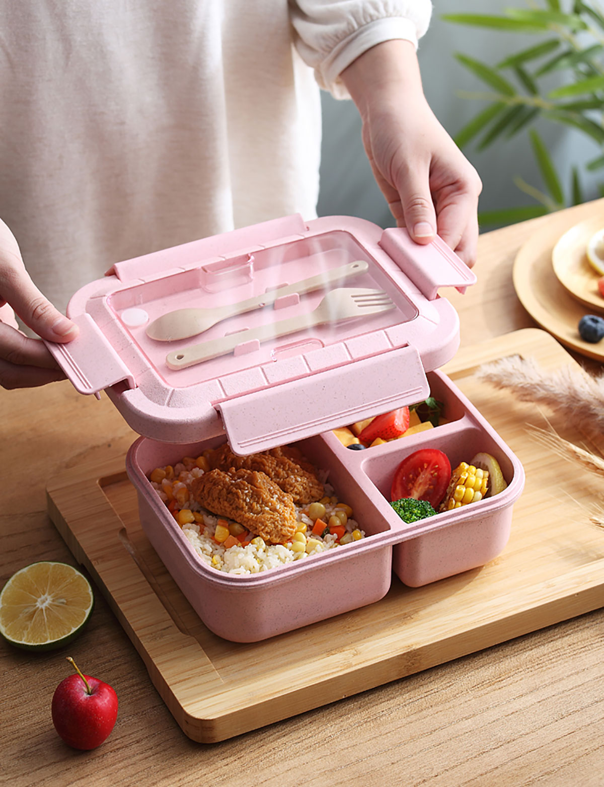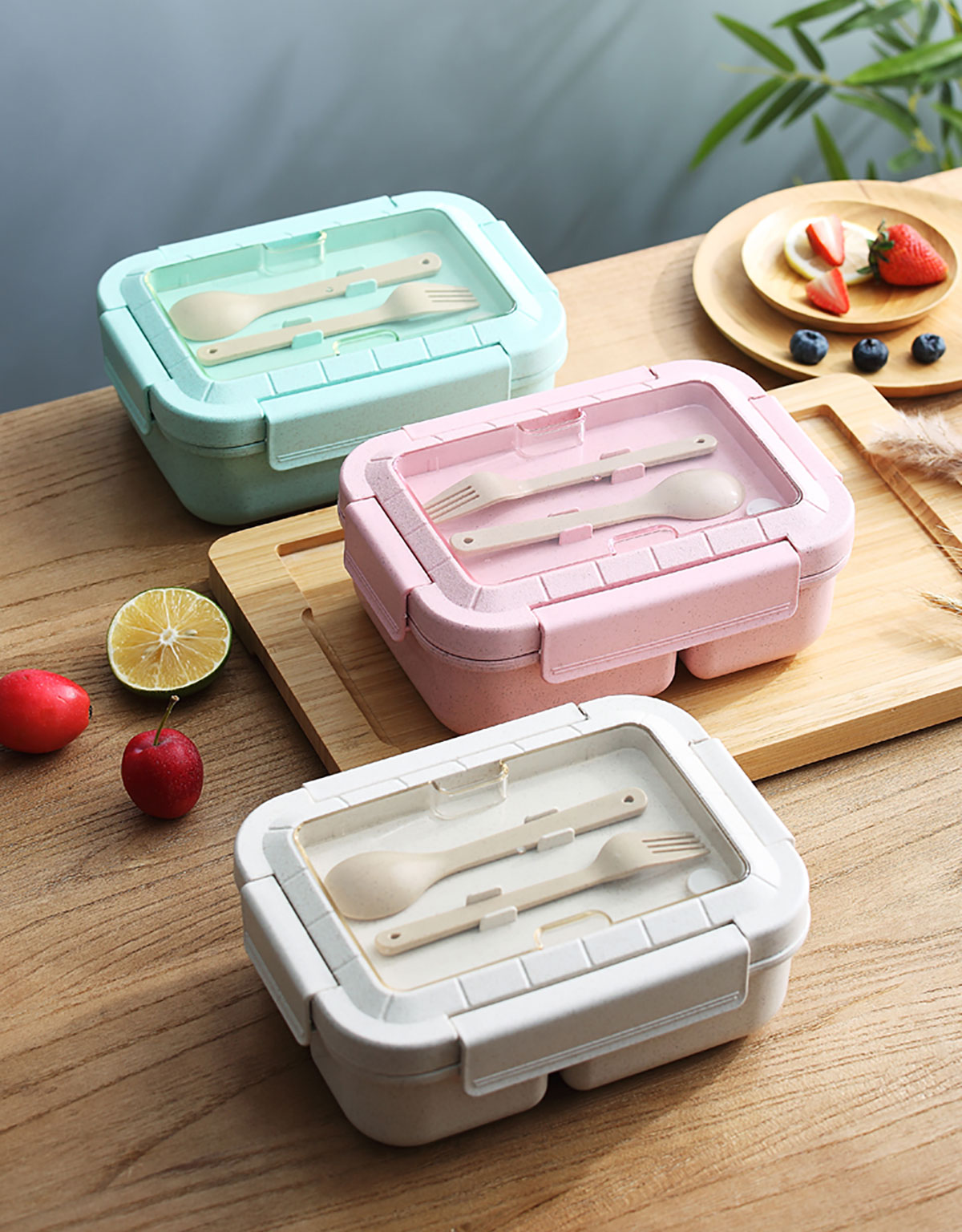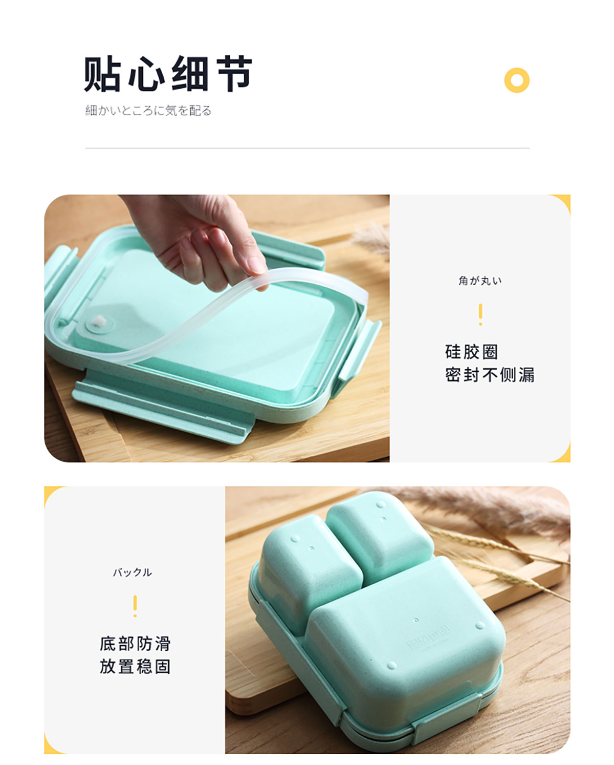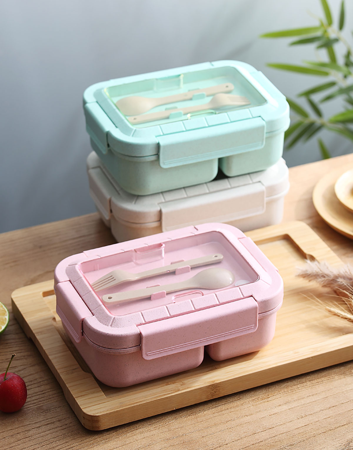 麥秸長方三格飯盒