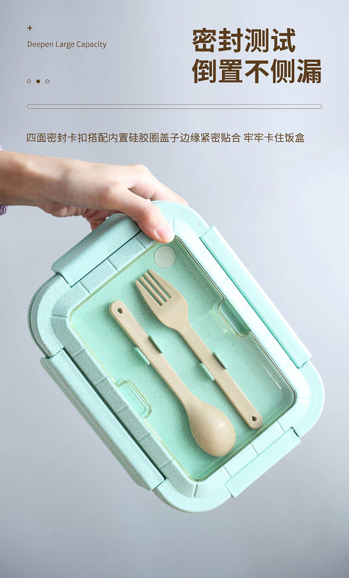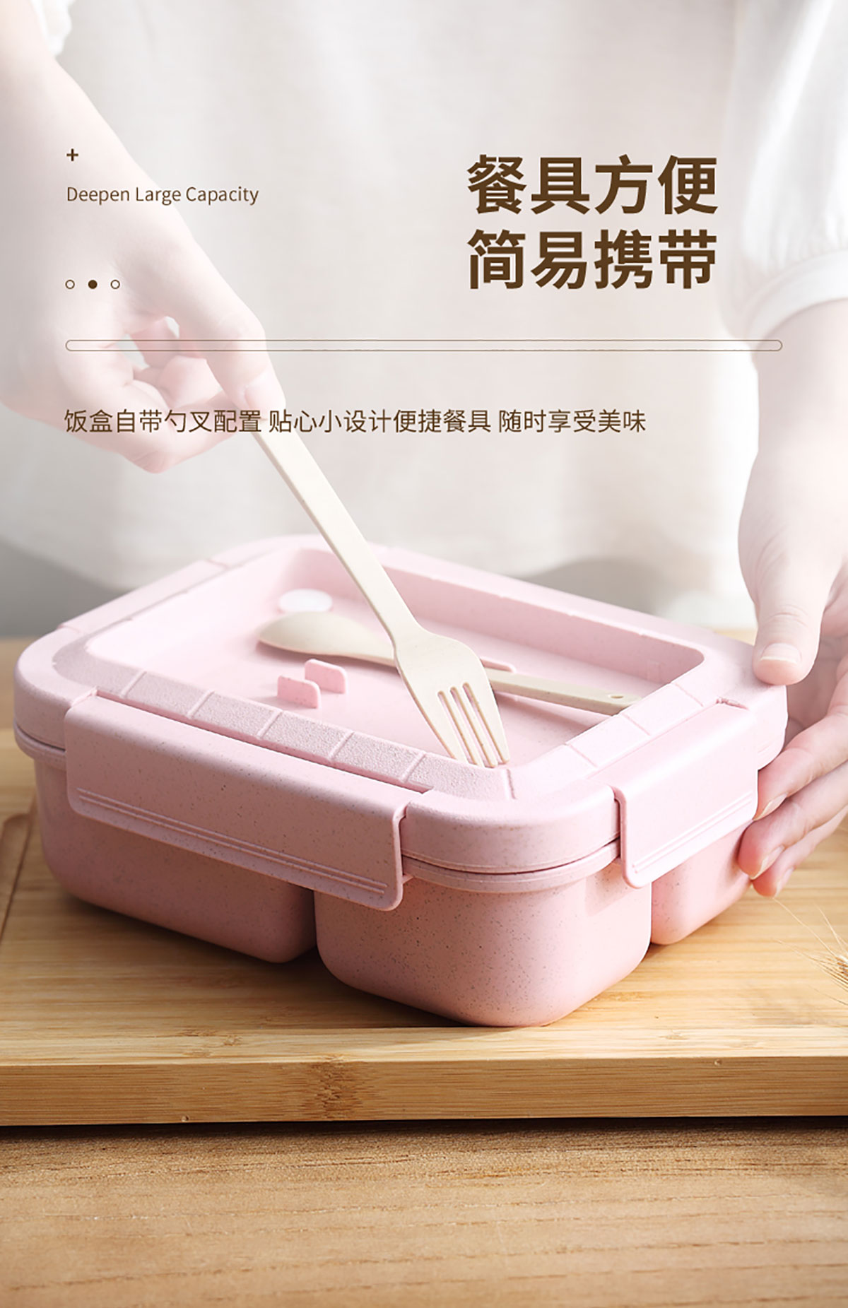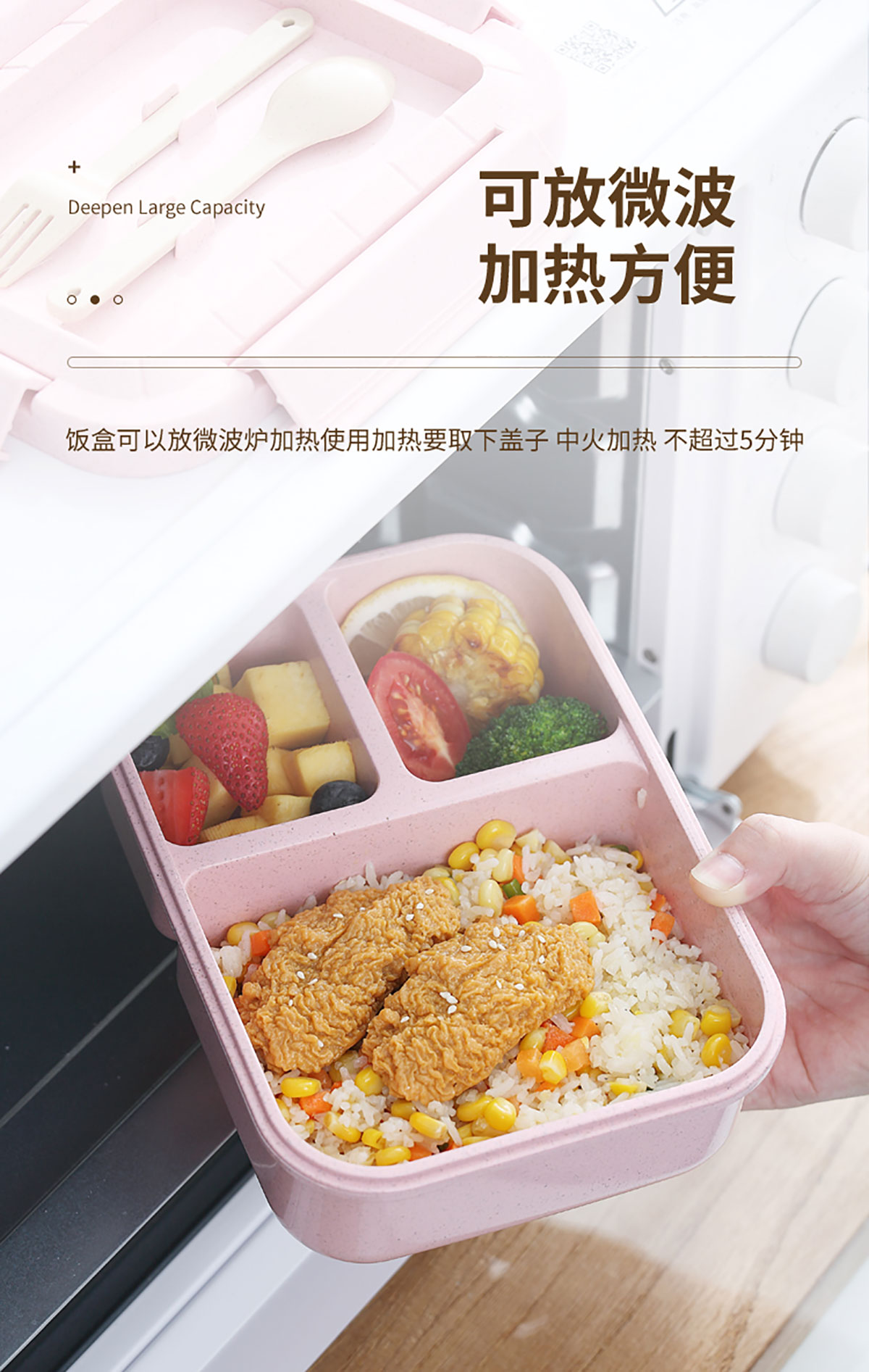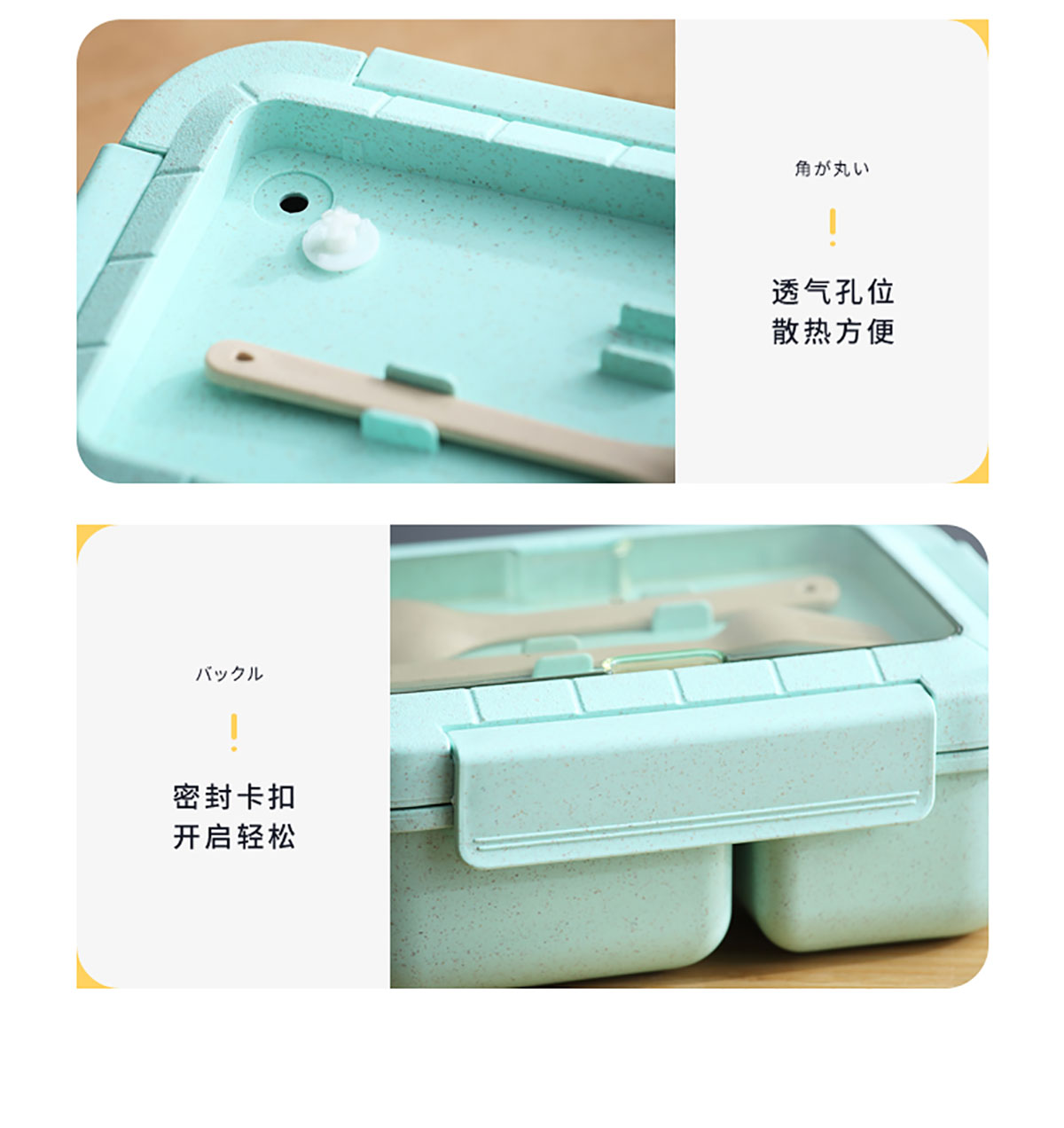 麥秸長方三格飯盒