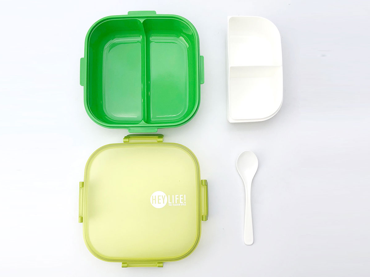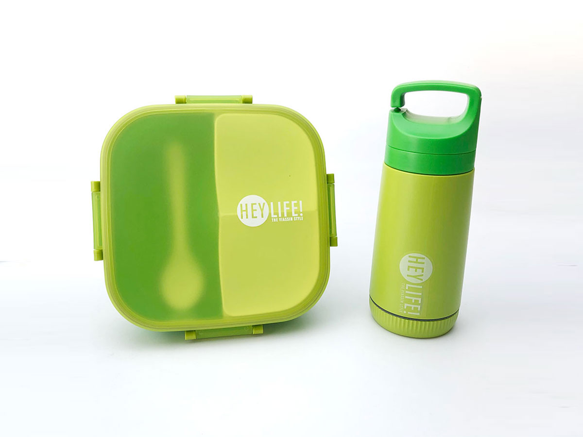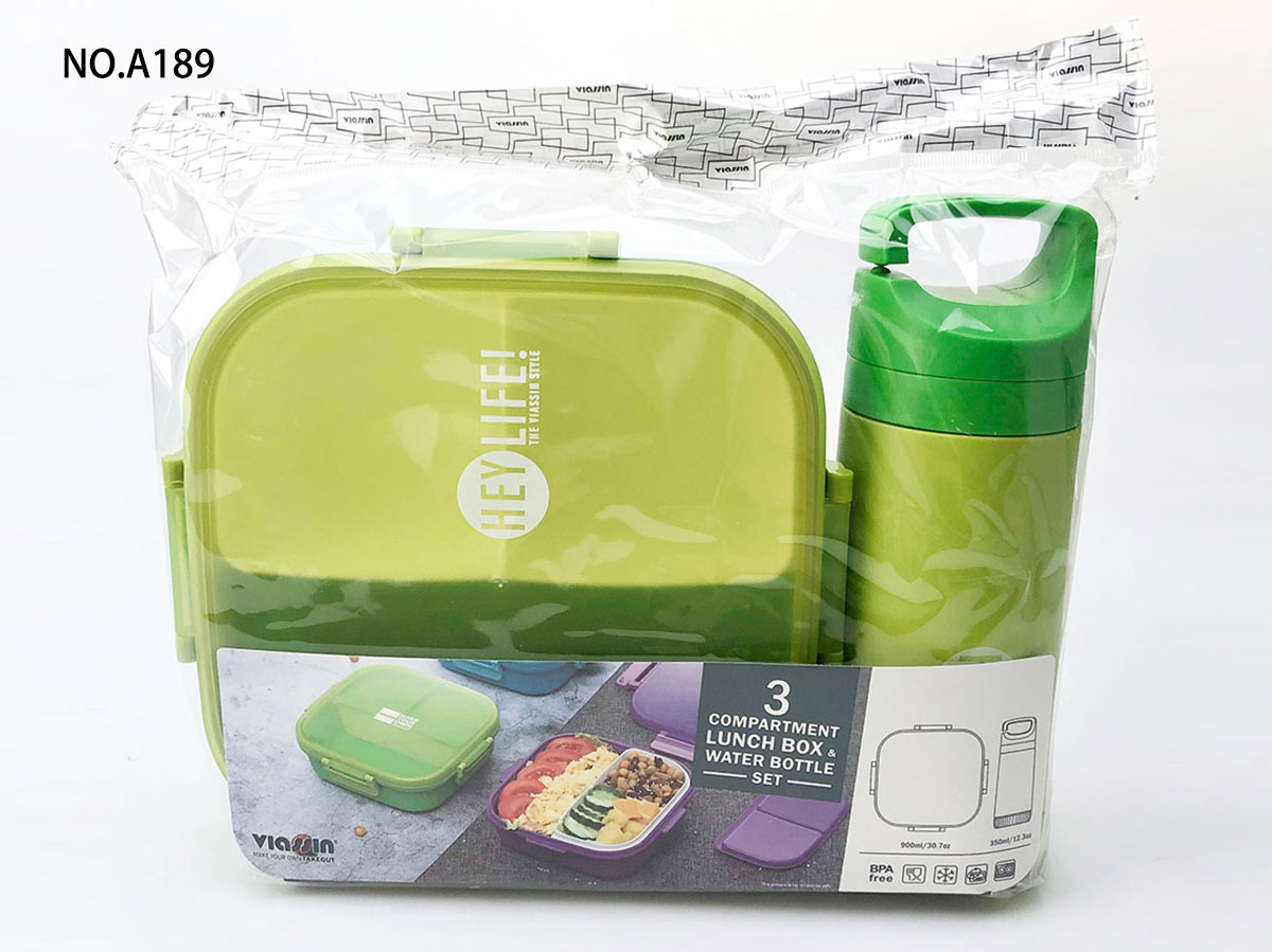 紋彩密封3格飯盒+水壺OPP袋/PVC袋套裝(正方形900+350ml)