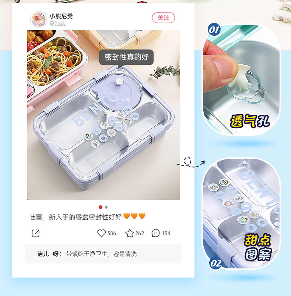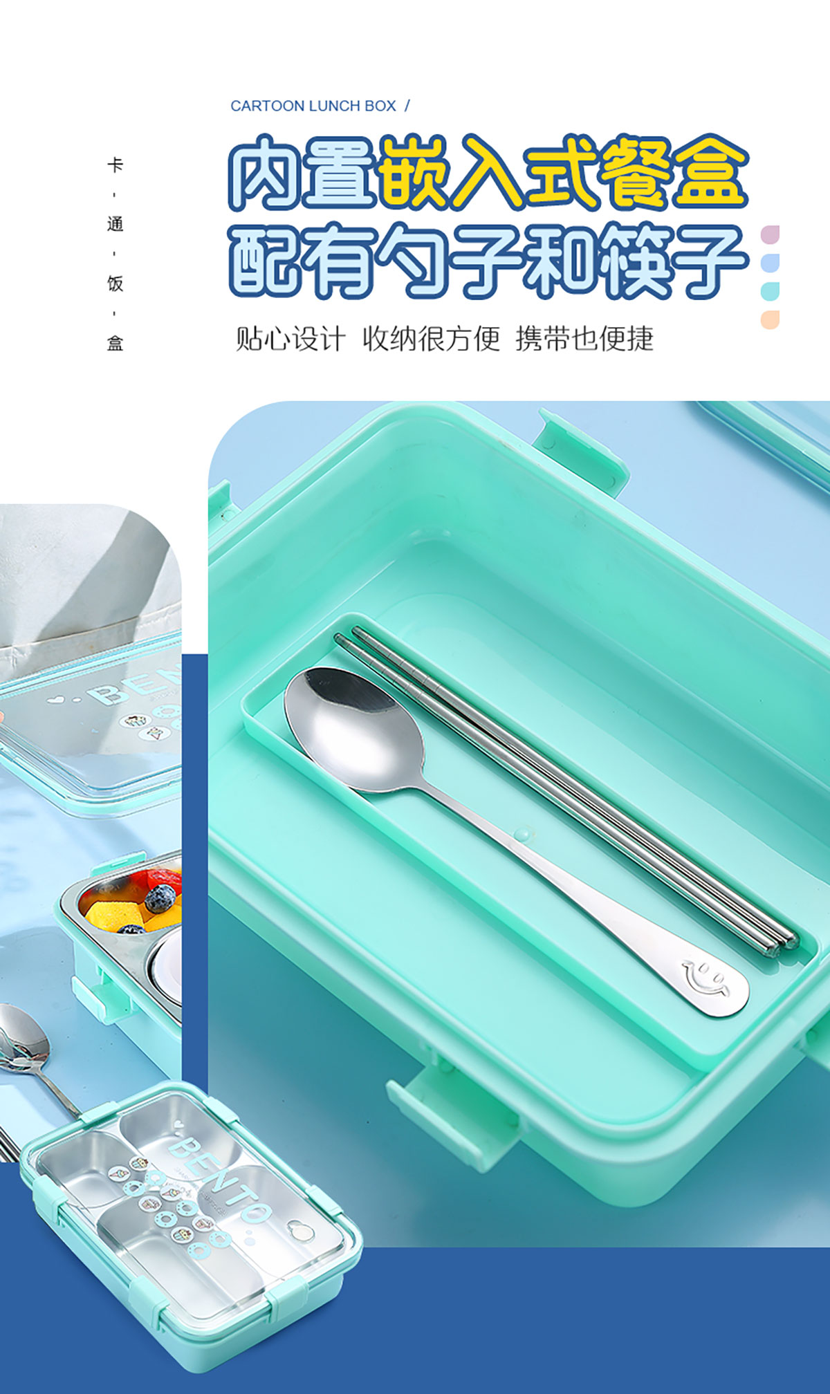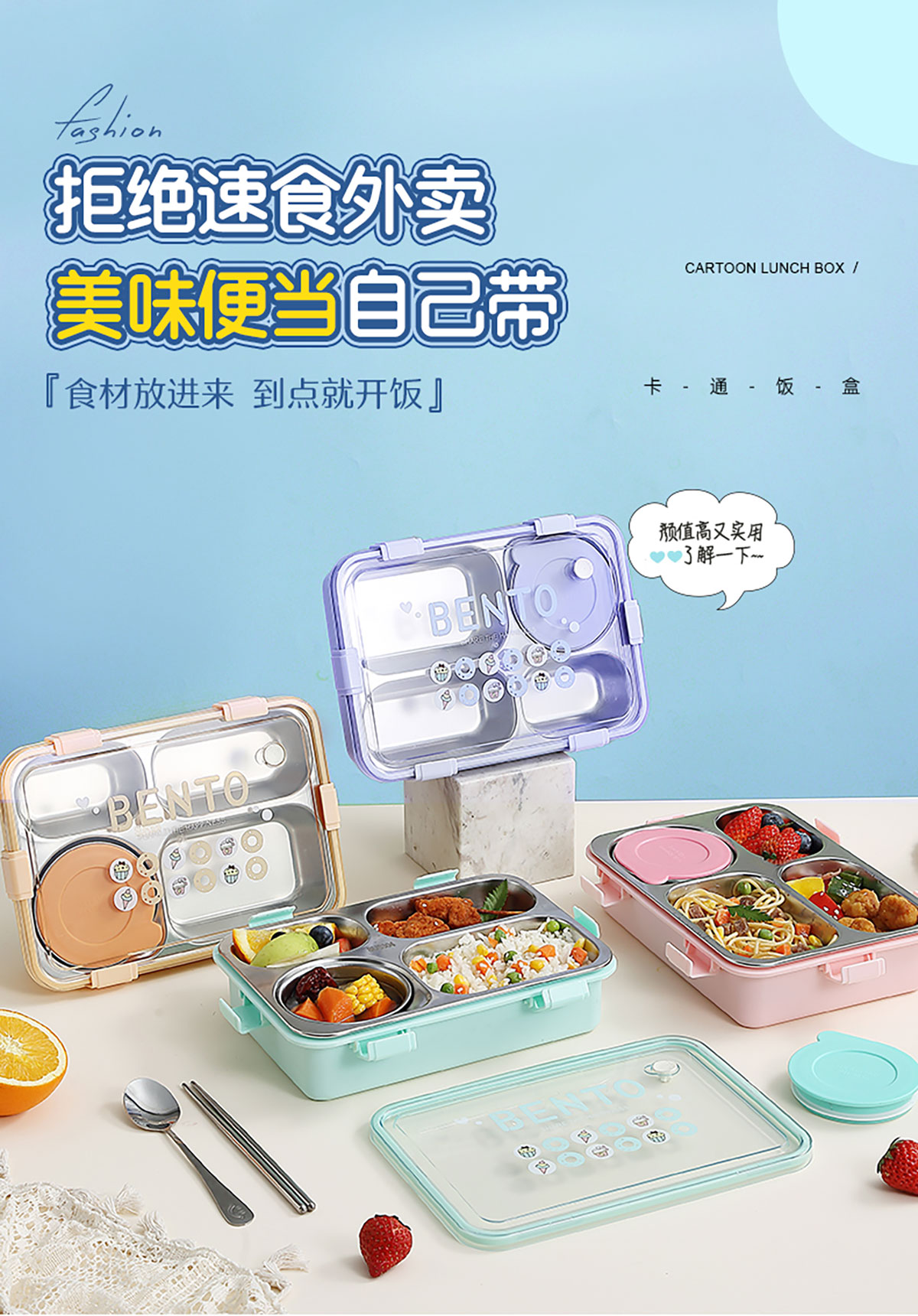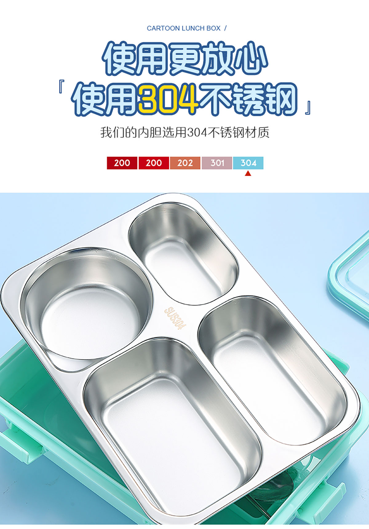 時尚清新304不銹鋼飯盒(三格900ml/四格900ml/四格+碗850ml+150ml)