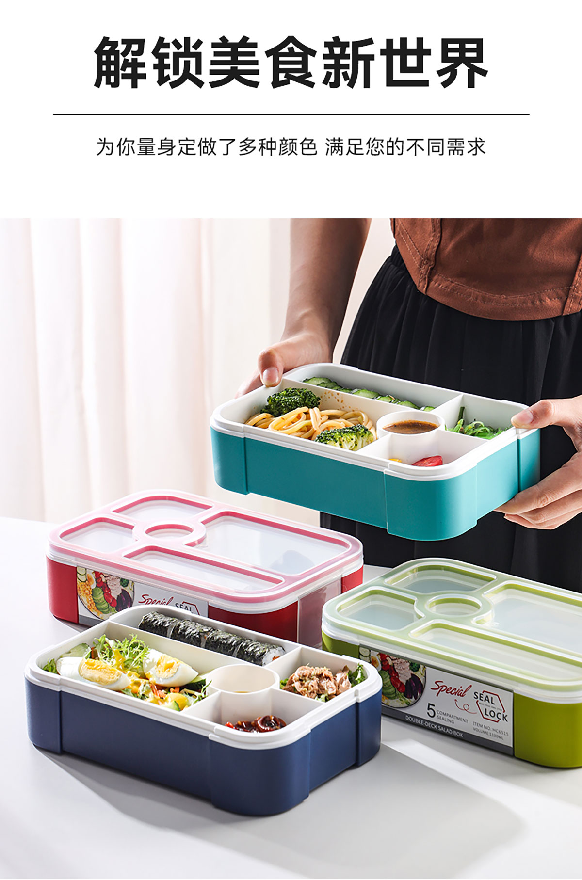 沙拉餐盒1100ml(五格分格密封)