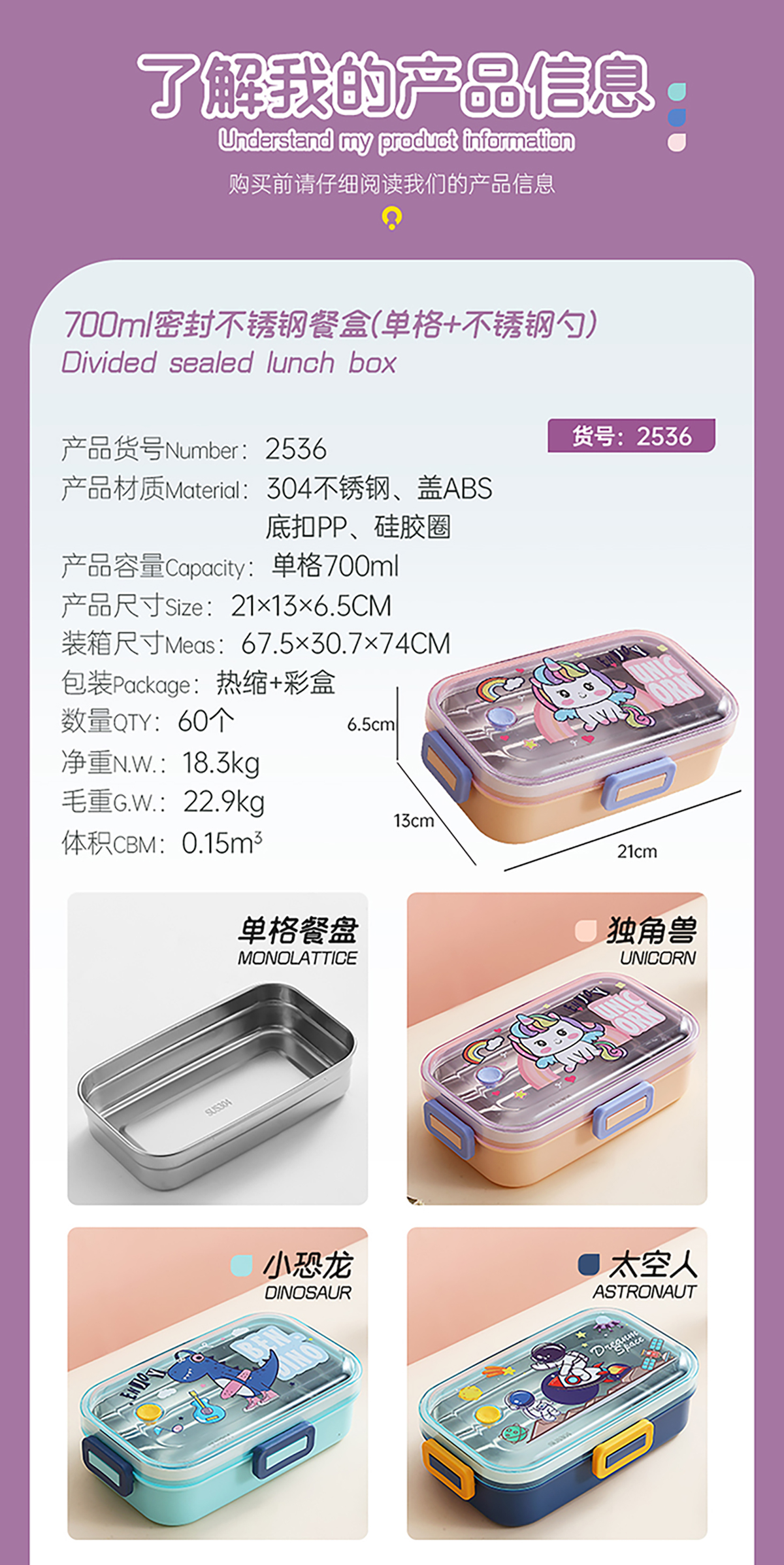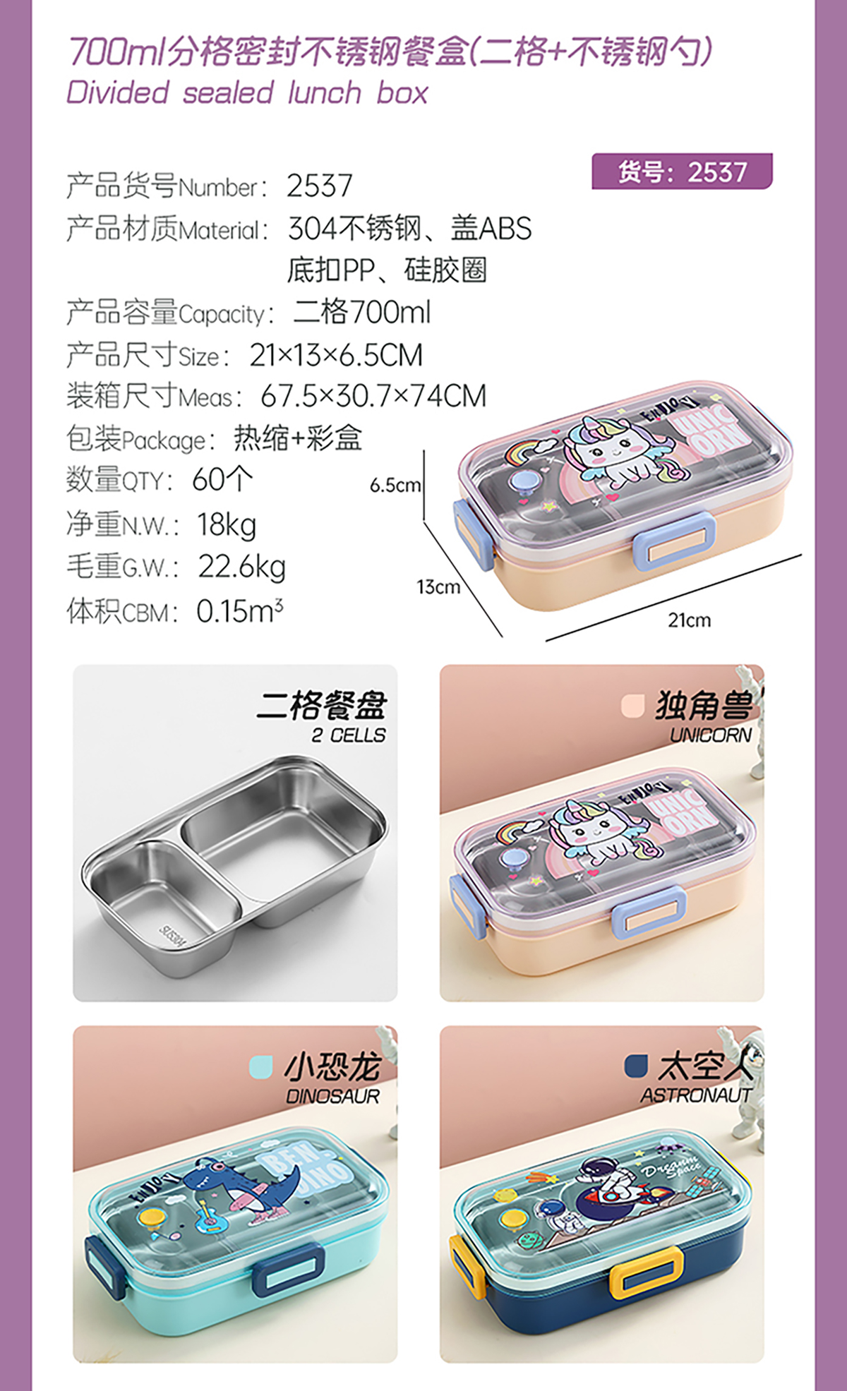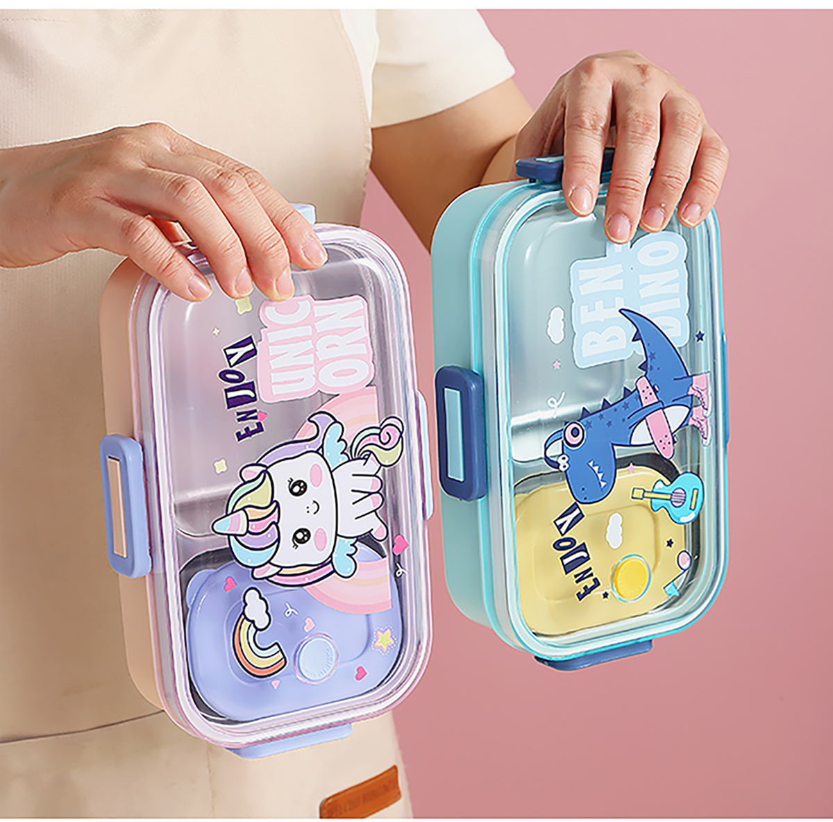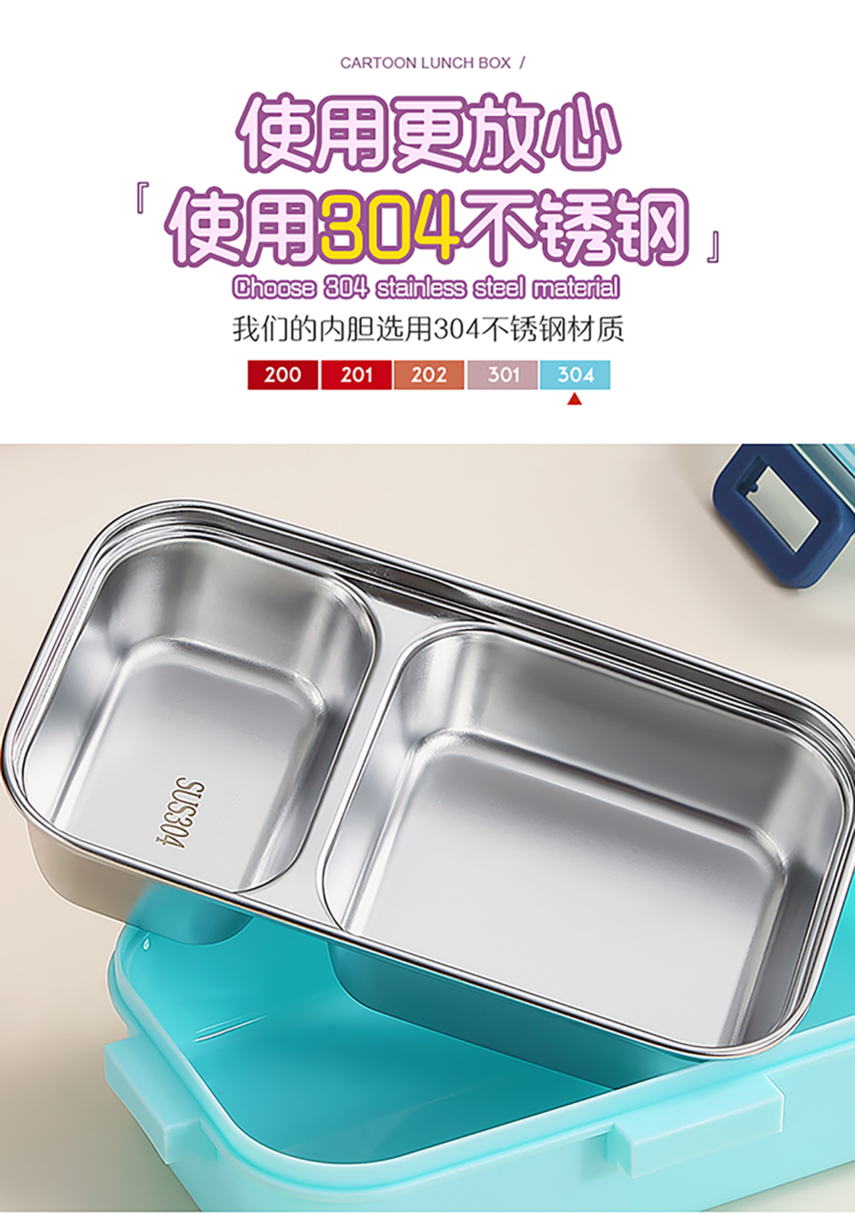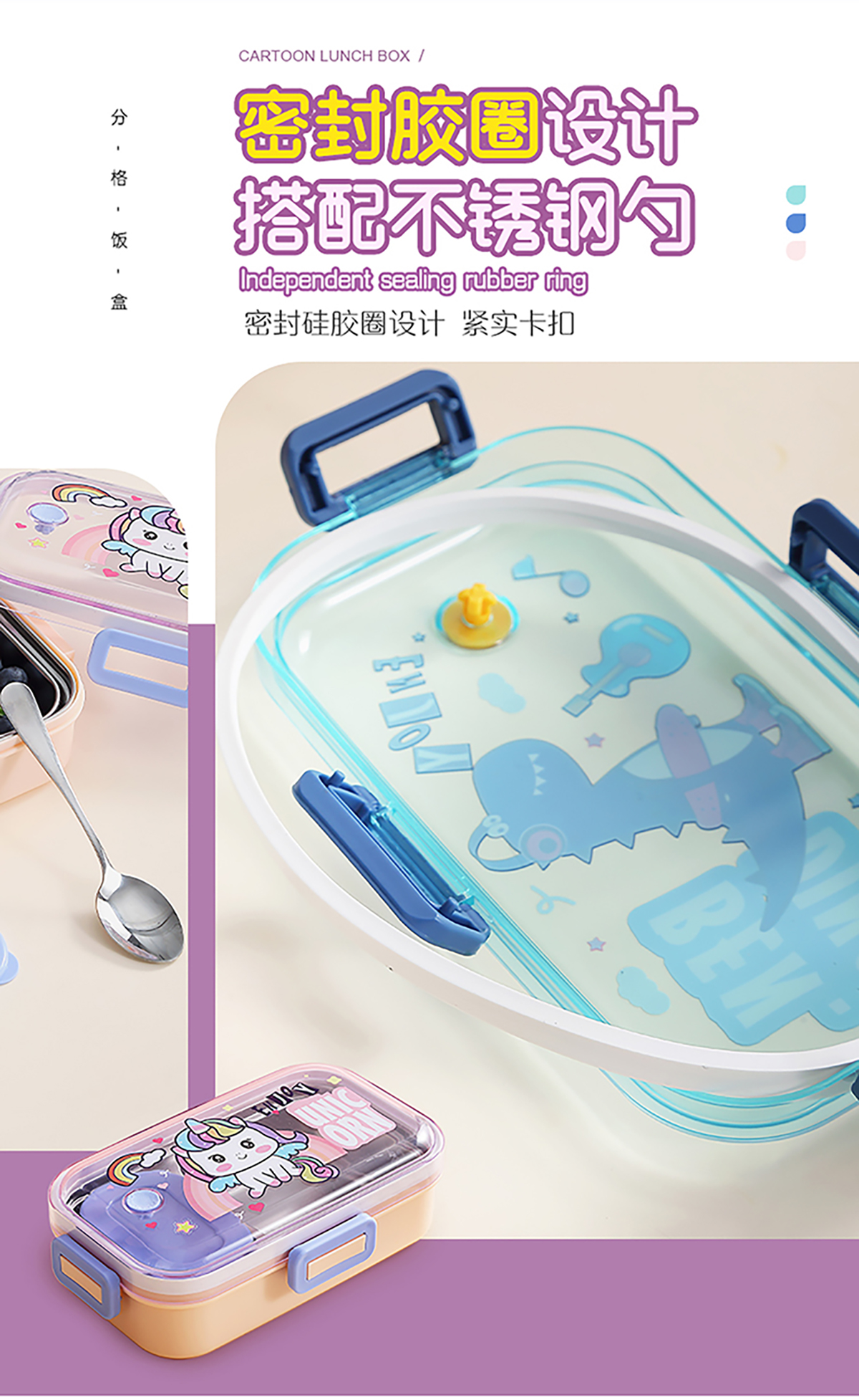 700ml萌趣密封不銹鋼餐盒(卡通單格/二格/二格+碗100ml+不銹鋼勺)