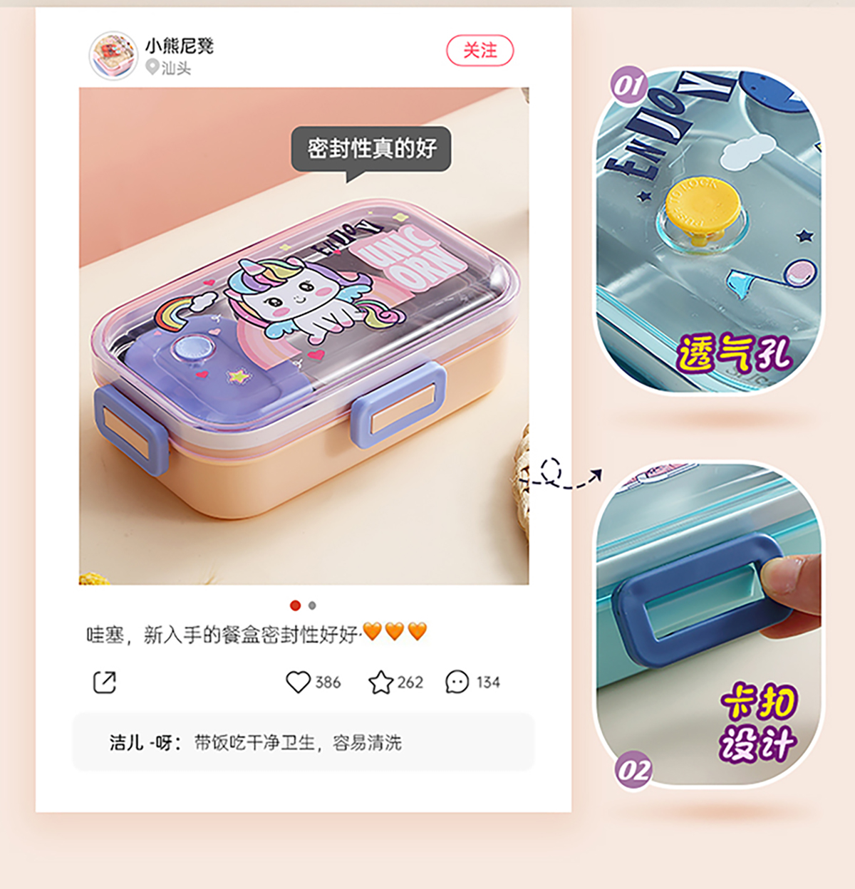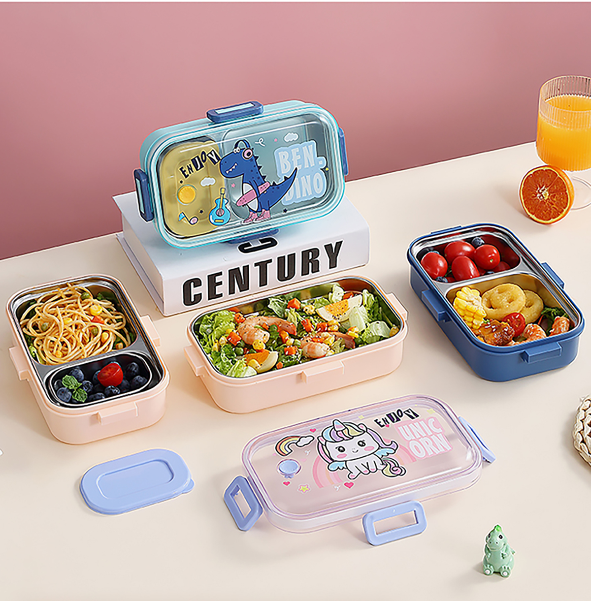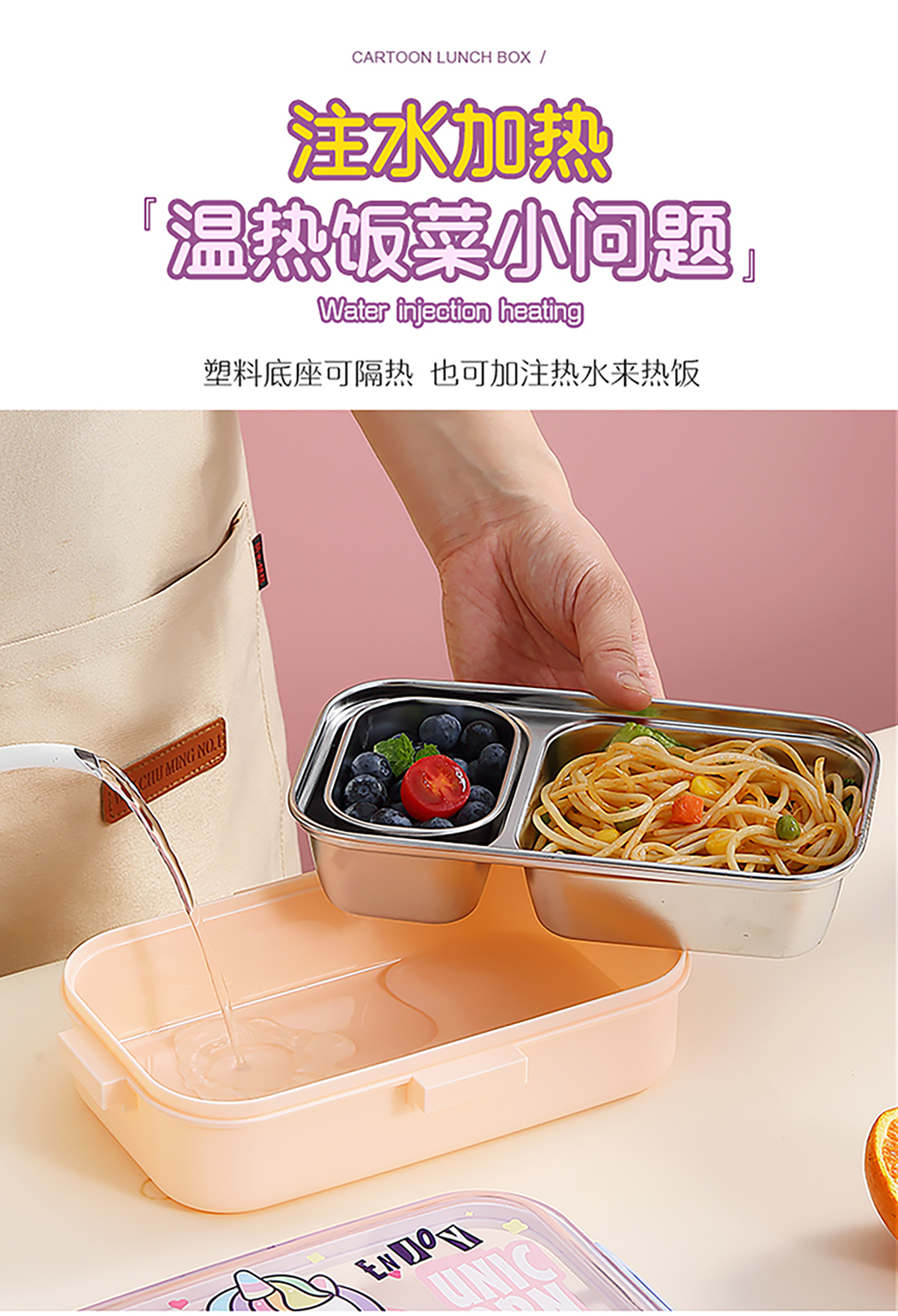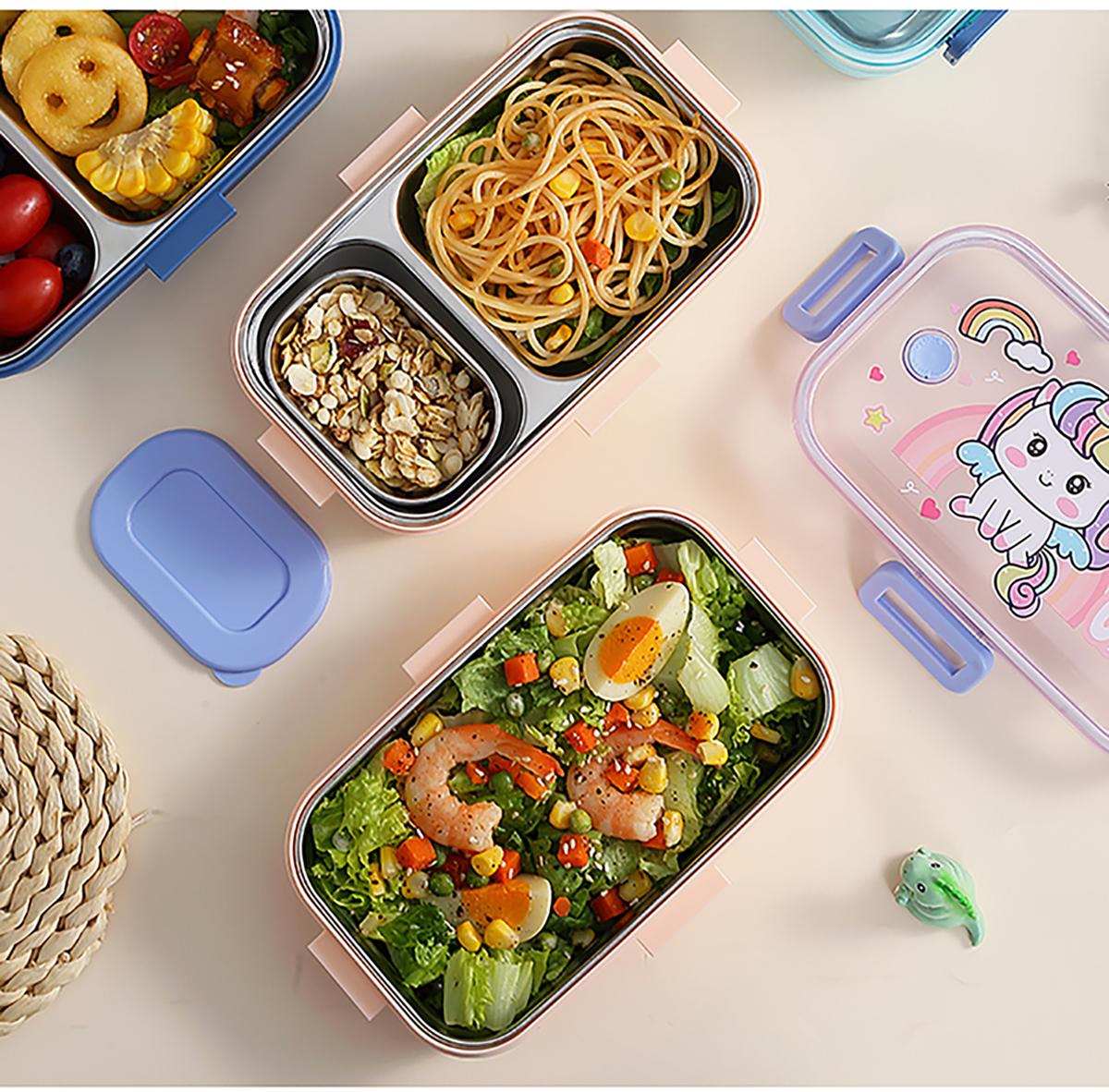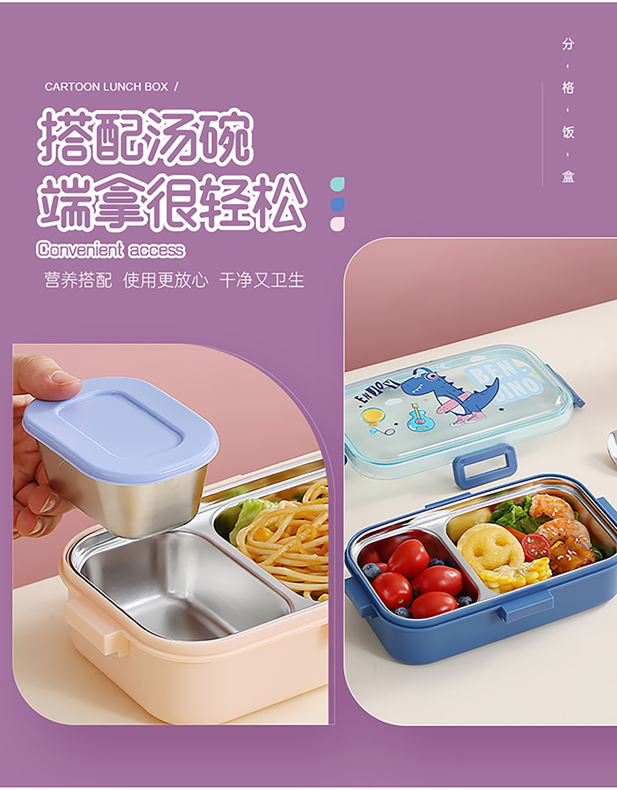 700ml萌趣密封不銹鋼餐盒(卡通單格/二格/二格+碗100ml+不銹鋼勺)