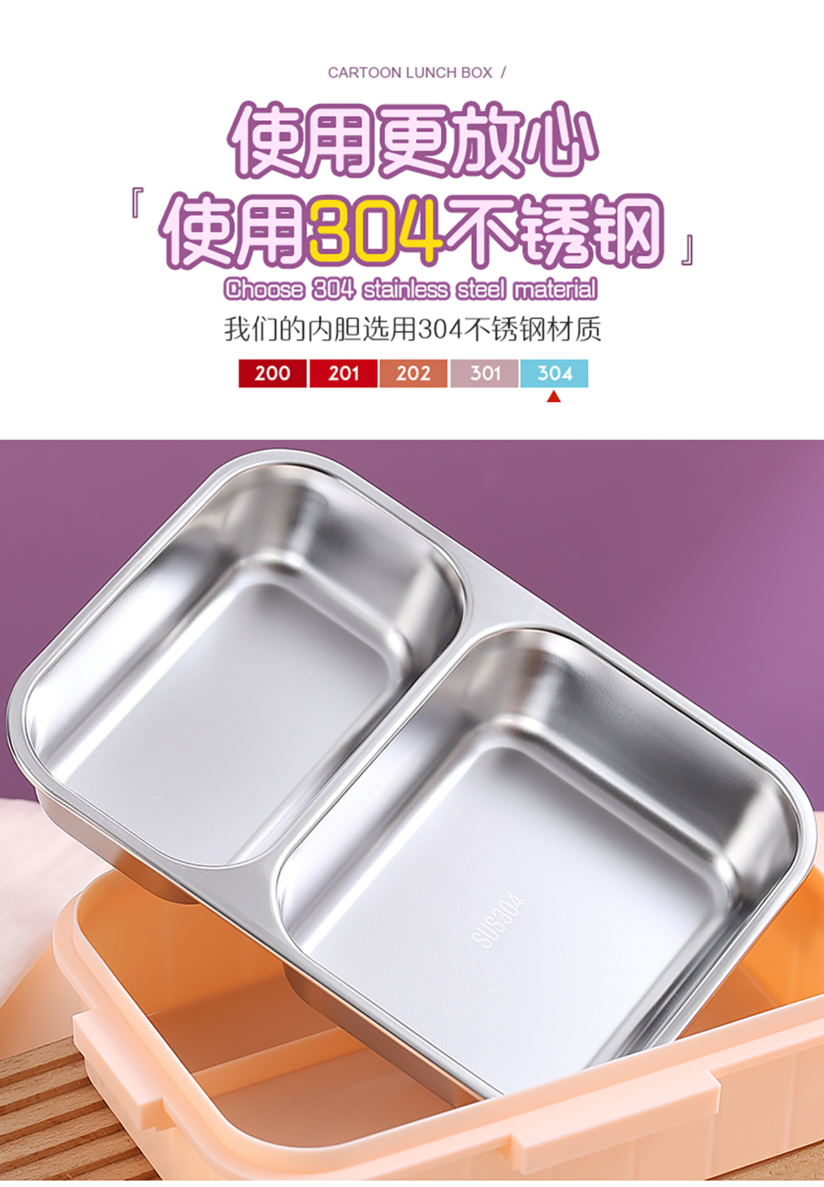 800ml/750ml獨(dú)立密封不銹鋼餐盒(時(shí)尚二格/三格+不銹鋼勺筷)