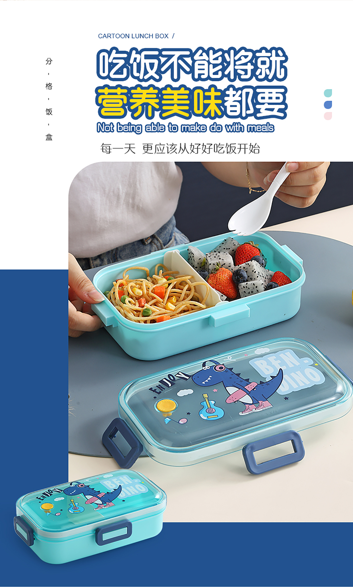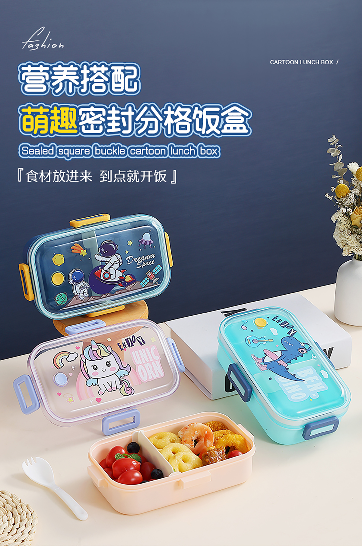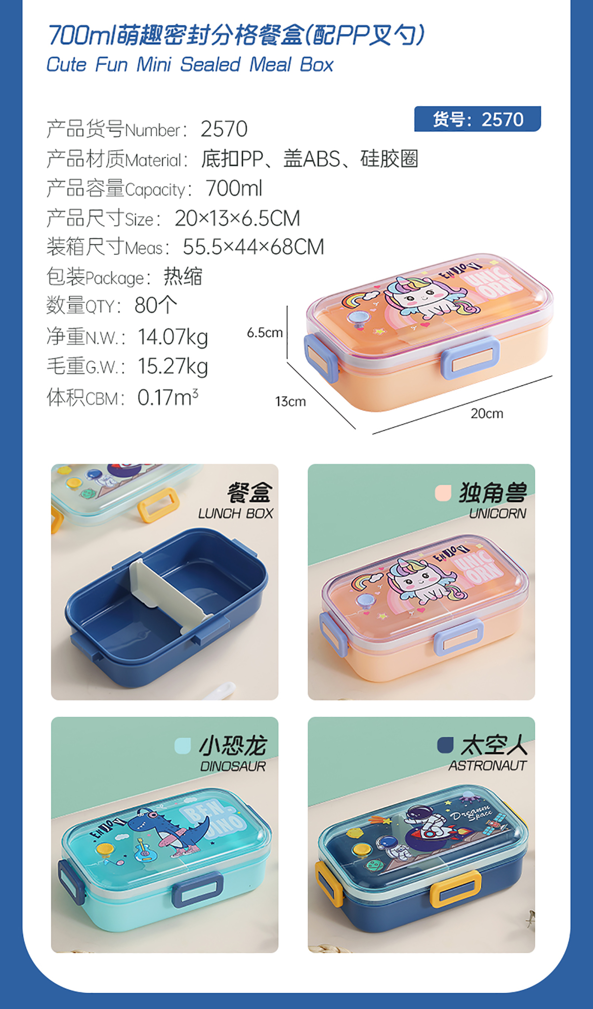530mI/700mI萌趣分格密封餐盒(配PP叉勺)