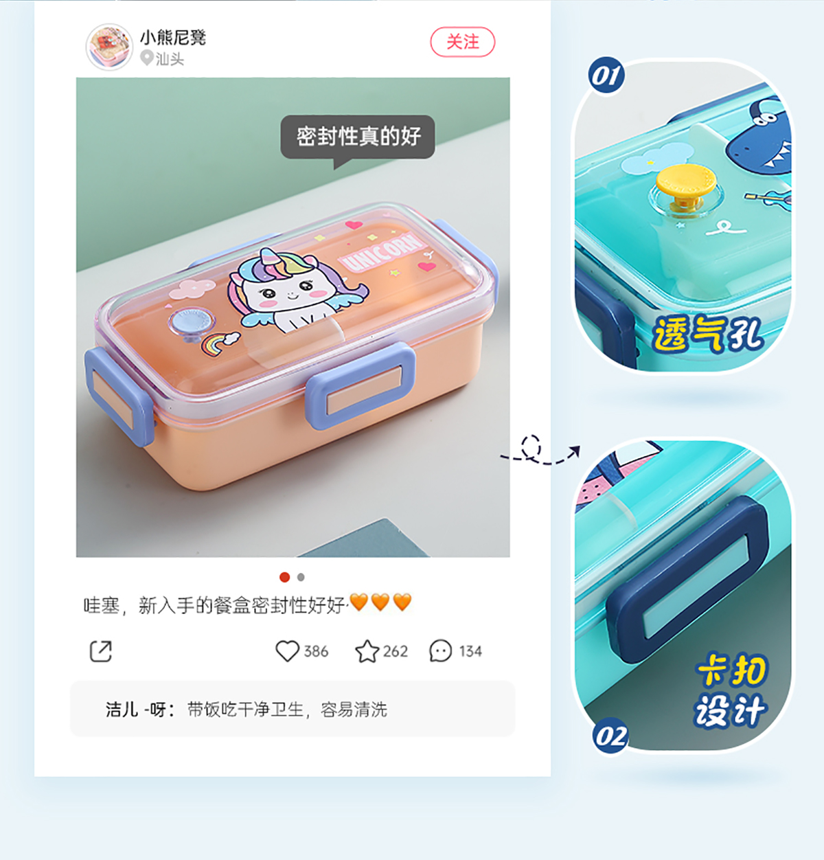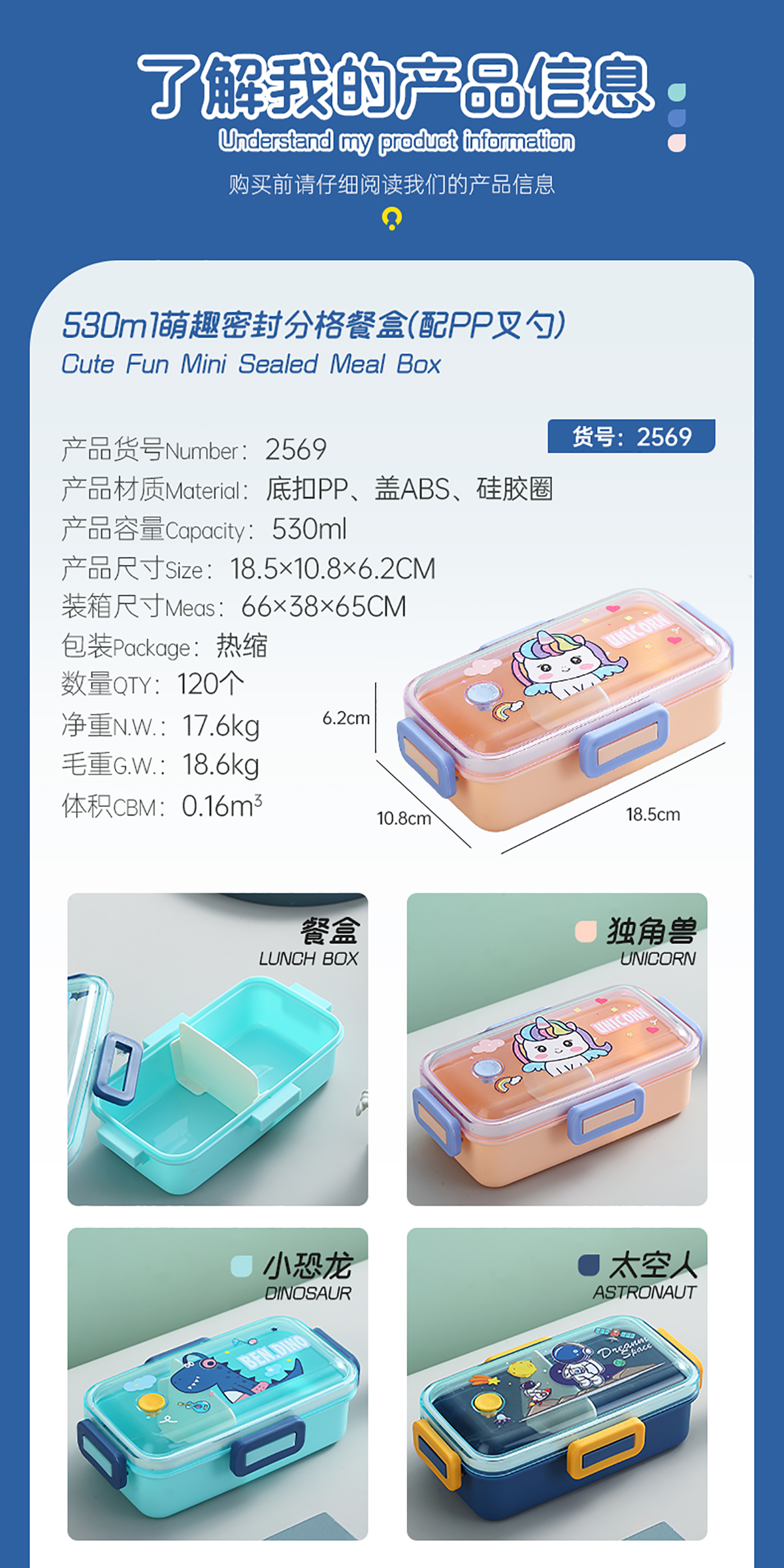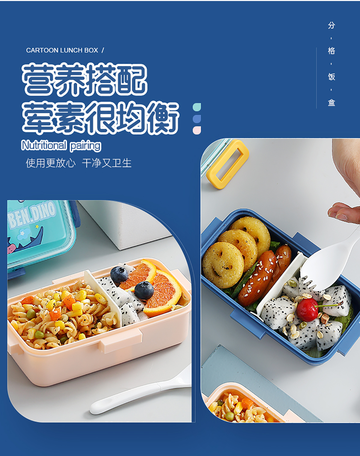 530mI/700mI萌趣分格密封餐盒(配PP叉勺)