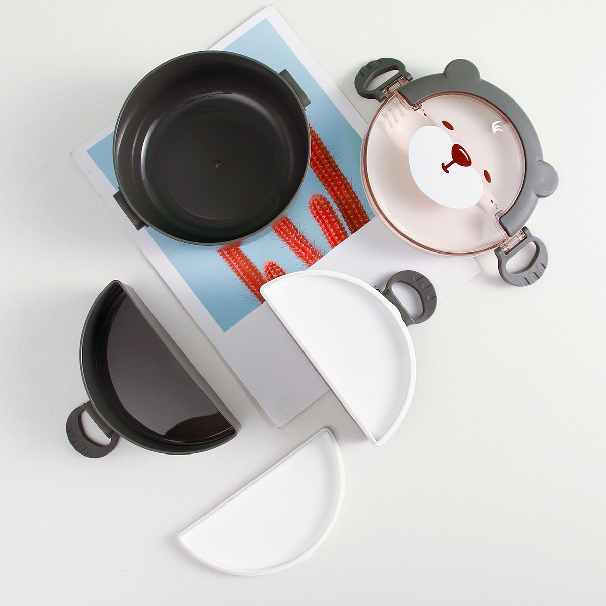 樂(lè)味熊圓形單層/雙層/三層便當(dāng)盒(通格/分格)