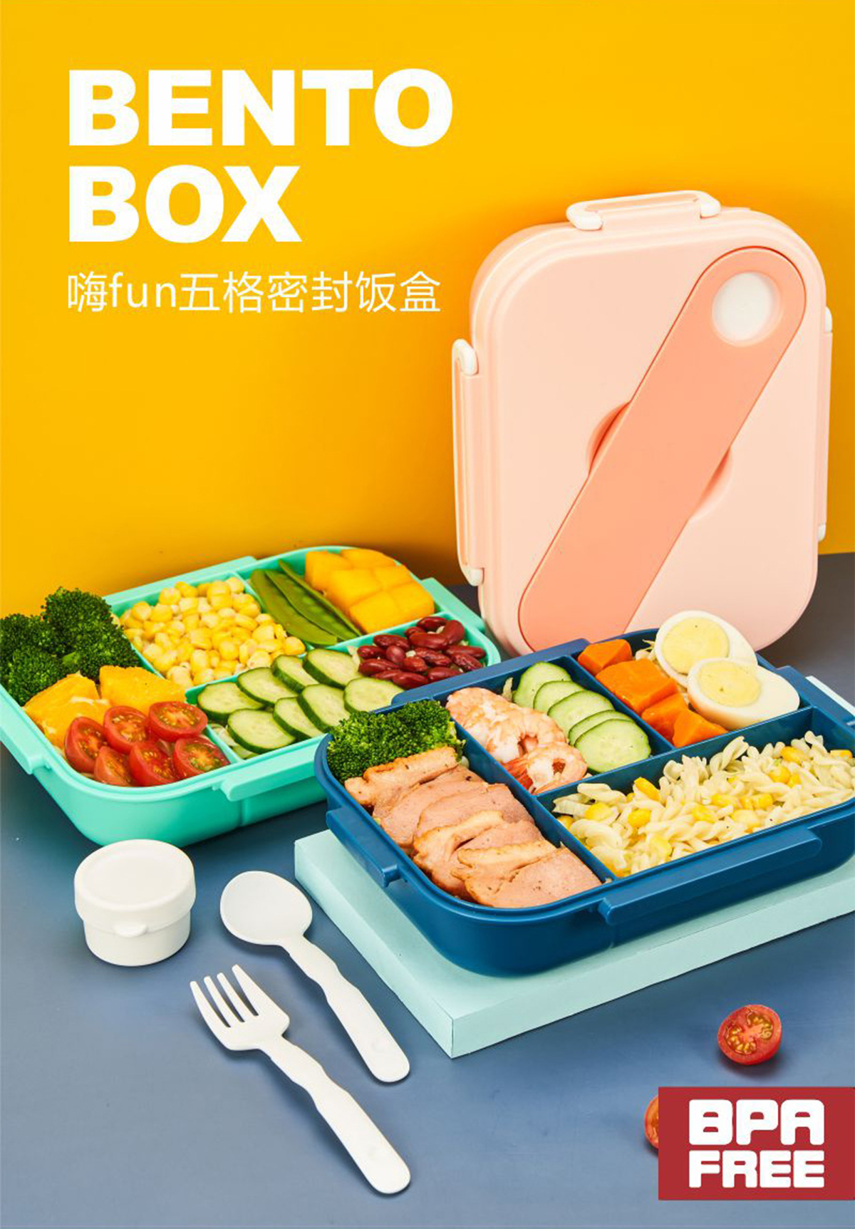 嗨fun五格密封飯盒1.4L