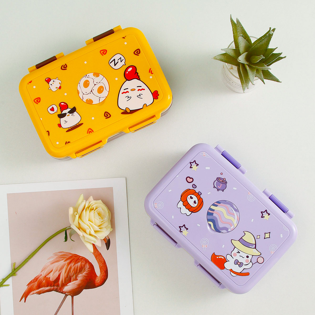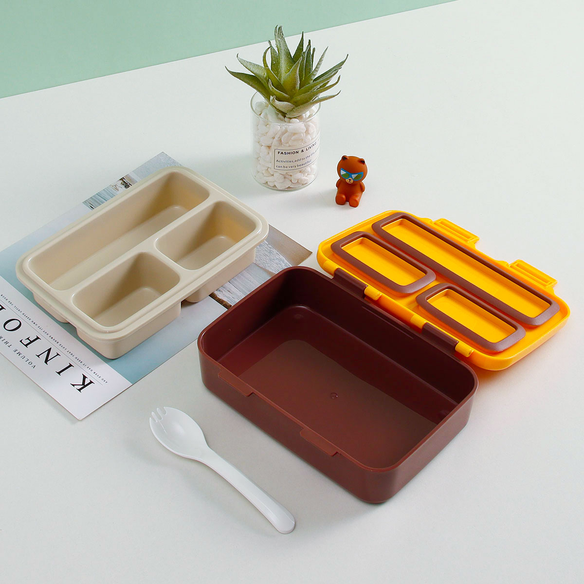 悠悅萌咭三格便當盒(670ml)