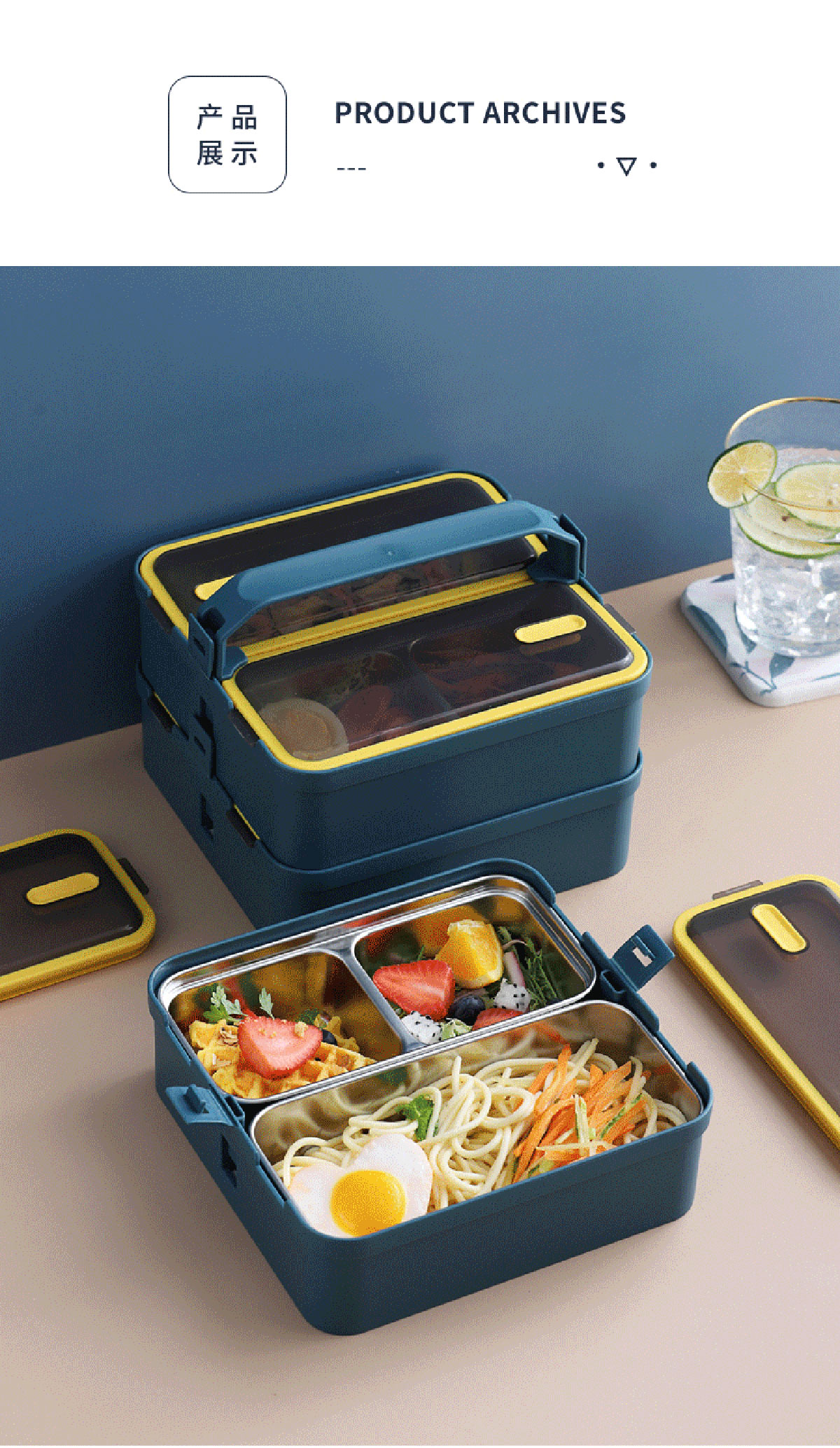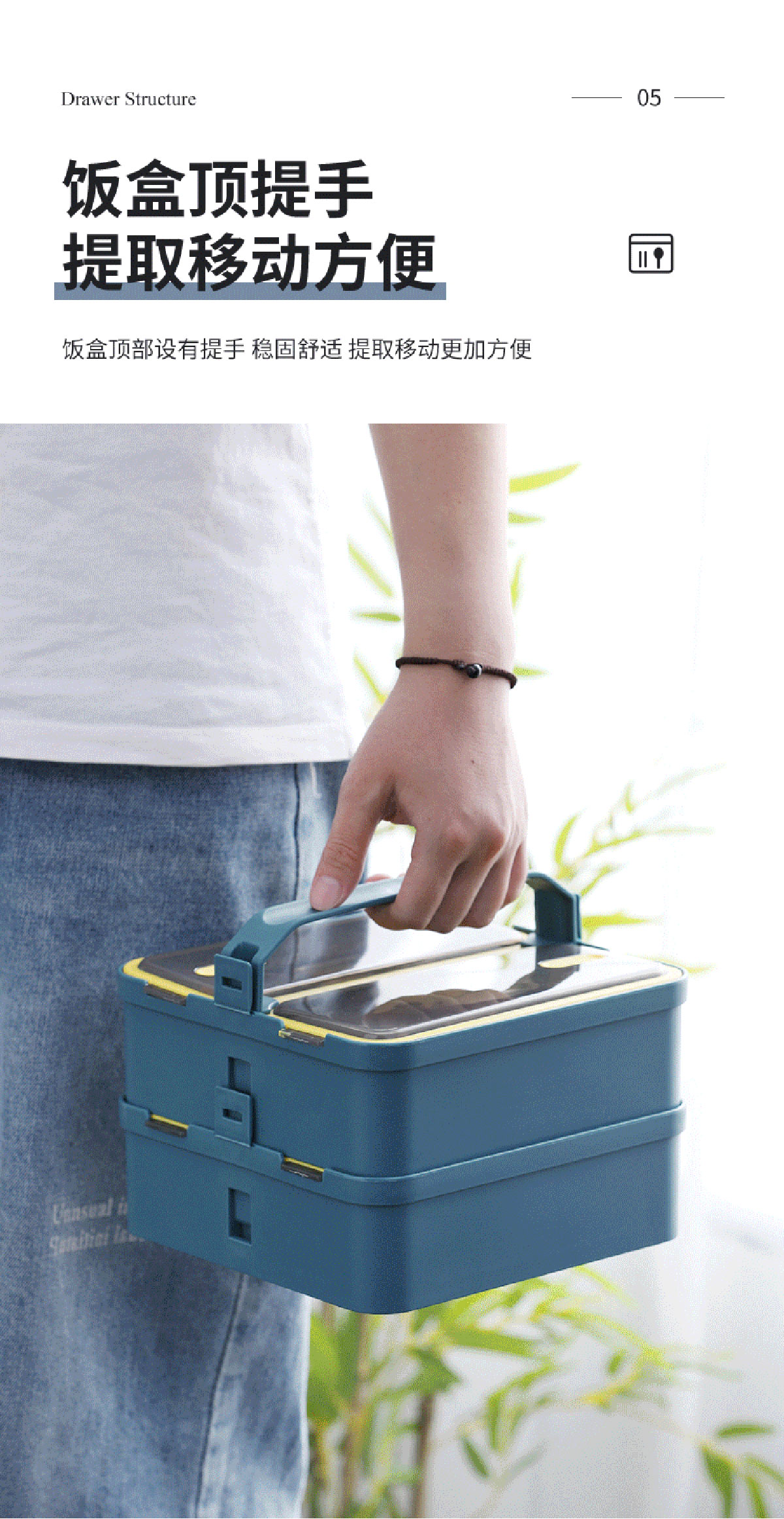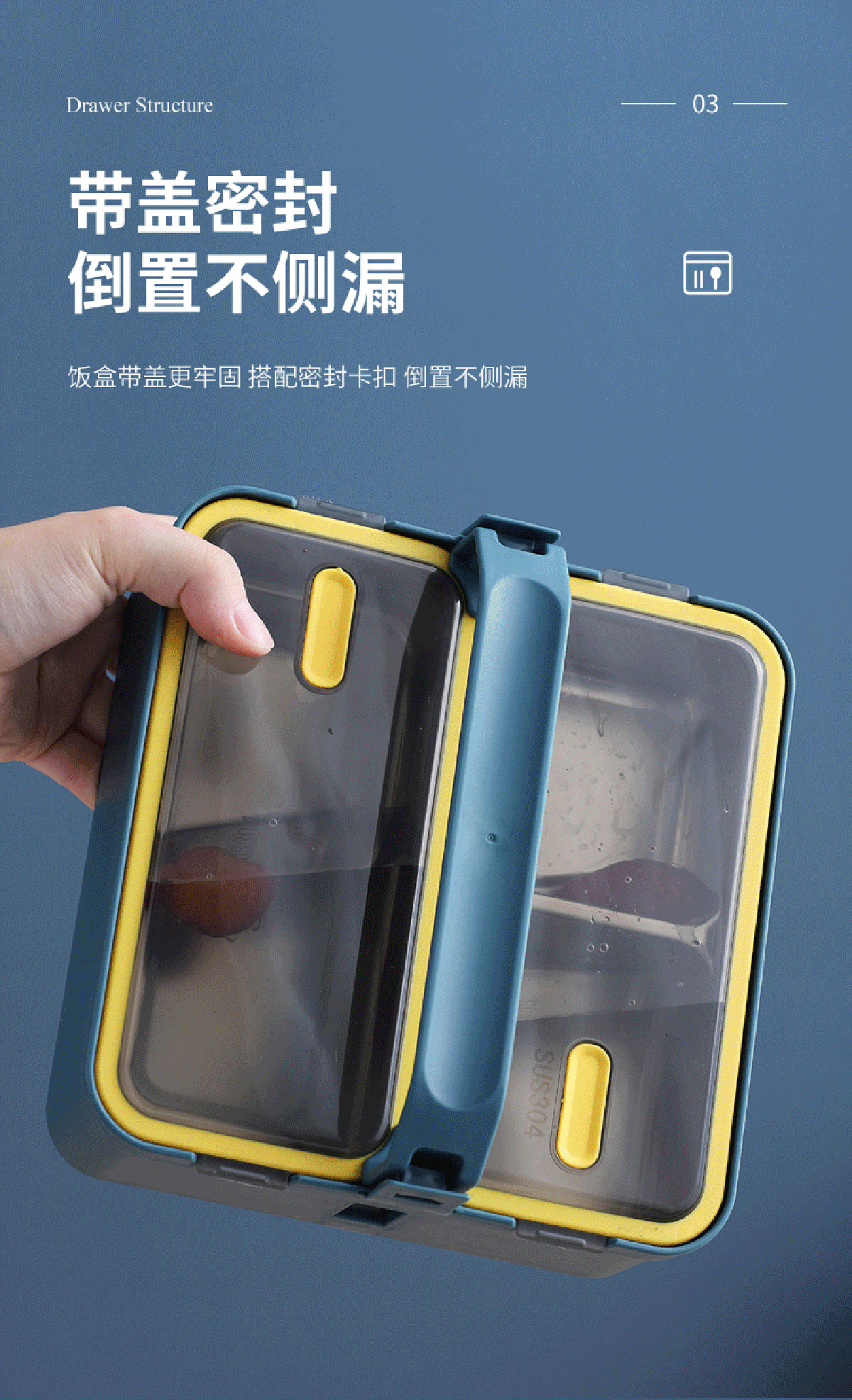 提手單層雙格不銹鋼飯盒1100ml