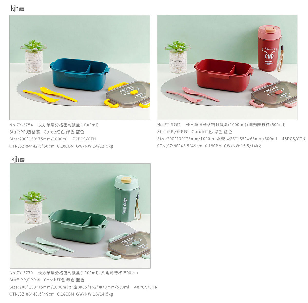 長(zhǎng)方單層分格密封飯盒(1000ml)+圓形/八角隨行杯(500ml)