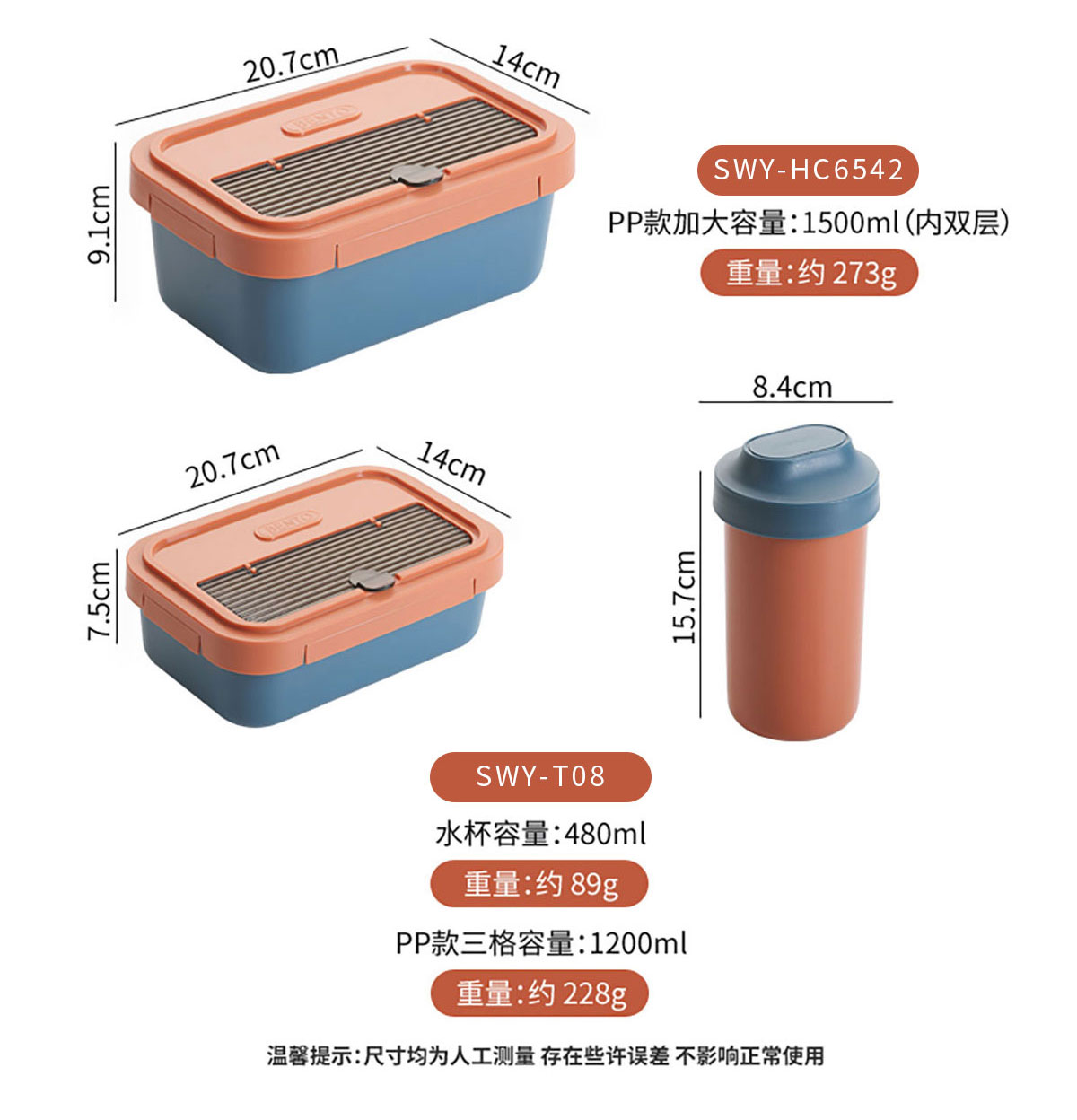 SWY-T08(套裝):207*140*75mm/1200ml 水壺:84*157mm/480ml