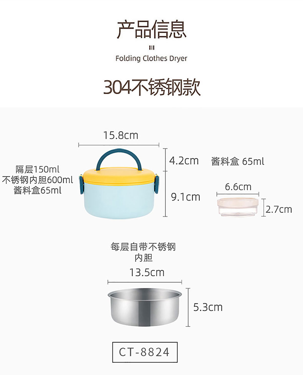 Size: CT-8824(單層/帶沙拉盒):158*91mm/600ml+沙拉盒65ml