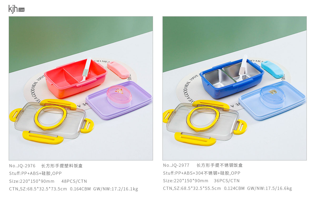 長方形手提塑料/不銹鋼飯盒