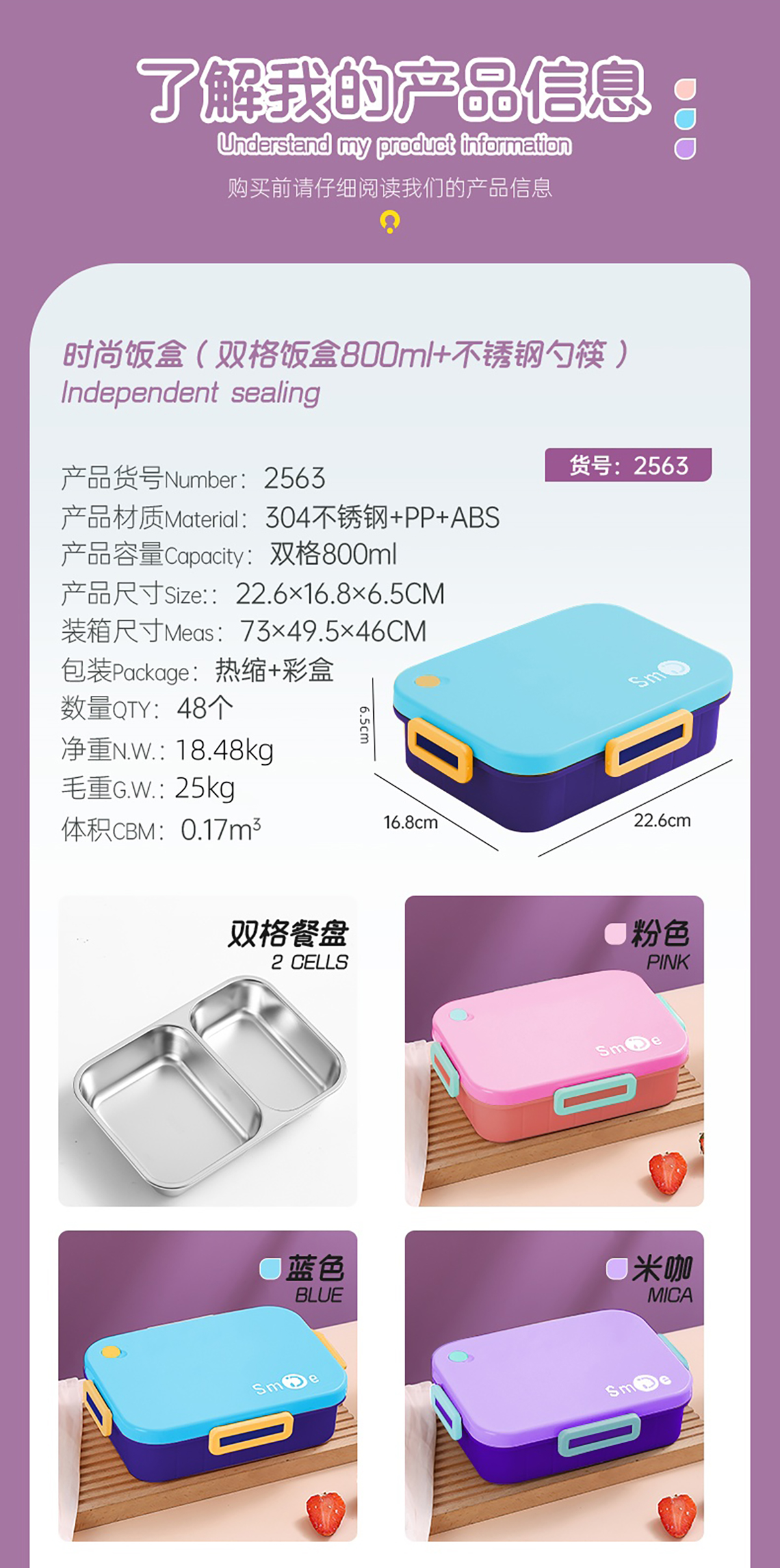 Size: AQX-2563(二格):226*168*65mm/800ml