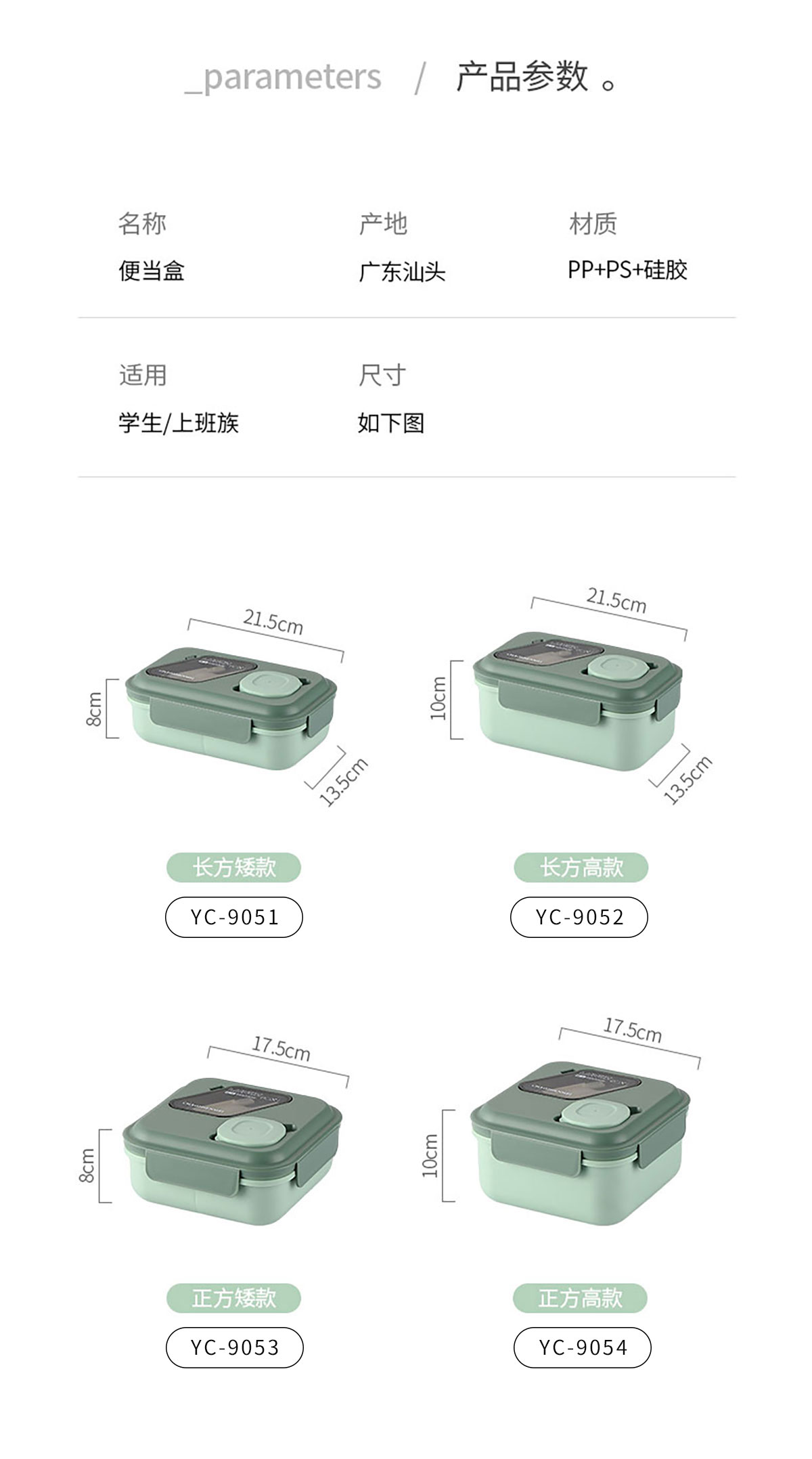 YC-9053(正方形):175*175*80mm/1300ml