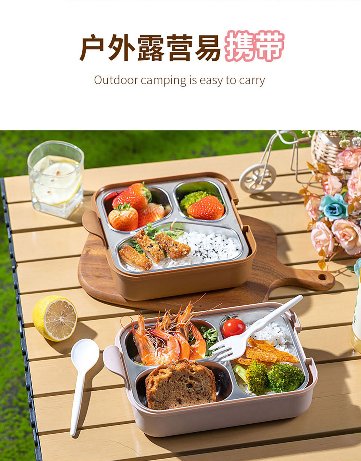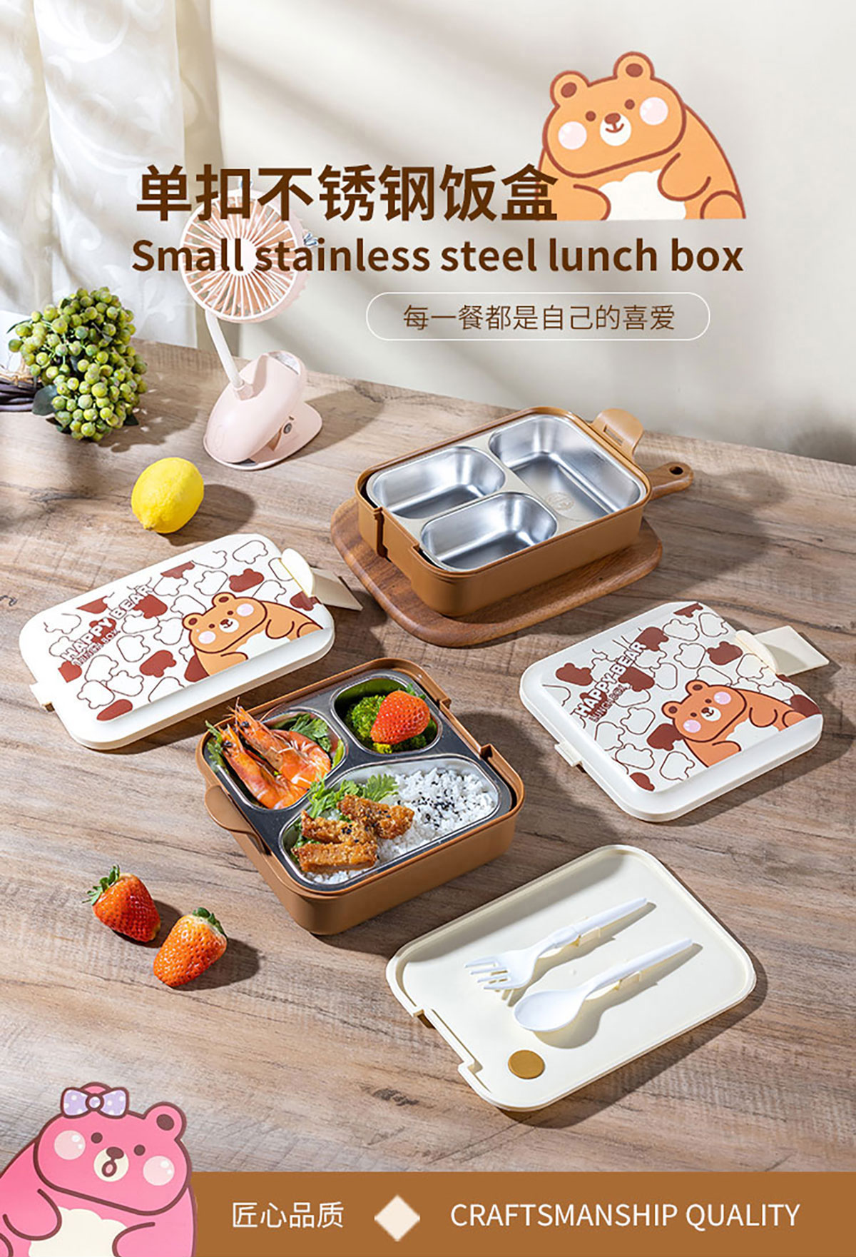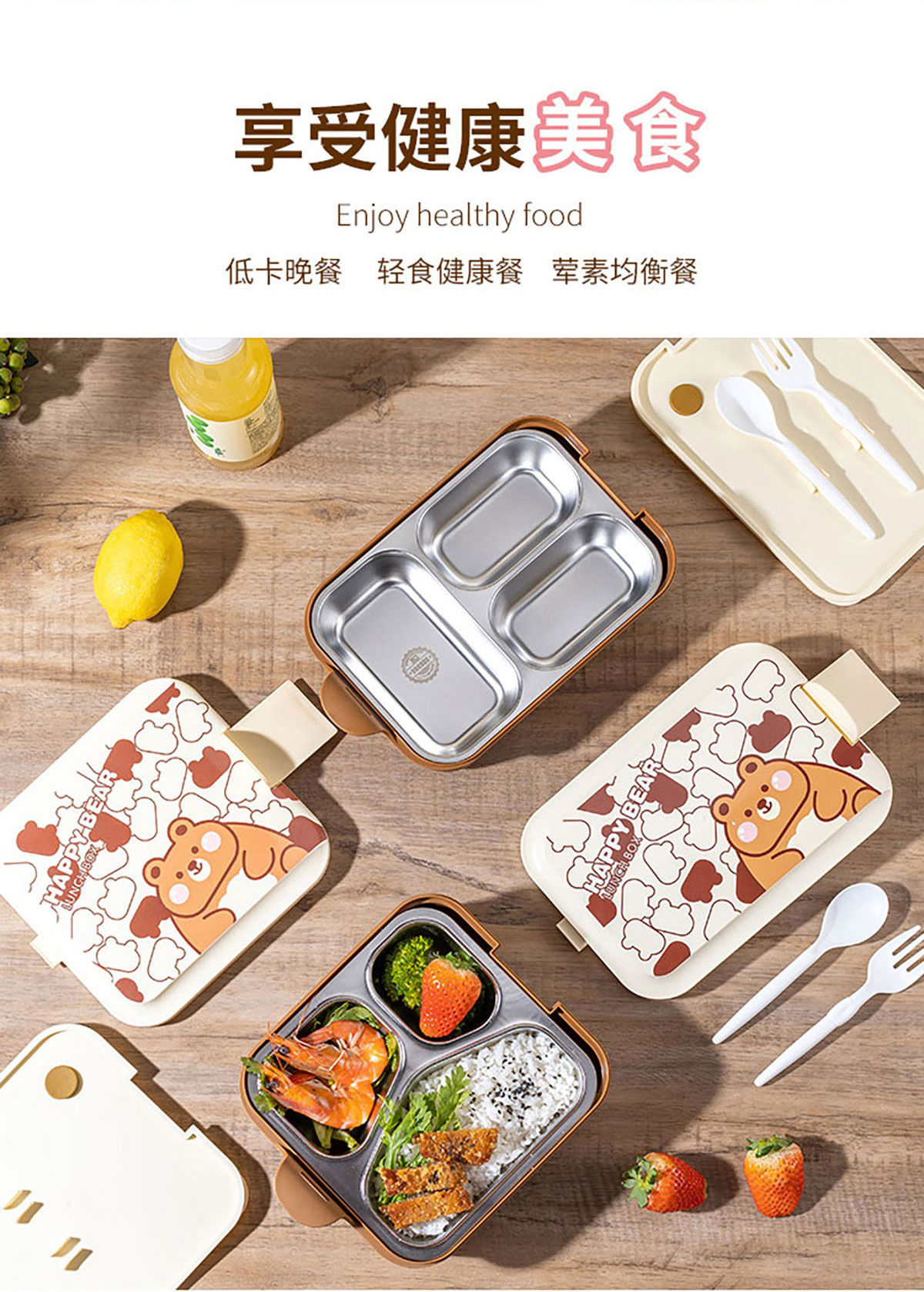 小簡(jiǎn)長(zhǎng)方形/方形三格不銹鋼飯盒
