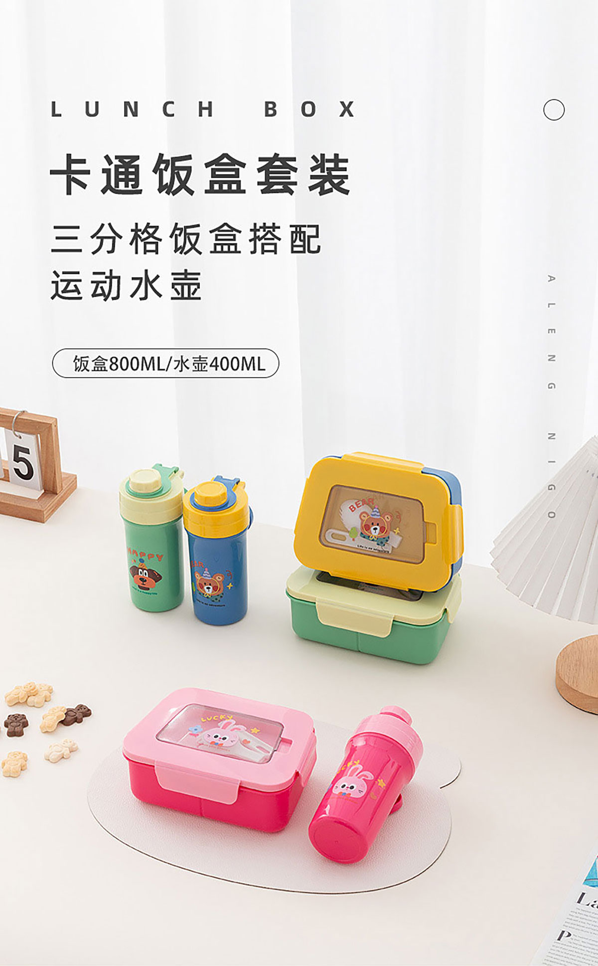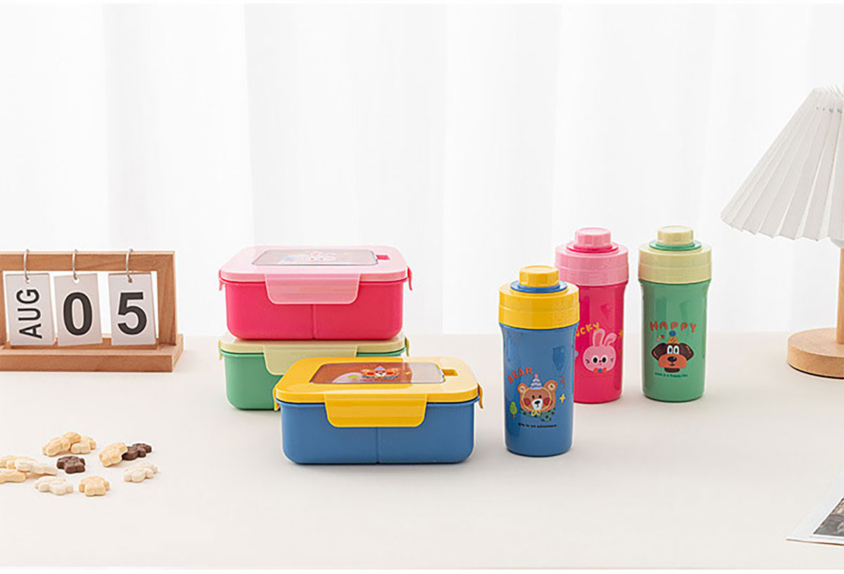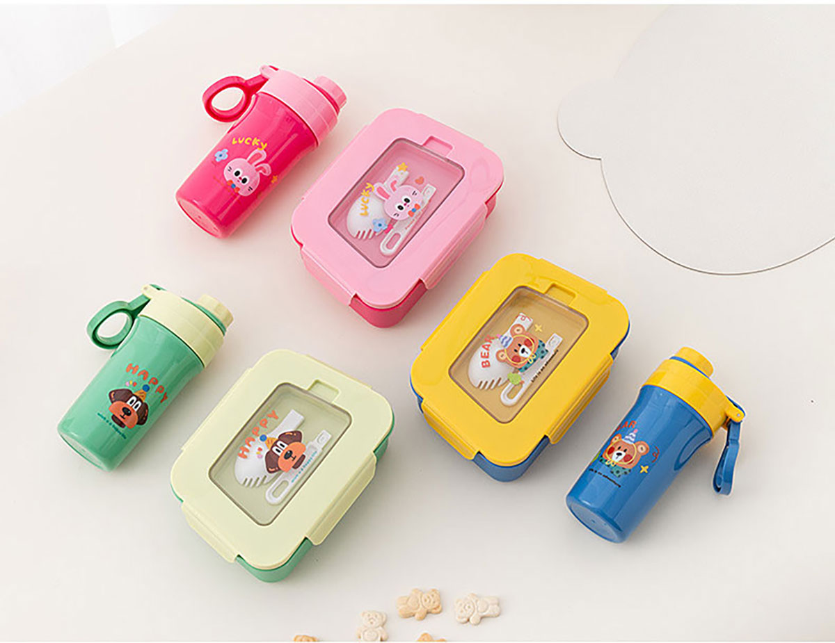 卡通三分格小飯盒/手提運動水壺/飯盒水壺套裝
