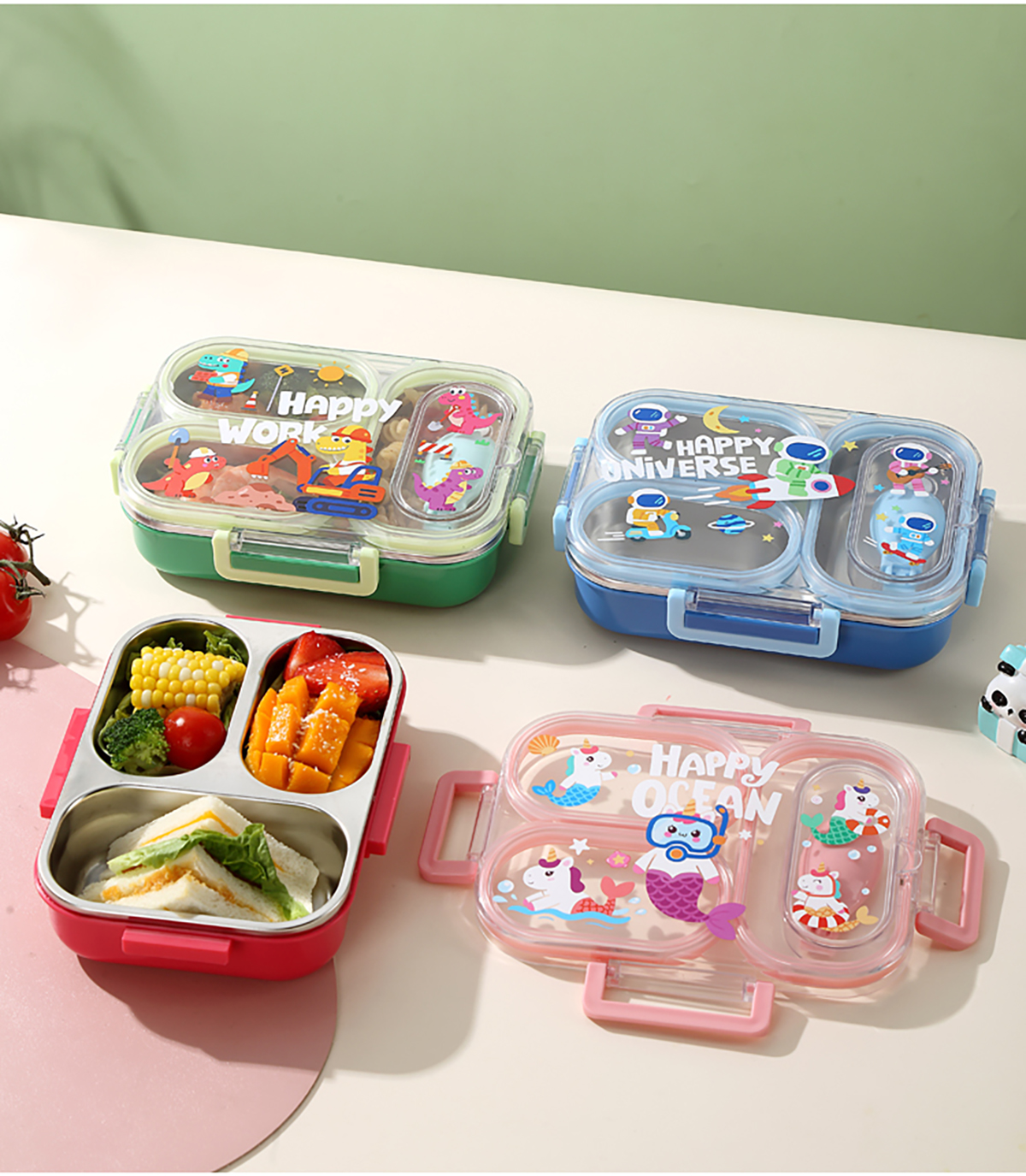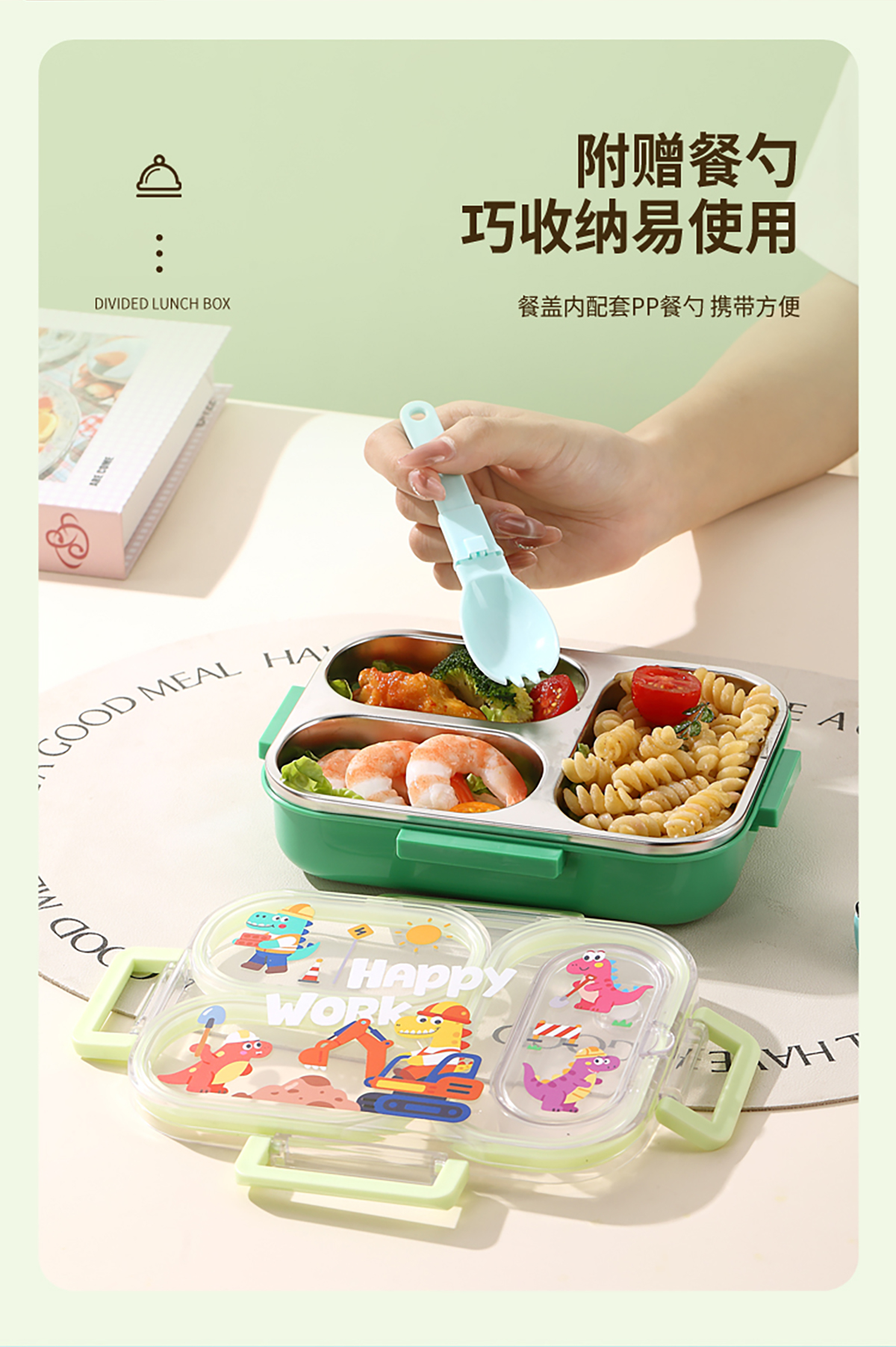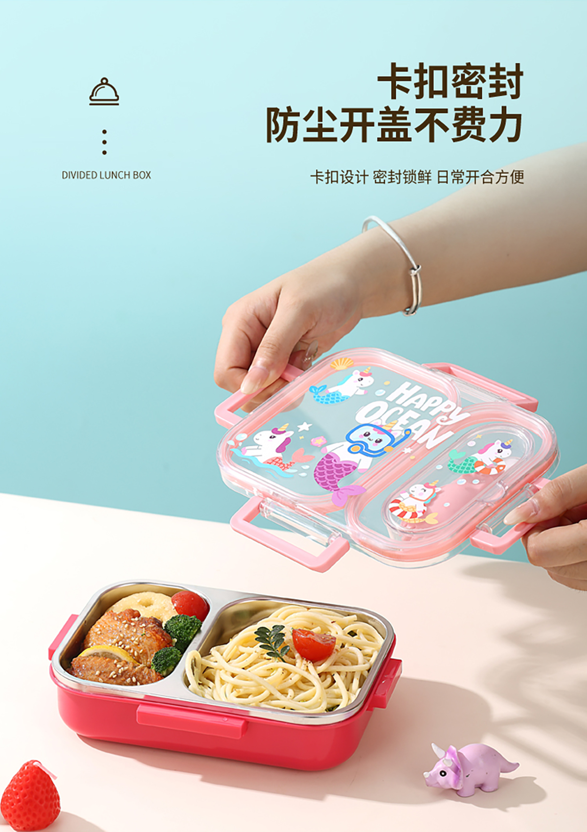 600ml UV獨(dú)立密封卡通不銹鋼餐盒2格/3格 (配PP折疊湯勺)