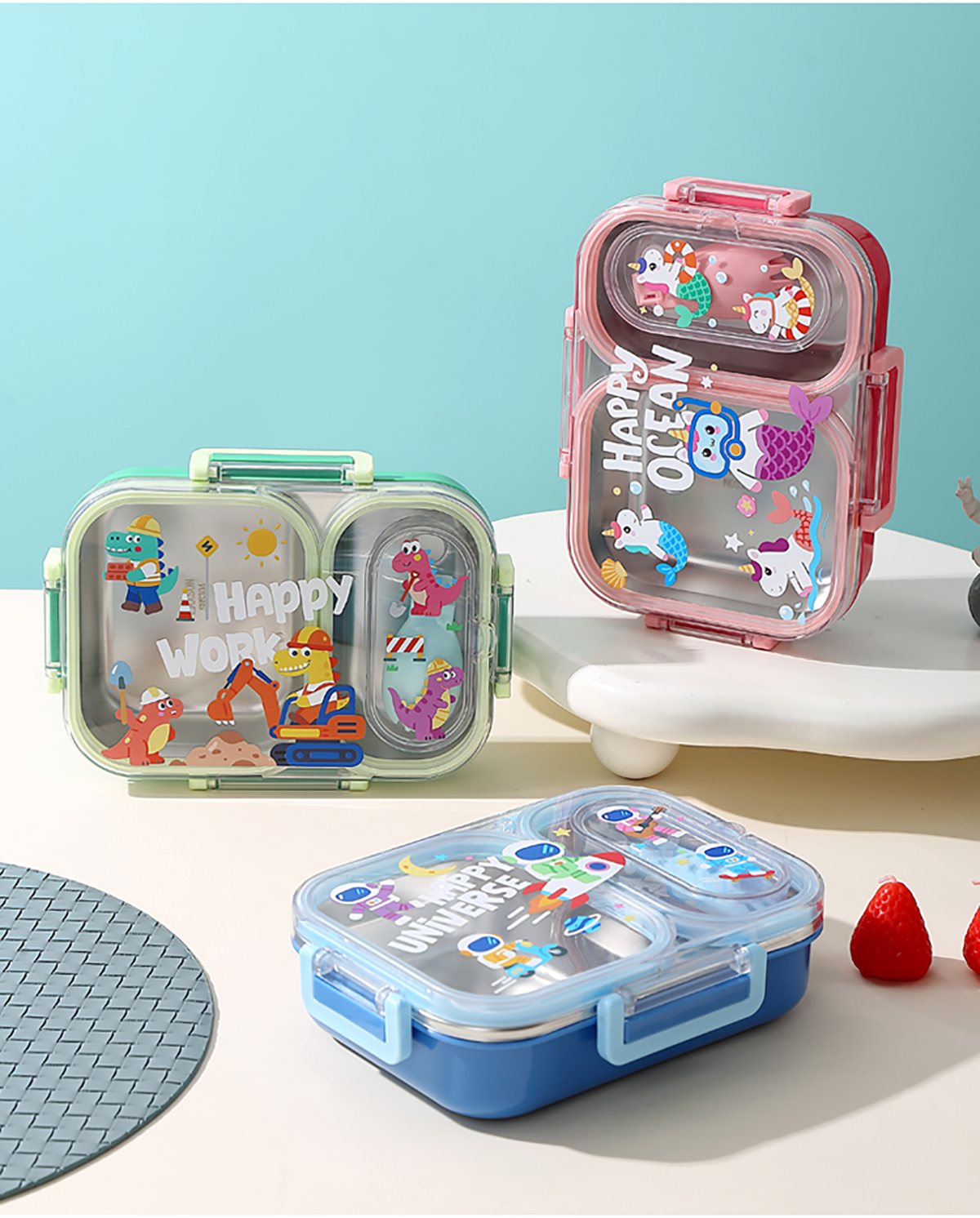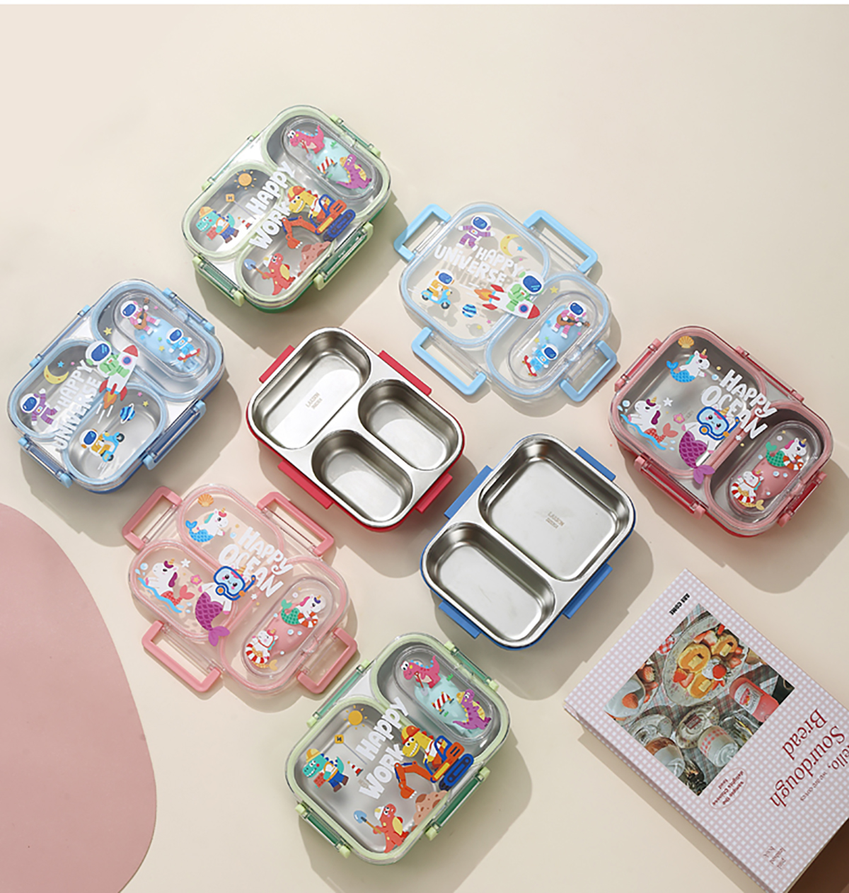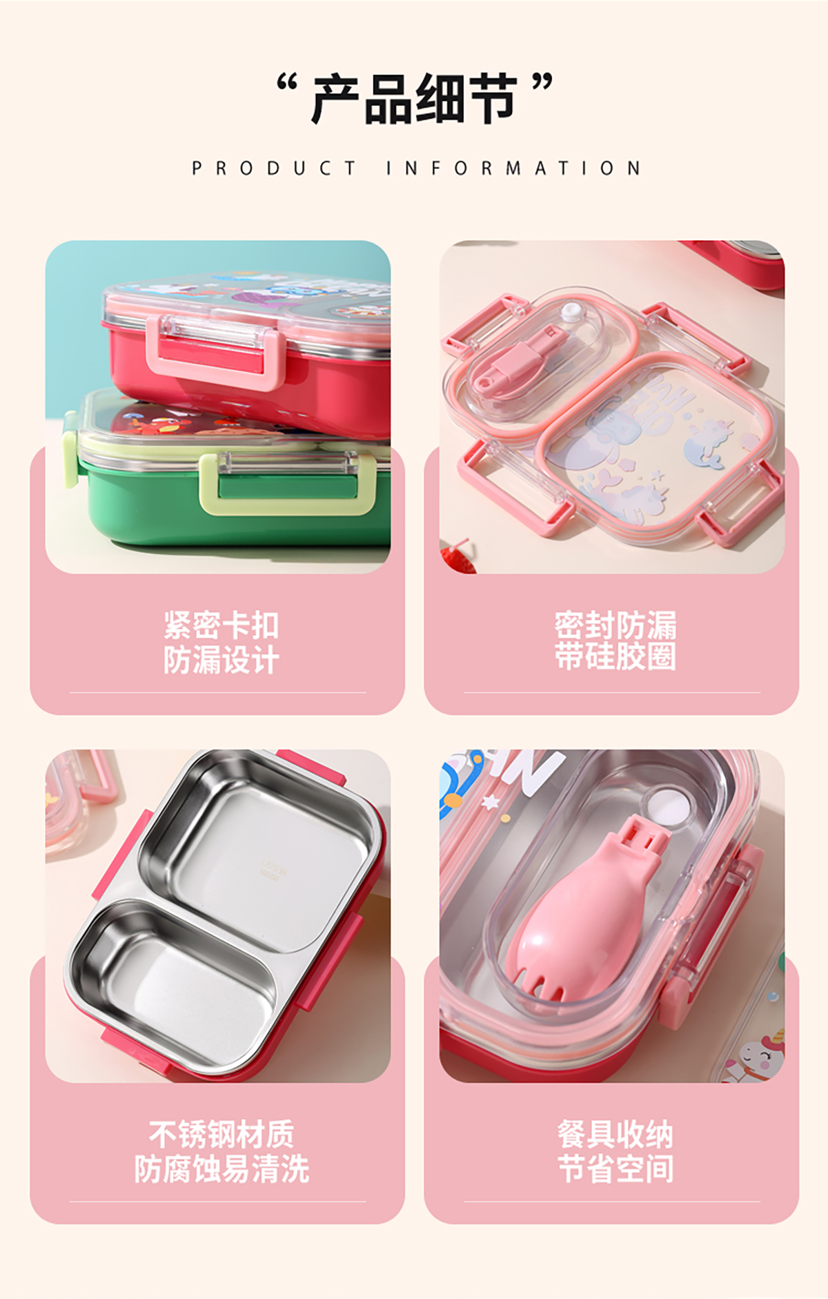 600ml UV獨(dú)立密封卡通不銹鋼餐盒2格/3格 (配PP折疊湯勺)