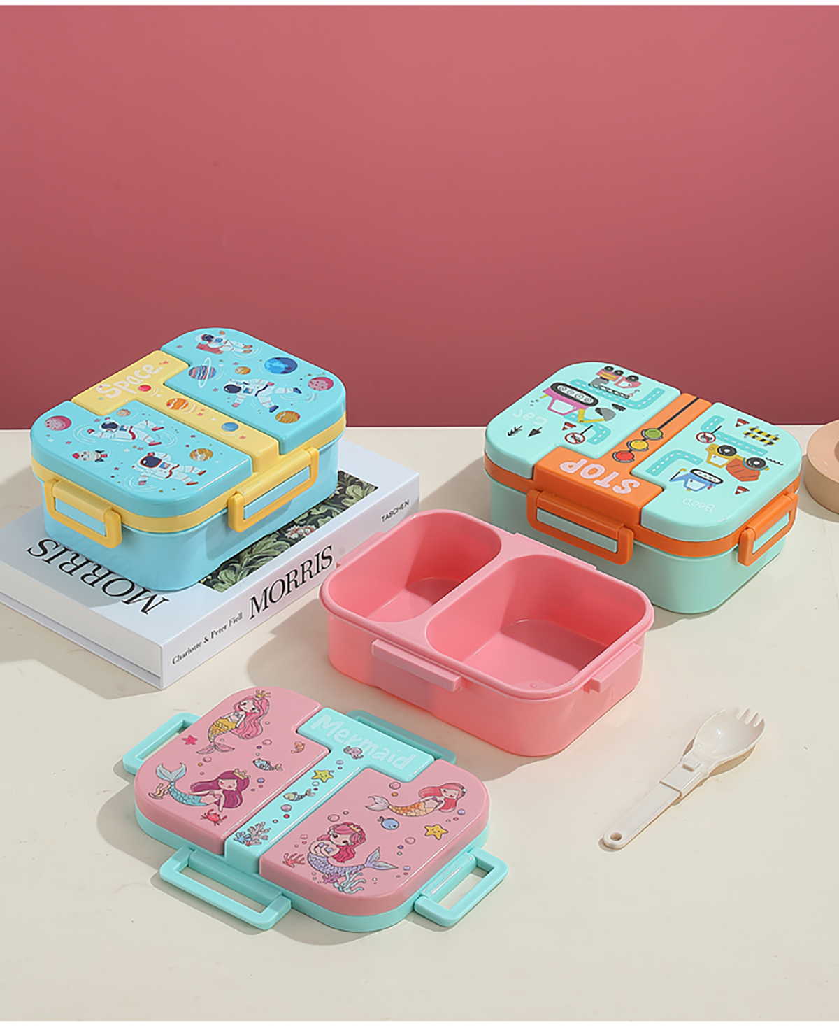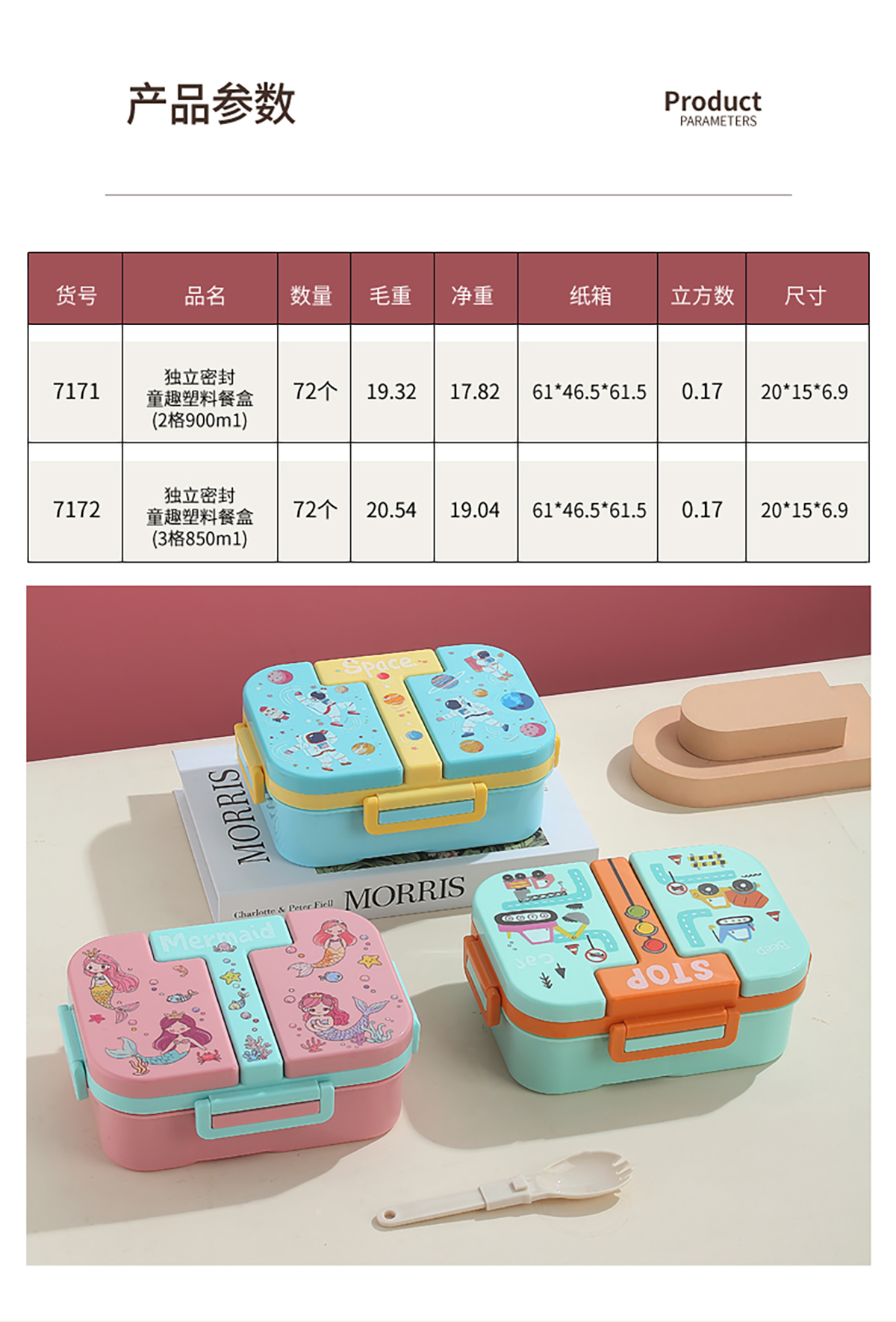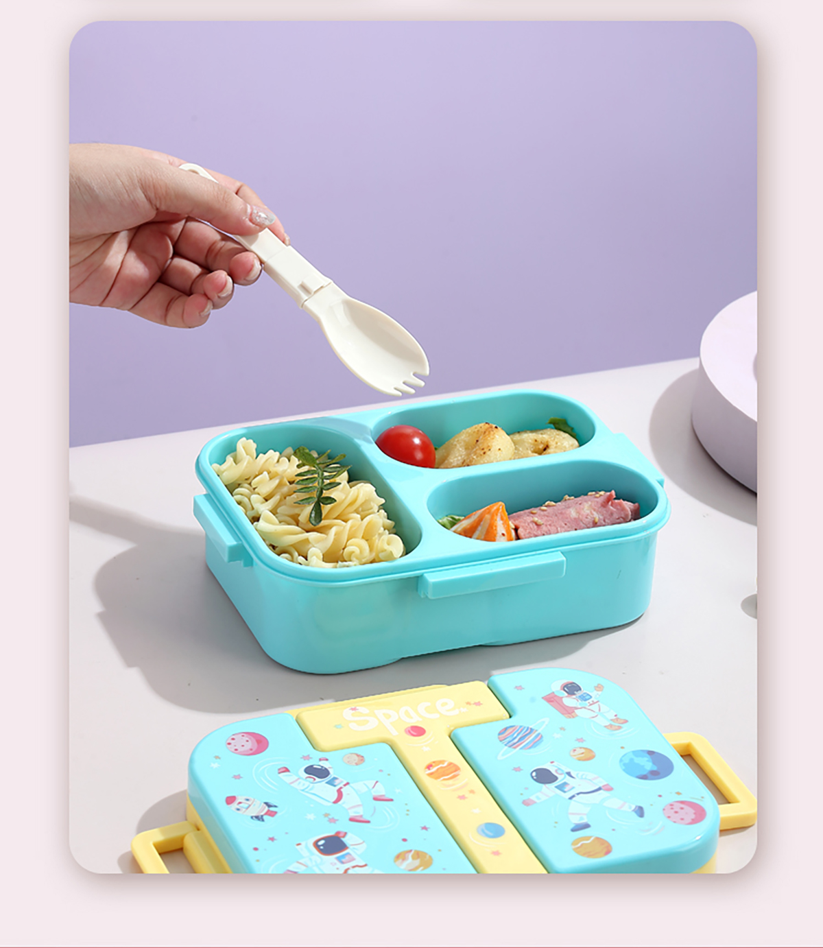 獨(dú)立密封童趣塑料餐盒2格900ml/3格850ml  (配PP折疊湯勺)
