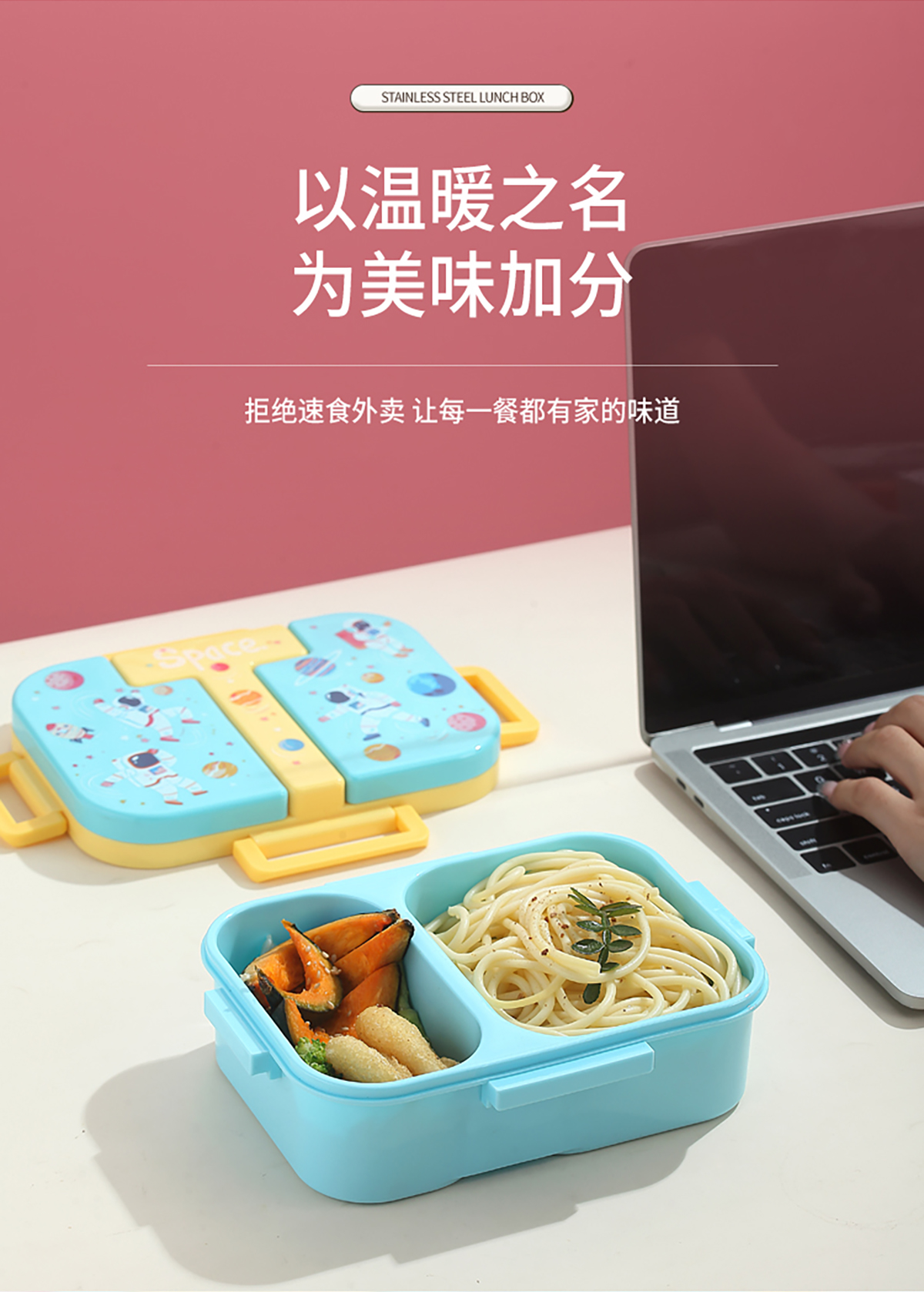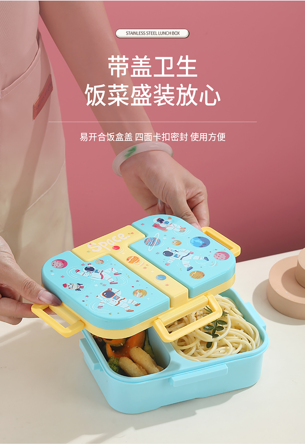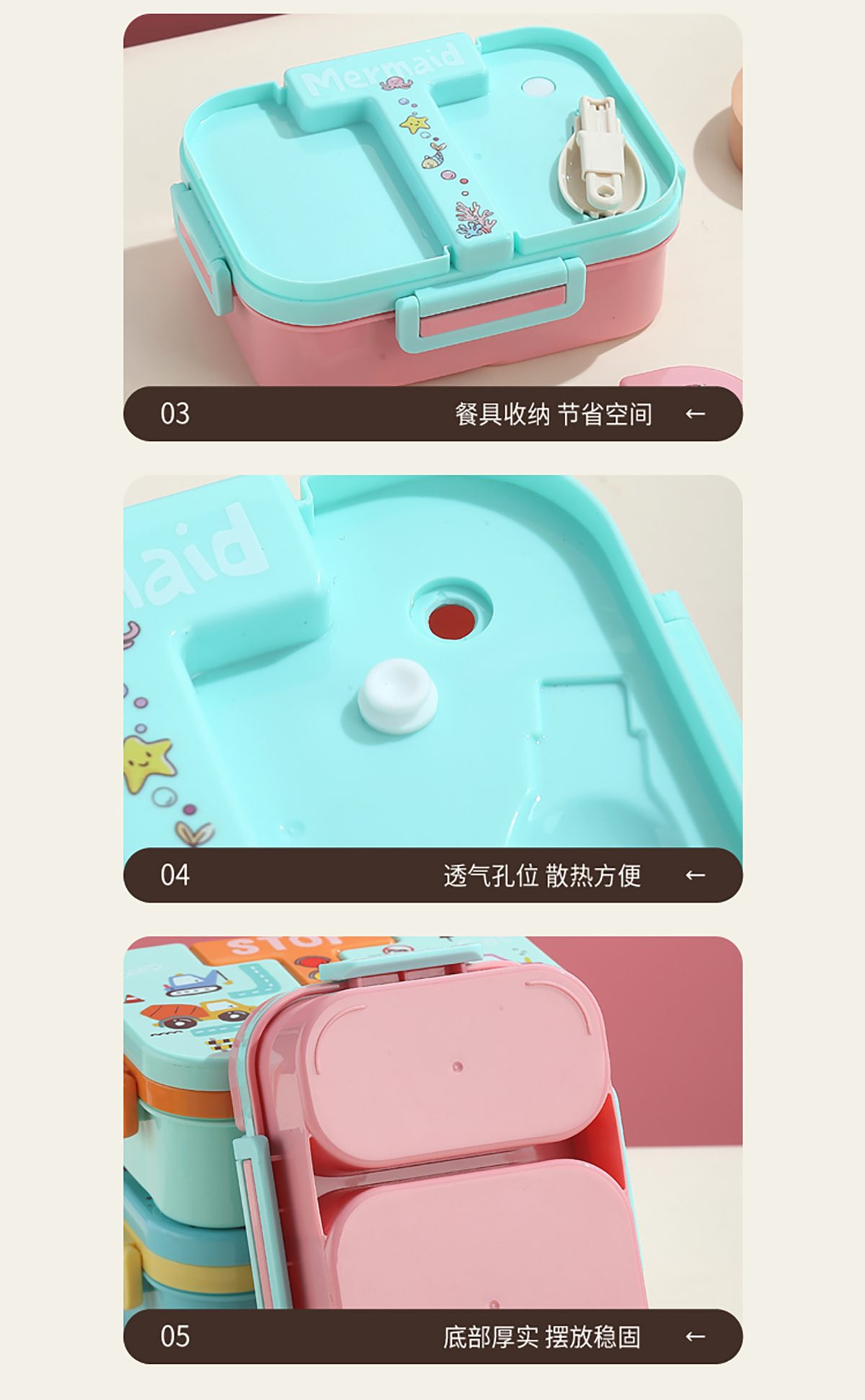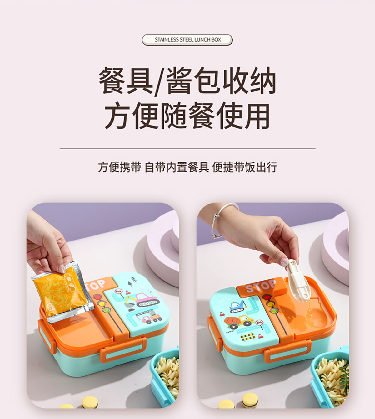 獨(dú)立密封童趣塑料餐盒2格900ml/3格850ml  (配PP折疊湯勺)