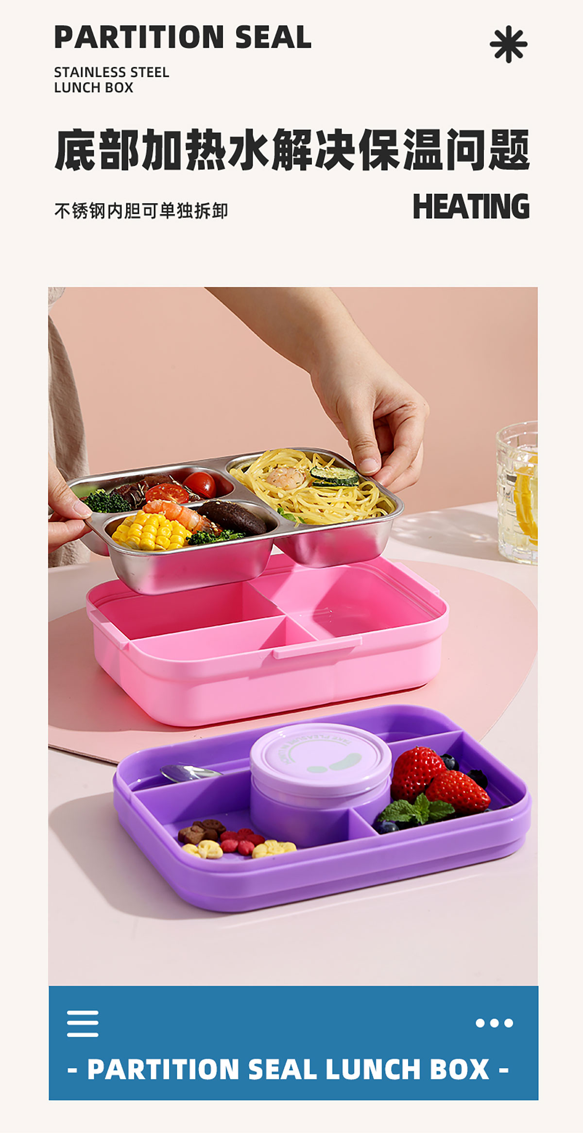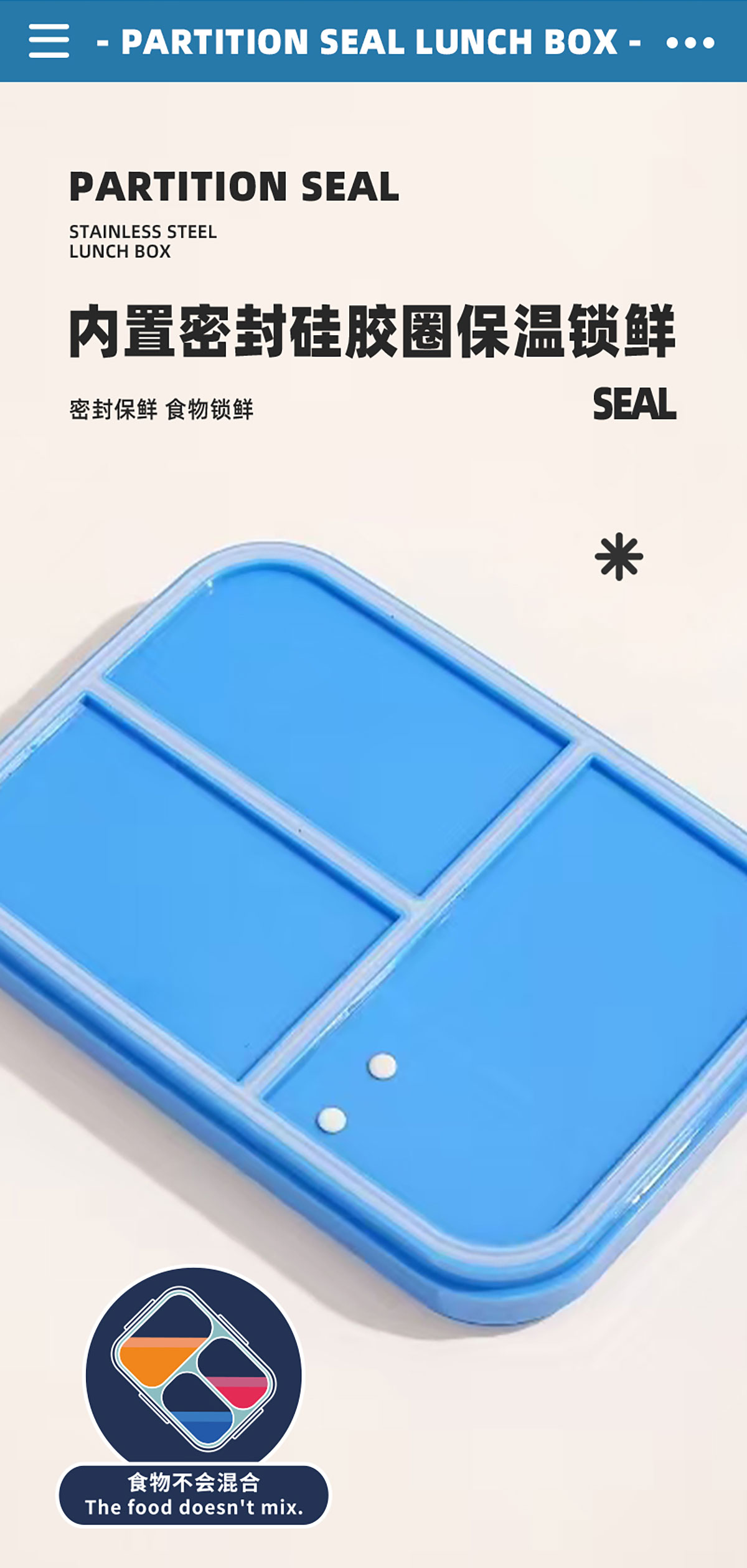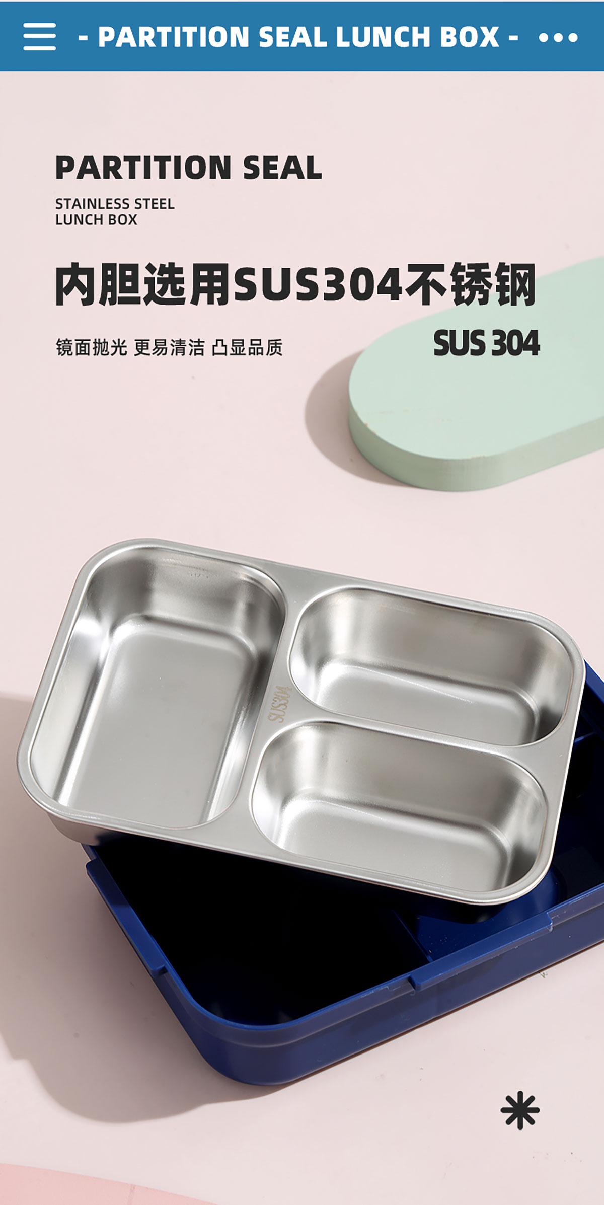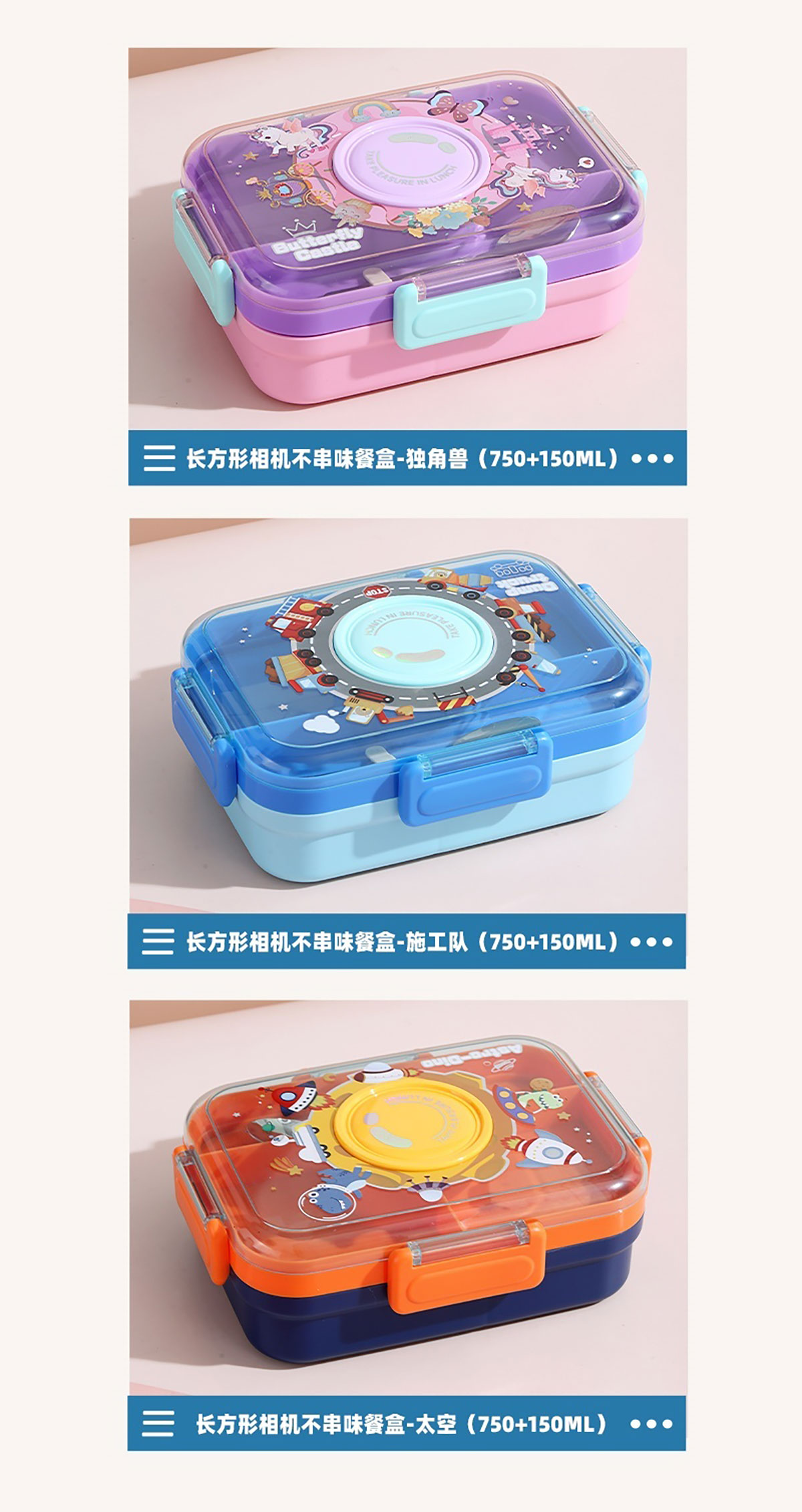 相機(jī)不串味餐盒(長方形不銹鋼三格750ml+碗150ml+不銹鋼勺)