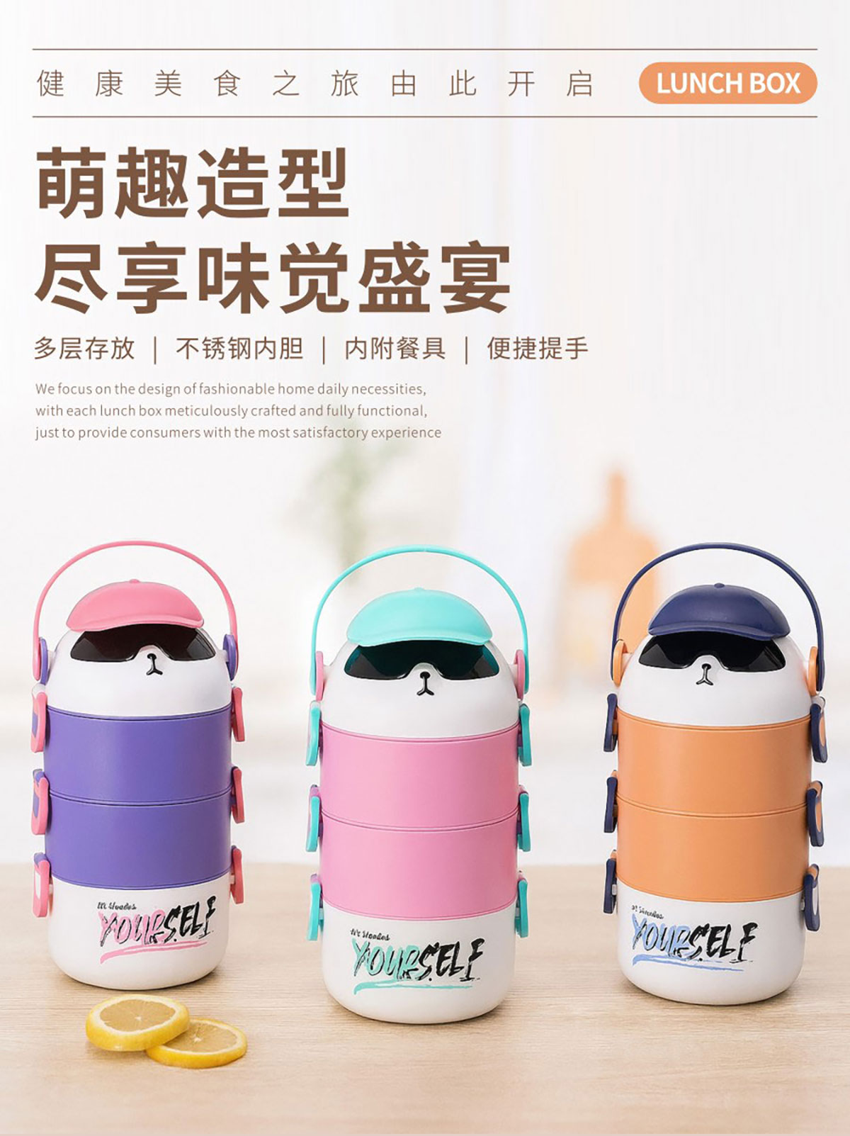 3D音速單層/雙層/雙層分格/三層(通格+分格)便當盒1000ml/湯杯400ml