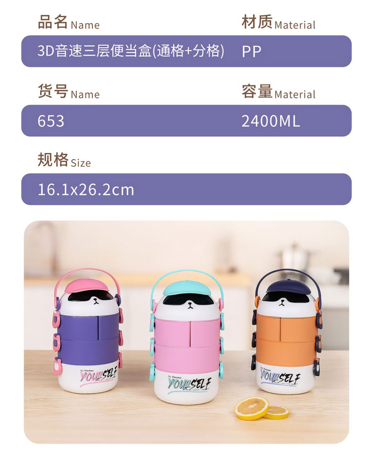 HJL-653(三層通格+分格):161*262mm/2400ml