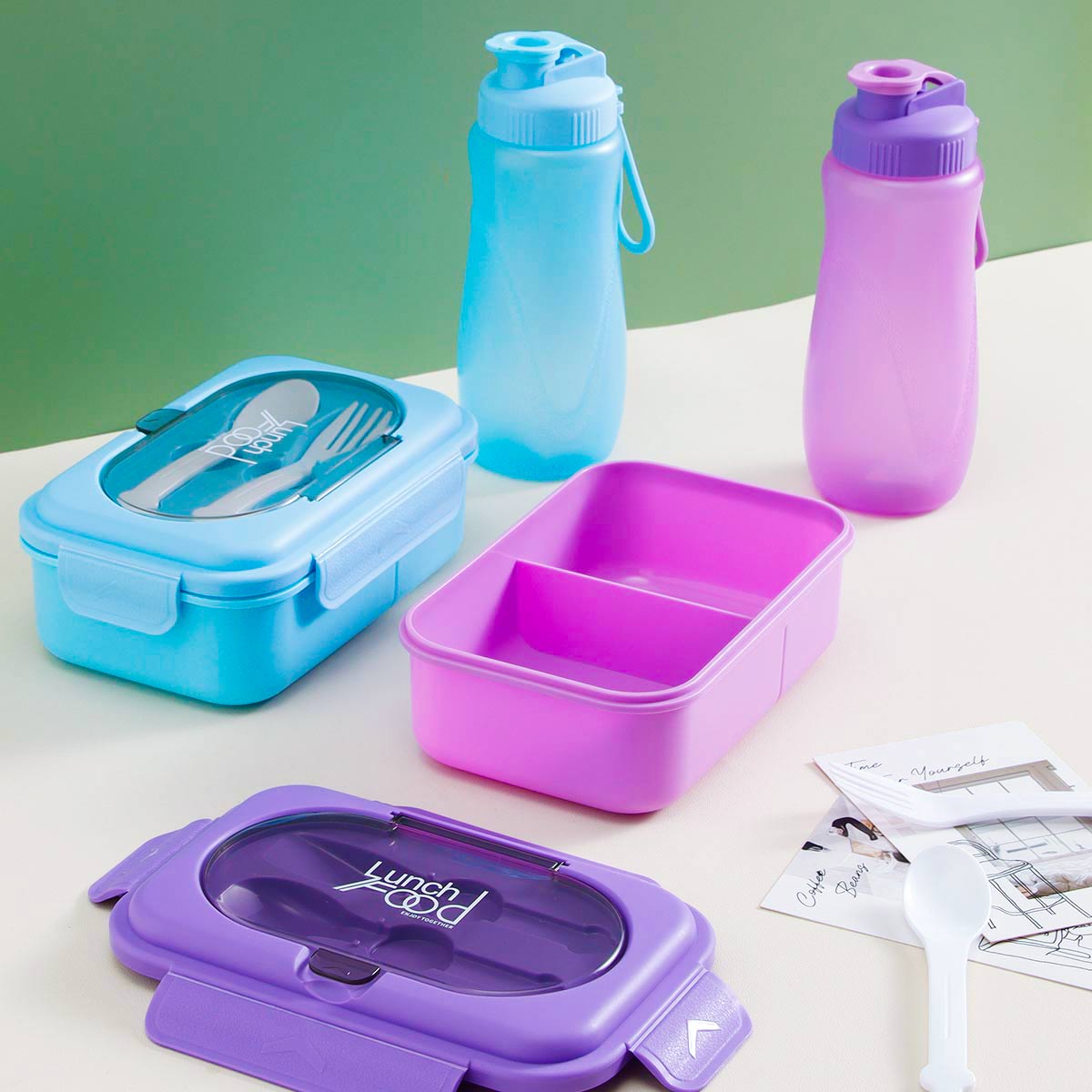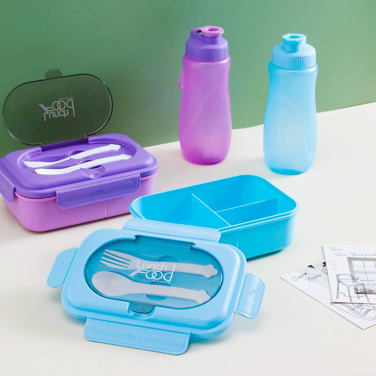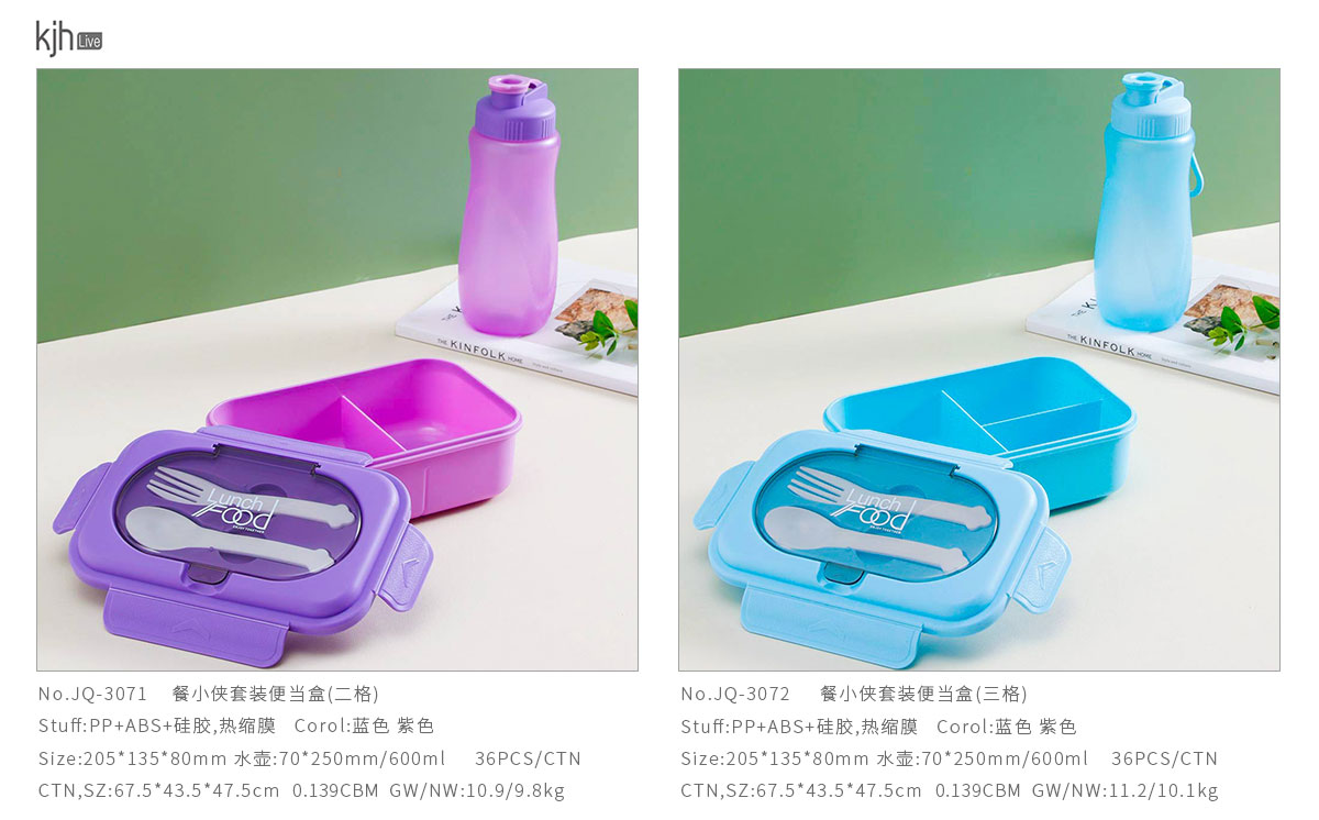 Size: JQ-3071(二格):205*135*80mm 水壺:70*250mm/600ml