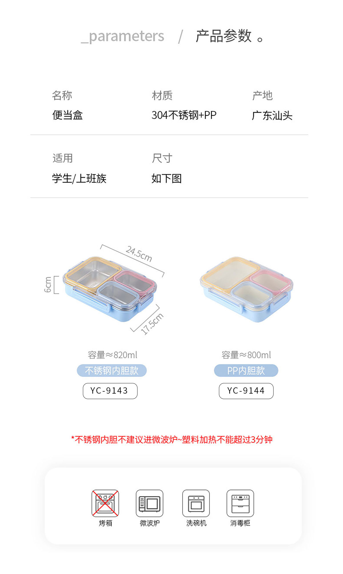 Size: YC-9143(不銹鋼款):245*175*60mm/820ml