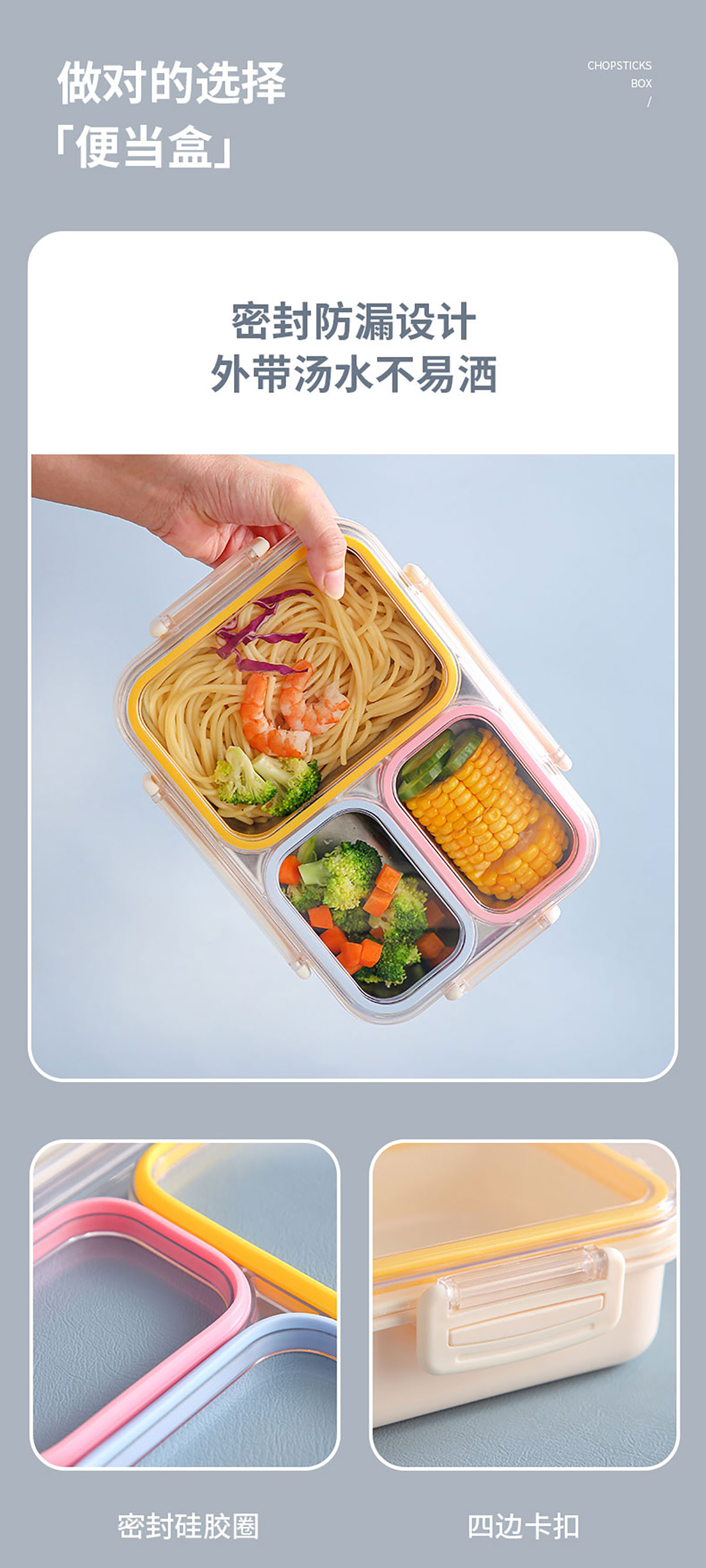 防串味三格不銹鋼飯盒820ml/PP款飯盒800ml